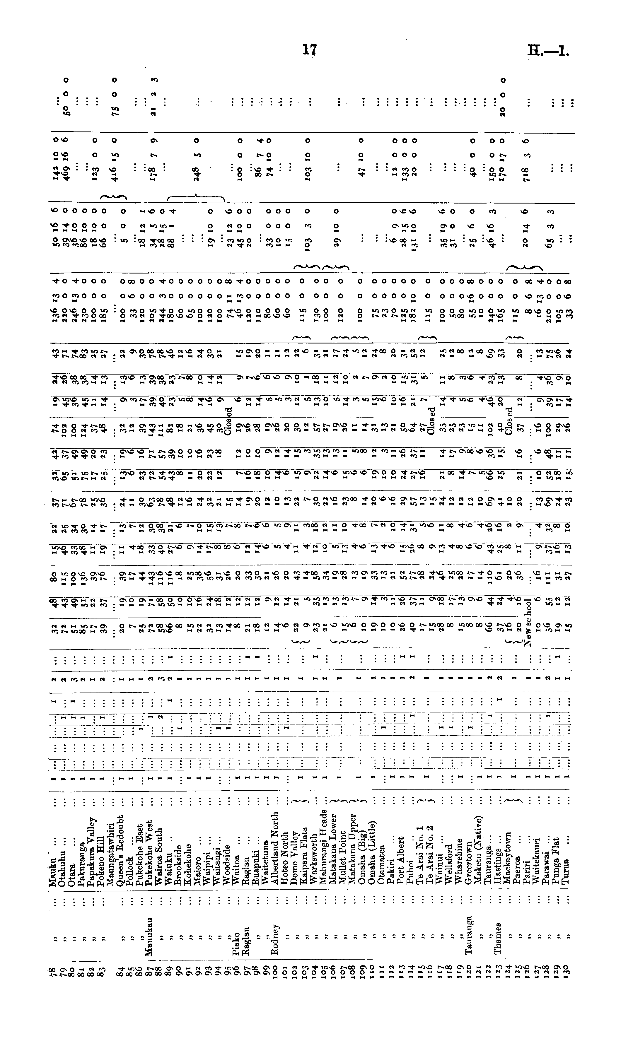 78 79 8o 81 82 83 JJ Jl )> Mauku ' ... Otaliuhu ... Otara Pakuranga Papakura Vallev PokenoHill Maungatawhiri Queen's Redoubt ... Pollock ... Pukckohe East Pukekohe West Wairoa South Waiuku Brookside Kohekohe Maioro Waipipi ... Waitangi ... Woodside Waitoa Raglan Ruapuki ... Waitetuna Albertland -forth ... Hoteo North Dome Valley | Kaipara Flats \ Warksworth Malmrangi Heads ... Matakana Lower Mullet Point j Matakana Upper ") Omaha (Big) ) Omaha (Little) Otamatea Pukiri Port Albert Puhoi Te Arai No. 1 } Te Arai No. 2 ) Wainoi ... Wellsford Wharehine Oreertown Maketu (Native) Tauranga... Hastings ... Maekaytown \ Paeroa ... ) Pariri Waitekauri Parawai ... Punga Flat Turua 1 1 1 ... ... ...... ... I ... 1 1 A 1 2 2 1 3 2 1 2 32 72 85 39 48 43 49 Si 22 37 80 115 100 136 39 76 15 22| 46 25 33 34 48 30 11 14 19 17 37 7i 67 78 25 36 32 65 Si 75 17 25 42 37 49 49 20 23 74 102 100 124 37 48 19 36 45 14 24 26 38 38 14 13 43 7i 74 83 25 27 136 13 4 220 o o 246 13 4 230 o o 100 o o 185 o o 50 16 6 39 14 o 36 10 o 86 10 o 18 10 o 66 o o 142 10 o 469 16 6 50 o o J) I ... I 1 123 o o JJ I 1 1 J) ... ... 1 416 15 o 75 o o 84 85 86 87 88 89 90 91 92 93 94 95 96 97 98 99 100 101 102 )> .1 1 - 1 1 1 1 20 25 72 58 66 8 15 22 32 13 14 8 21 18 19 10 39 17 44 143 116 116 18 25 38 56 31 26 20 33 30 21 26; 20 43 14 58 34 13' 19 1 33 13 21 52 77 28 24 46 1 25 I 28 17 ! 14 no 61 20 36 "16 in 3i 27 11 13 4 7 18 12 33 3° 40 38 27 21 6 6 9 7 14 10 17 15 8 13 8 7 6j 8 12 7 14 6 6 6 5 S 4 9 11 11 4 3 12 18 10 12 5 11 13 10 4 4 6 8 13 7 4 2 6 10 15 14 26 31 8 5 9 6 13 11 4 8 8 4 6 6 6 4 43 26 25 16 8 2 11 9 9 4 37 32 16 8 13 10I 24 11 ... 13 6 23 72 54 43 8 n 19 (< 16 7i 57 39 10 10 16 32 12 9 3 17 39 40 23 5 8 14 16 9 13 6 ■3 39 38 23 7 8 22 9 3° 78 78 46 12 16 24 3° 21 100 o o 33 6 8 120 o o 500 JJ 18 12 1 34 5 6 28 15 o 88 1 4 JJ Manukau 1 ... 1 ... 1 2 19 7i 58 5° 10 10 16 24 18 12 12 3° 63 78 48 12 16 24 32 21 15 '4 19 20 12 10 39 143 in 82 18 21 36 45 3° Clos 178 7 9 21 2 3 ... 1 205 o o 244 3 4 180 o o 60 o o 65 o o 100 o o 120 o o 100 o o 74 11 8 46 13 4 120 o o no o o 80 o o 60 o o 60 o o jj I ... 2 2 3 1 2 1 ;j I ~N 248 5 o )j ... 1 ... ... jj 1 ... 1 jj 1 1 1 1 ... 1 20 22 12 10 '4 12 jj ...j ... 1 ... 23 18 19 10 o Piako Raglan I I 1 1 ... ... . 1 1 7 16 18 12 19 26 28 19 26 ed 6 12 14 5 S 3 12 9 7 6 6 6 9 10 19 20 1 1 23 12 6 45 IO o 20 o o 100 O O 12 10 10 9 12 86" 7 4 74 10 o jj 1 1 12 12 33 o o 1000 Rodnev 1 I 12 14 6 10 14 6 15 22 14 6 15 6 6 n 12 22 6 M 1 ... 1 14 21 35 13 13 13 7 9 14 3 26 37 11 13 22 3° 22 16 23 14 20 6 16 14 IS 3 35 13 13 n 20 3° 12 57 27 19 26 iS ° o )J 1 1 ( 22 i 9 23 21 ( 6 I iS . 6 I 10 1 115 o o } 1 ■°3 3 o 29 10 o 103 104 '°5 106 107 108 109 110 " I I 1 1 5 13 10 14 3 5 IS 6 10 16 1 18 11 3' 21 17 24 5 12 24 8 20 31 52 12 103 10 o JJ 130 o o 100 o o )J ... ... JJ 1 1 1 1 5 8 12 11 12 10 2 7 9 2 10 1 120 o o 100 o o 47 10 o JJ JJ 1 ... 14 31 13 21 50 64 27 ClOB 35 25 23 15 11 102 1 1 1 1 1 19 10 10 26 19 10 10 24 27 16 75 o o 23 o o 70 o o 125 o o 182 10 o 1 11 112 "3 114 115 116 117 118 119 120 121 JJ Jt JJ J» J) 1 1 1 1 ... 1 1 ... I ... I ... 1 2 1 1 ... : 40 17 iS 28 8 i.S 8 8 66 37 . l6 (. 20 New se 1 9 18 17 13 9 6 44 24 4 16 hool 6 29 57 13 iS 24 12 3 26 37 n 21 7 ed IS 3' 5 ! "5 ° ° 690 28 15 6 131 10 6 12 0 0 133 o o 20 o o " JJ Taunt n ga I 1 1 1 1 1 12 12 10 69 41 10 20 21 14 7 S 66 25 14 17 9 8 6 36 15 14 4 S 6 n 8 3 6 25 12 8 12 8 69 33 100 o o 50 ° ° 80 o o 55 '6 8 1000 240 o o 165 o o 35 19 6 31 o o 25 6 o 40 o o „ 1 ... I 4 46 20 ed 4 23 13 46 16 3 150 o o 170 17 o 122 123 124 125 126 127 128 Thames " 1 1 1 ... 2 1 2 1 21 16 40 Clos 37 12 8 20 } 115 o o i 20 14 6 7'8 3 6 20 O O JJ JJ 1 1 1 . ... ! 1 ... I , 1 10 56 19 15 13 69 24 23 10 52 18 IS "6 48 n "16 100 29 26 9 39 17 14 4 36 9 10 13 75 26 24 8 6 8 16 13 4 210 o o 105 o o 33 6 8 " ... ... 1 ... 2 ... I 1 ... i 1 55 12 12I 6S 3 3 129 130 1 ... I I I...I ... nl )>