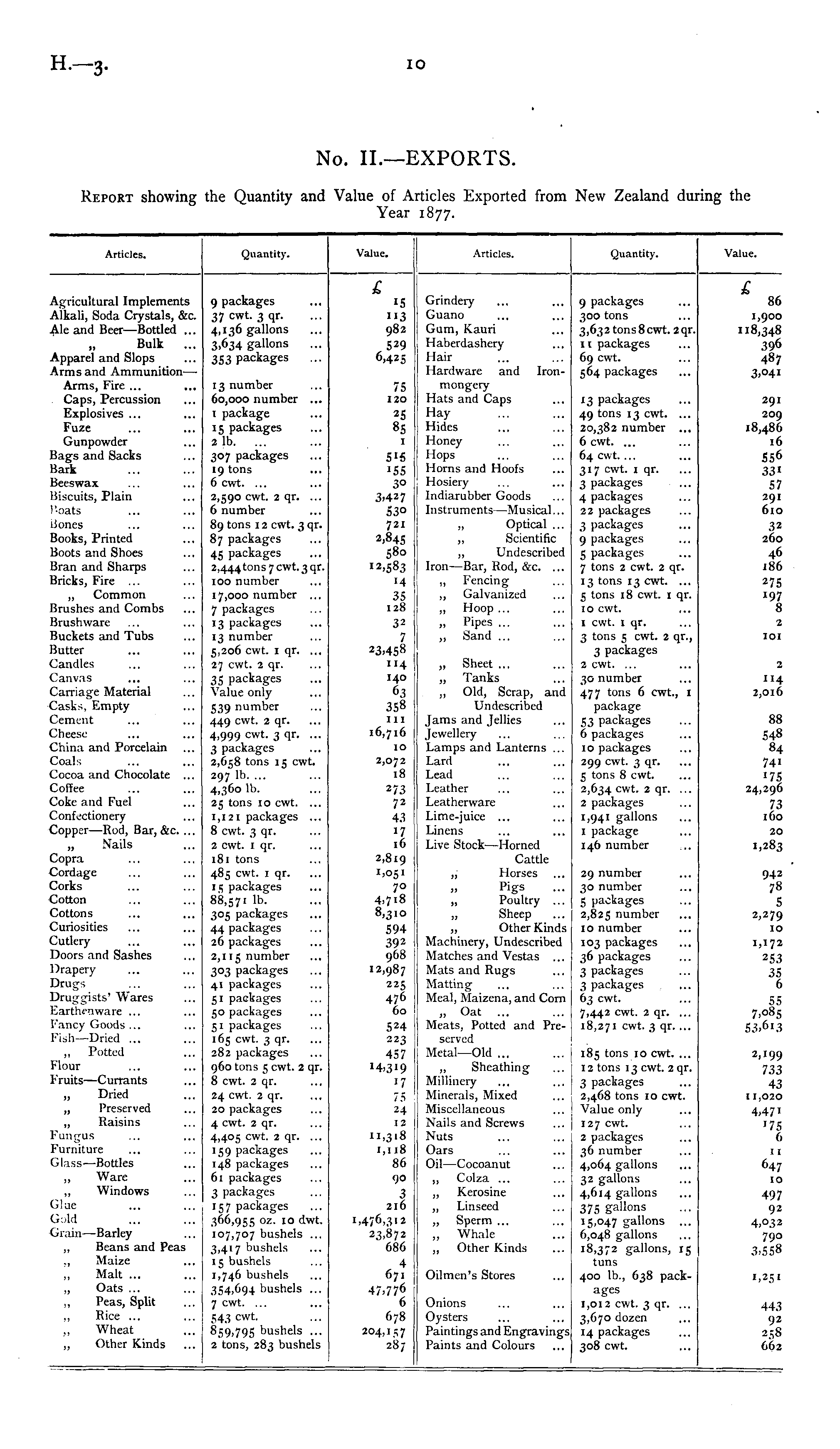 No. II.—EXPORTS. REPORT showing the Quantity and Value of Articles Exported from New Zealand during the Year 1877.