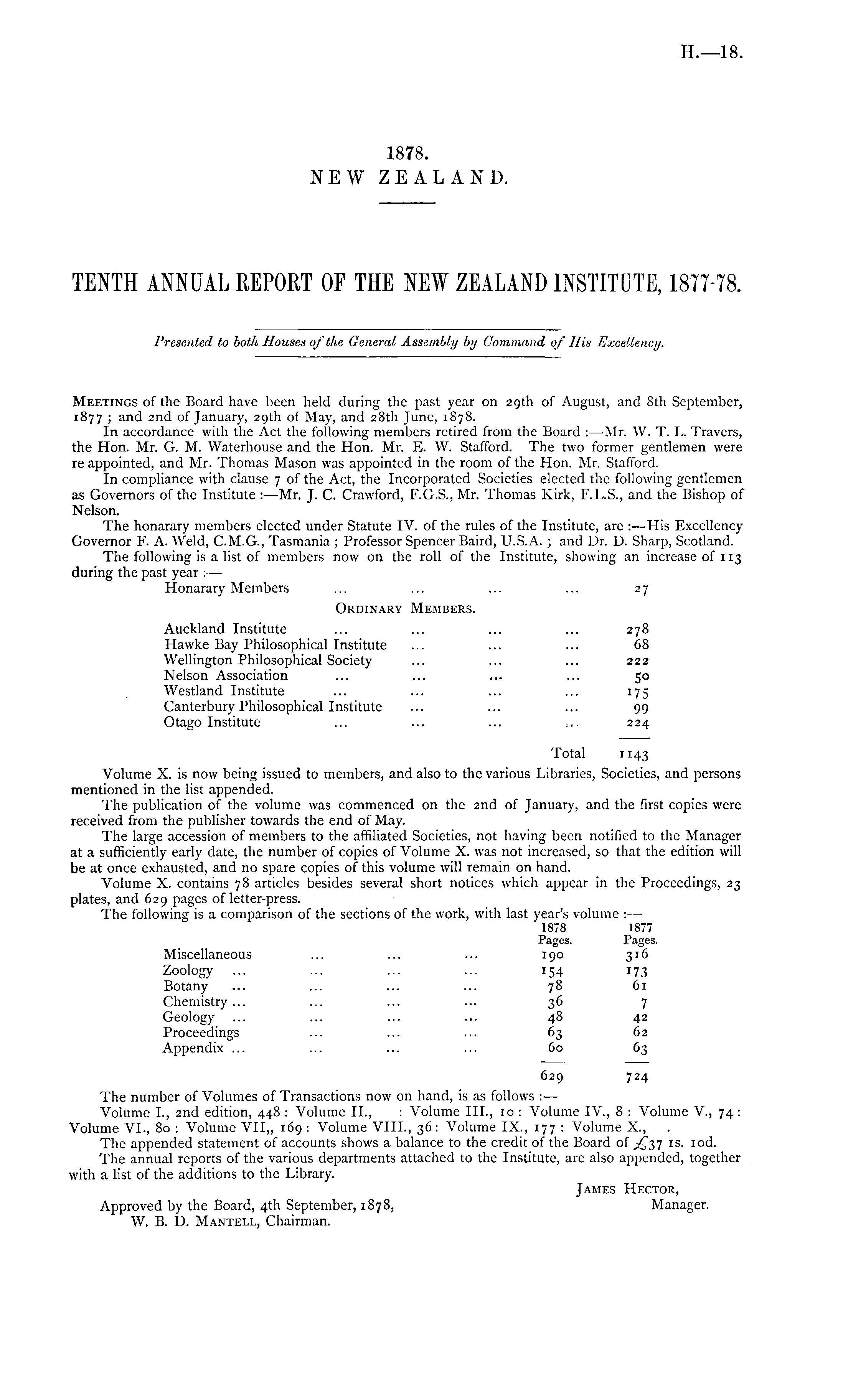 TENTH ANNUAL REPORT OF THE NEW ZEALAND INSTITUTE, 1877-78.