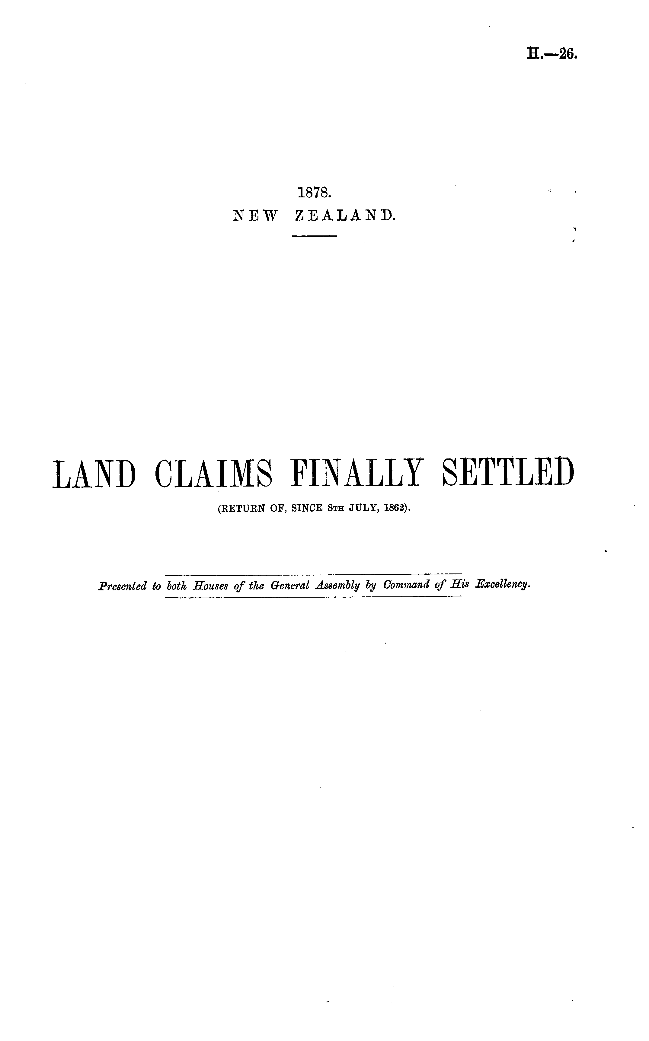LAND CLAIMS FINALLY SETTLED (RETURN OF, SINCE 8TH JULY, 1862).