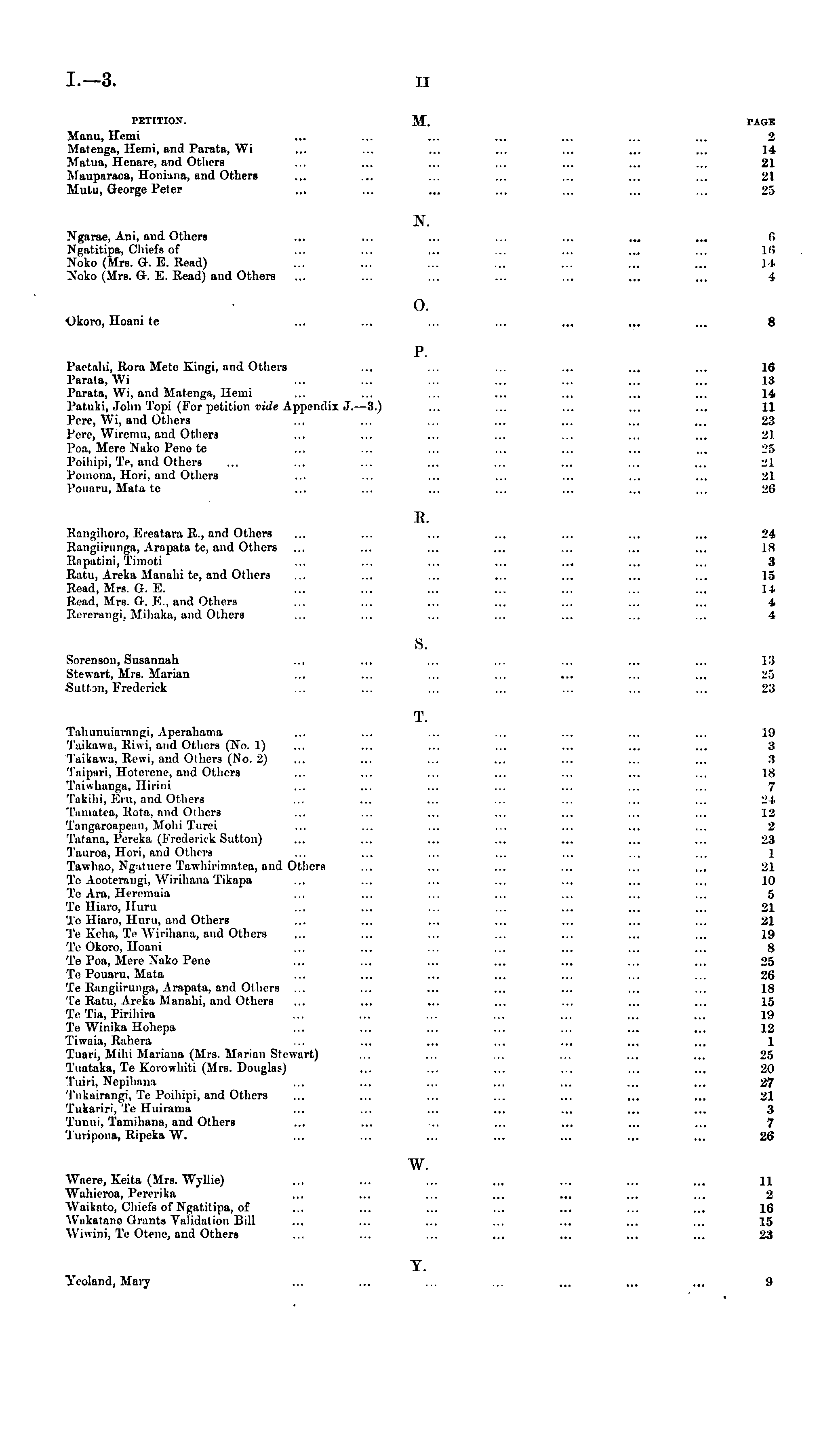 PETITION. M. PAGE Manu, Hemi ... ... ... ... ... ... ... 2 Matenga, Hemi, and Parata, Wi ... ... ... ... ... ... ... 14 Matua, Hcuare, and Others ... ... ... ... ... ... ... 21 Maupuraoa, Honiana, and Others ... ... ... ... ... ... ... 21 Mulu, George Peler ... ... ... ... ... ... ... 25 N. \garae, Ani, and Others ... ... ... ... ... ..„ ... (! Ngatitipa, Chiefs of ... ... ... ... ... ... ... lfl Noko (Mrs. G. E. Read) ... ... ... ... ... ... ... 1 ! Noko (Mrs. G. E. Read) and Others ... ... ... ... ... ... ... 4 0. Okoro, Hoani te ... ... ... ... ... ... ... 8 P. Paotahi, Rora Mete Kingi, and Others ... ... ... ... ... ... 16 I'arula, Wi ... ... ... ... ... ... ... 13 Parata, Wi, and Matenga, Hemi ... ... ... ... ... ... ... 14 Pntuki, John Topi (For peLition vide Appendix J. —3.) ... ... ... ... ... 11 Pew, Wi, and Others ... ... ... ... ... ... ... 23 Pore, Wiremu, and Others ... ... ... ... ... ... ... 21 I'oa, Mere Nako Pene te ... ... ... ... ... ... ... 25 Poihipi, Te, and Others ... ... ... ... ... ... ... ... 21 Pomona, 11ori, and Others ... ... ... ... ... ... ... 21 Pouaru, Mala te ... ... ... ... ... ... ... 26 E. Rangihoro, Ereatara R., and Others ... ... ... ... ... ... ... 24 Rangiirunga, Arapata te, and Others ... ... ... ... ... ... ... 18 Rnpntini, Timoti ... ... ... ... ... ... ... 3 Ratu, Areka Manahi te, and Others ... ... ... ... ... ... ... 15 Read, Mrs. G. E. ... ... ... ... ... ... ... 14 Read, Mrs. G. E., and Others ... ... ... ... ... ... ... 4 Rererungi, Mihakn, and Others ... ... ... ... ... ... ... 4 8. Sorenson, Susannah ... ... ... ... ... ... ... 18 Stewart, Mrs. Marian ... ... ... ... ... ... ... 2"> Suit an, Frederick ... ... ... ... ... ... ... 23 T. Talinnuiamngi, Aperabama ... ... ... ... ... ... ... 10 Taikawa, Kiwi, and Others (No. 1) ... ... ... ... ... ... ... ;i Taikawu, Rcivi, and Others (No. 2) ... ... ... ... ... ... ... 1! Tnipnri, Hoterene, and Others ... ... ... ... ... ... ... 18 Taiwhanga, Hii-ini ... ... ... ... ... ... ... 7 Takilii, Era, and Others ... ... ... ... ... ... ... 24 Tamatea, Rota, and Oihers ... ... ... ... ... ... ... 12 Tangaroapeaii, Mohi Turei ... ... ... ... ... ... ... 2 Tat ana, Pereka (Frederick Sutton) ... ... ... ... ... ... ... 23 Tiuiroa, Ilori, and Others ... ... ... ... ... ... ... 1 Tawliiio, NgilucTC Tawliiriinalea, and Others ... ... ... ... ... ... 21 To Aooterangi, Wirihana Tikapa ... ... ... ... ... ... ... 10 Te Ara, Heremaia ... ... ... ... ... ... ... 5 Tc Hiaro, Huru ... ... ... ... ... ... ... 21 Te Hiaro, Huru, and Others ... ... ... ... ... ... ... 21 Te Keha, TV Wirihana, and Others ... ... ... ... ... ... ... 19 Te Okoro, Hoani ... ... ... ... ... ... ... 8 Te Poa, Mere Xako Pene ... ... ... ... ... ... ... 25 Te Pouaru, Mata ... ... ... ... ... ... ... 26 Te Riingiirunga, Arapata, and Others ... ... ... ... ... ... ... 18 Te Ratu, Areka Manahi, and Others ... ... ... ... ... ... ... 15 To Tin, Pirihira ... ... ... ... ... ... ... 19 Te Winika Hohepa ... ... ... ... ... ... ... 12 Tiwaia. Riihera ... ... ... ... ... ... ... 1 Tuari, Mihi Mariana (Mrs. Marian Stewart) ... ... ... ... ... ... 25 Tualaka, Te Korowhiti (Mrs. Douglas) ... ... ... ... ... ... 20 Tuiri, Nepilinua ... ... ... ... ... ... ... 27 Tnkairangi, Te Poihipi, and Others ... ... ... ... ... ... ... 21 Tukariri, Te Huirama ... ... ... ... ... ... ... 3 Tunui, Tiinuliiina, and Others ... ... ... ... ... ... ... 7 Turipona, Ripeka W. ... ... ... ... ... ... ... 26 w. Waei-e, Keita (Mrs. Wyllie) ... ... ... ... ... ... ... 11 Wuhieroa, Pererika ... ... ... ... ... ... ... 2 Waikato, Chiefs of Ngatilipa, of ... ... ... ... ... ... ... 16 "Wakatane Grants Validation Bill ... ... ... ... ... ... ... 15 Wiwini, Te Otenc, and Others ... ... ... ... ... ... ... 23 T. Teoland, Mary ... ... ... ... ... ... ... 9