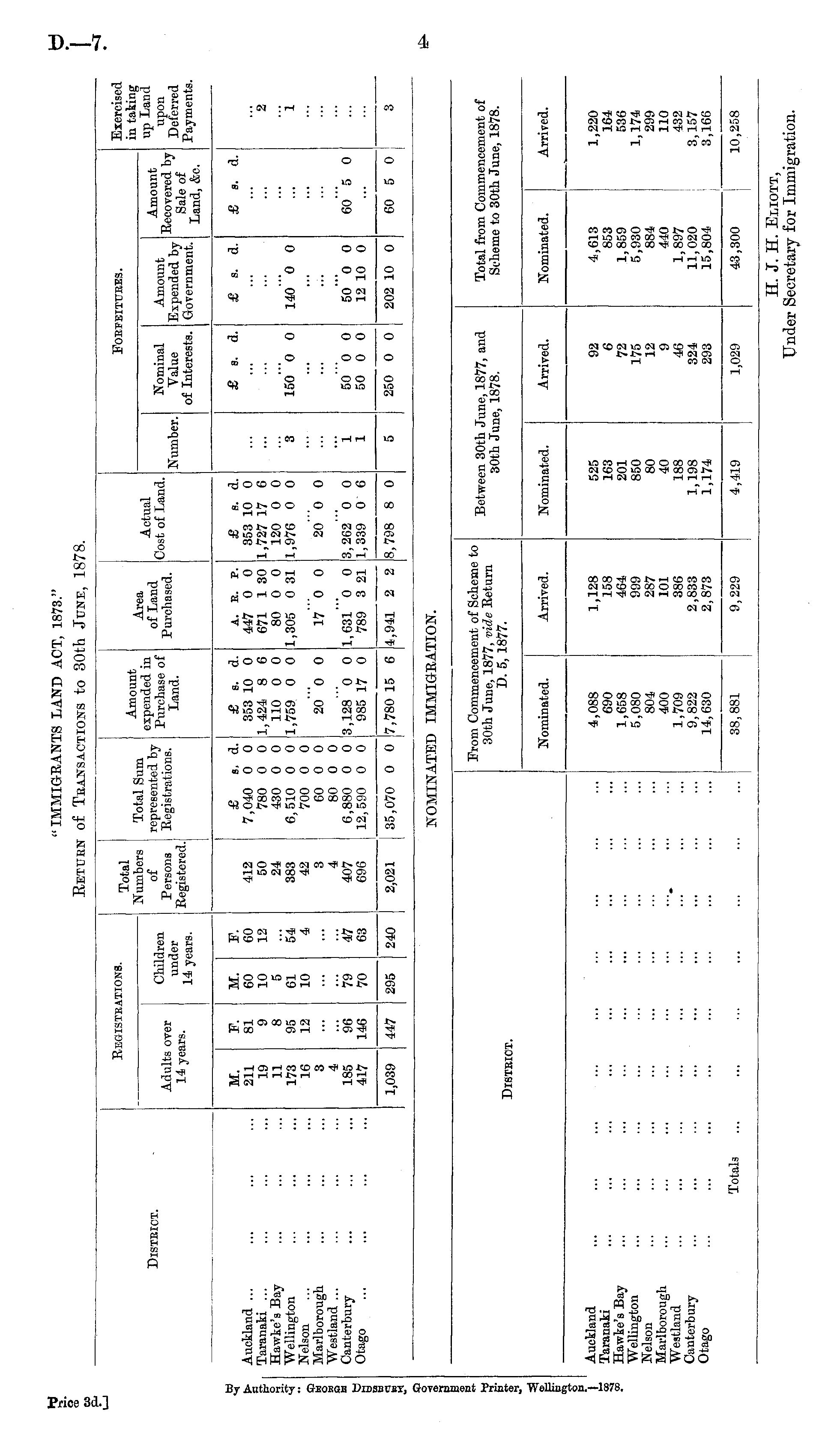 "IMMIGRANTS LAND ACT, 1873." RETURN of TRANSACTIONS to 30th JUNE, 1878.