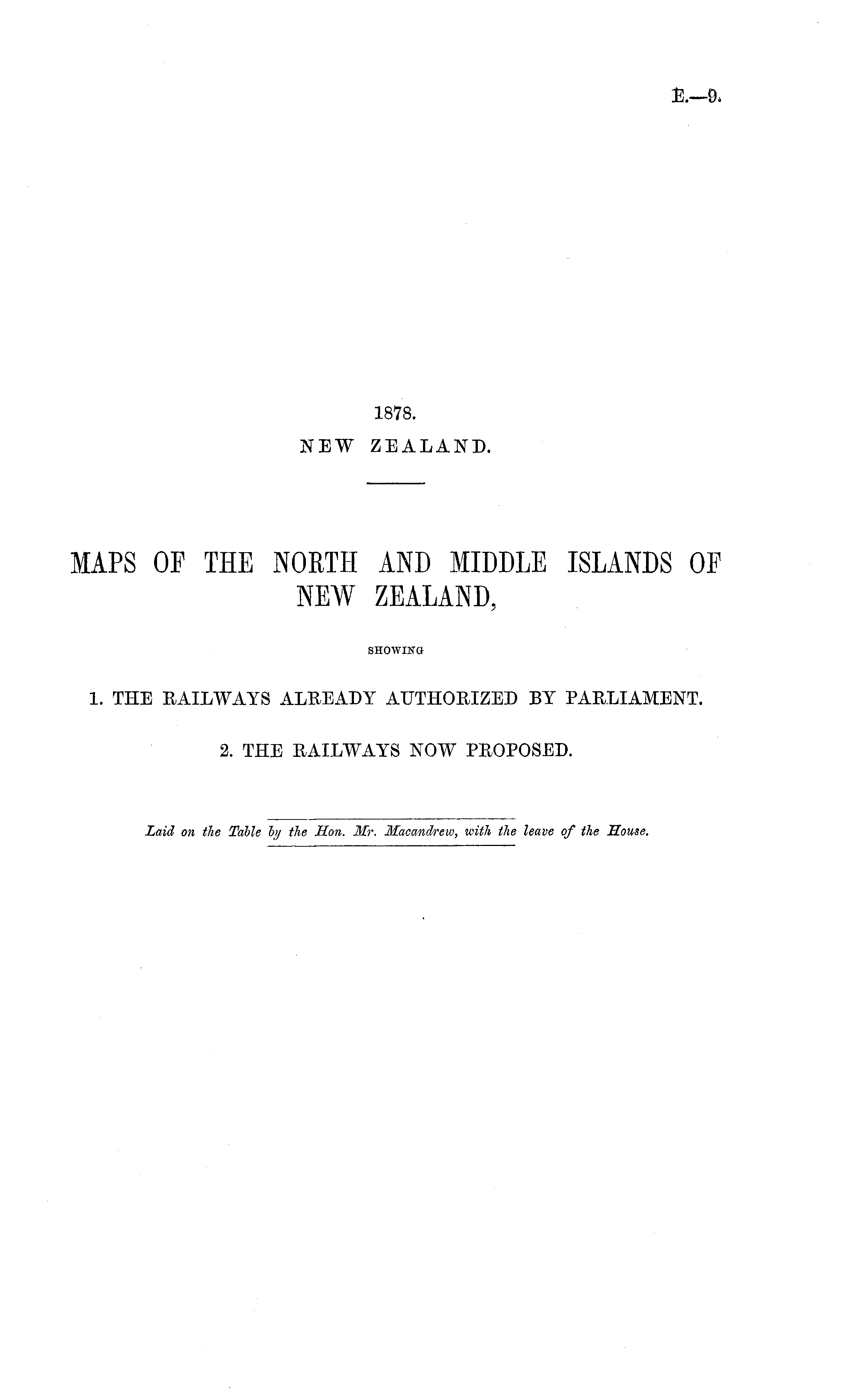 Laid on the Table hy the Hon. Mr. Macandrew, with the leave of the House.