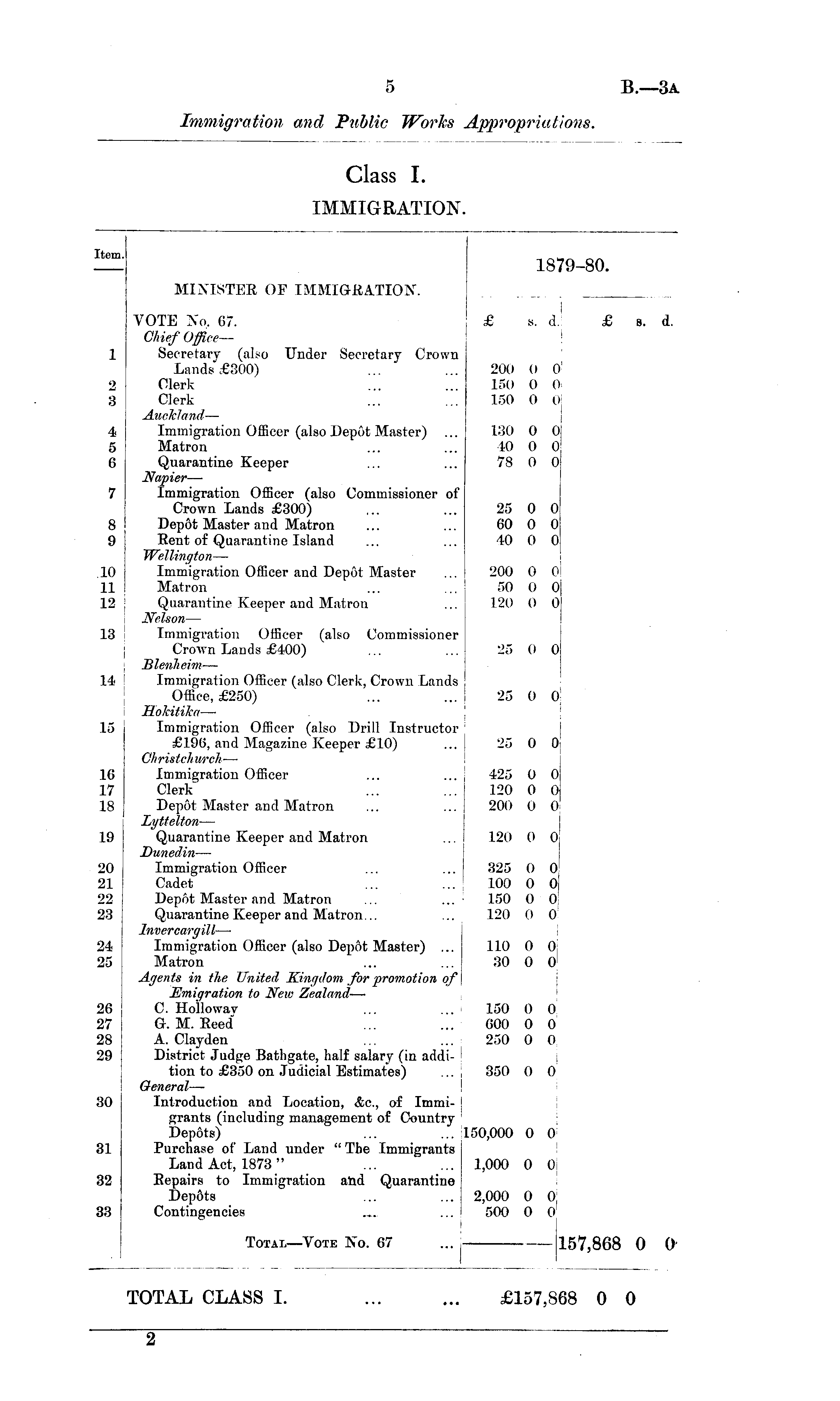 TOTAL CLASS I. ... ... £157,868 0 0 _