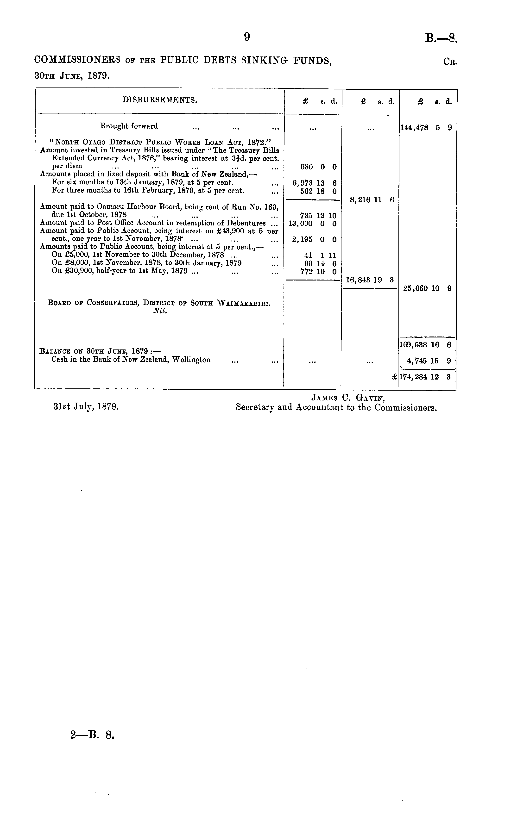James C. Gavin, 31st July, 1879. Secretary and Accountant to the Commissioners. 2—B. 8.