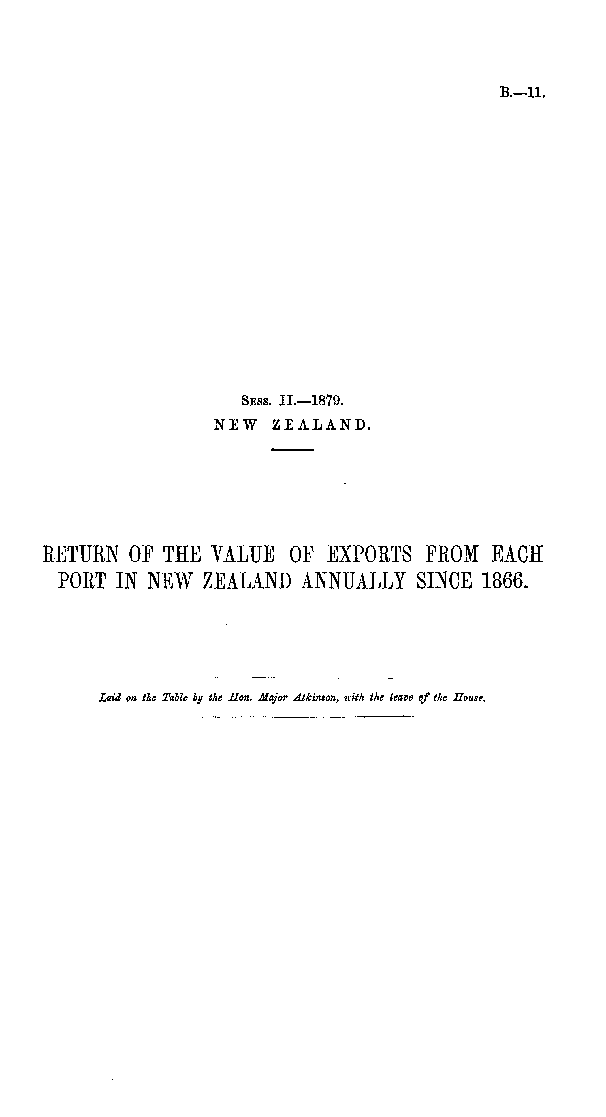 Laid on the Table by the Hon. Major Atkinson, ivith the leave of the House.