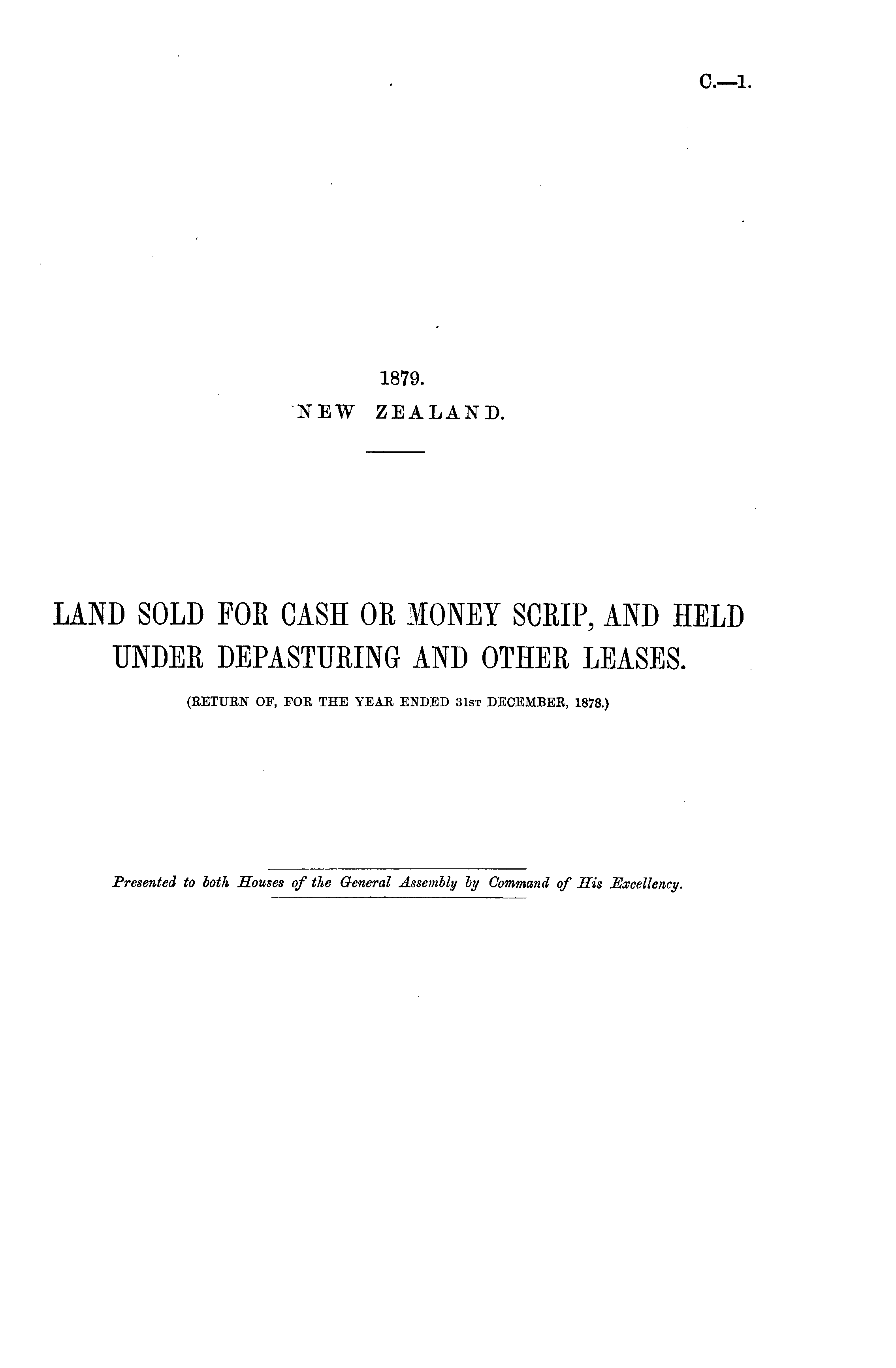 LAND SOLD FOR CASH OR MONEY SCRIP, AND HELD UNDER DEPASTURING AND OTHER LEASES. (RETURN OF, FOR THE YEAR ENDED 31ST DECEMBER, 1878.)