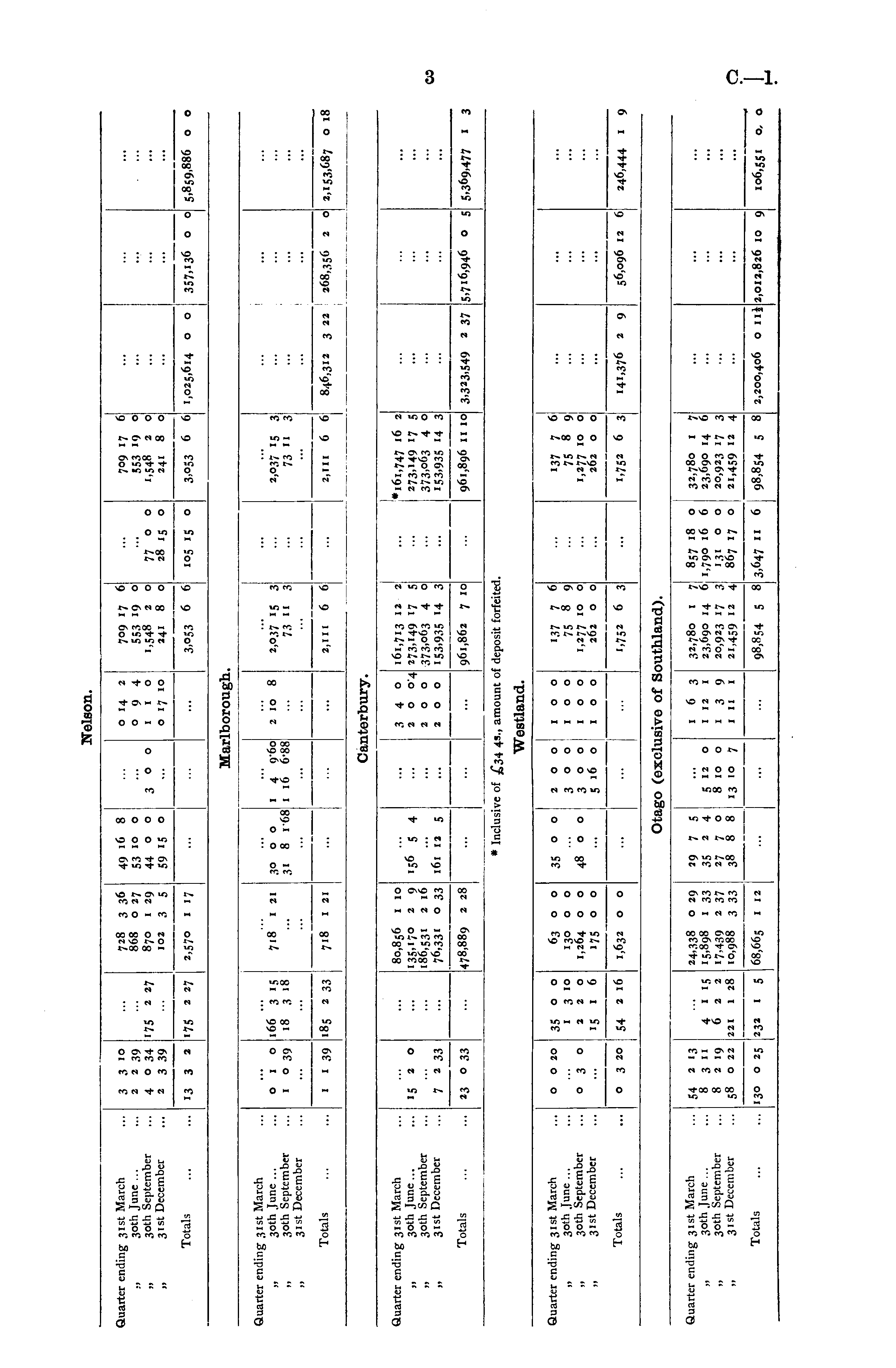 Quarter ending 31st March ,, 30th June ... „ 30th September „ 3 1 st December 3 3 IO 2 2 39 4 o 34 2 3 39 ... ... '75 2 27 728 3 36 868 o 27 870 1 29 102 3 5 49 16 8 53 io o 44 o o 59 15 o | ... 300 o 14 2 0 9 4 1 1 o o 17 10 709 17 6 553 19 o| 1,548 2 01 241 8 o 7700 28 15 o 709 17 6 553 19 o 1,548 2 o 241 8 o ... ... ... ... I ' I 357,136 o o 5,859,886 o Totals ! '3 3 2 J175 2 27 2,570 1 17 ... ... ... 3,053 6 6 3,053 6 6, 1,025,614 o o 105 15 o