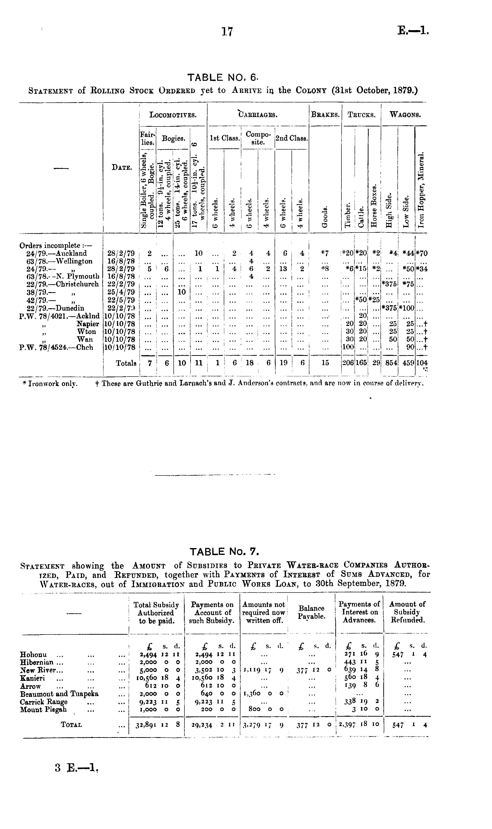 TABLE NO. 6. STATEMENT of ROLLING STOCK ORDERED yet to ARRIVE in the COLONY (31st October, 1879.)