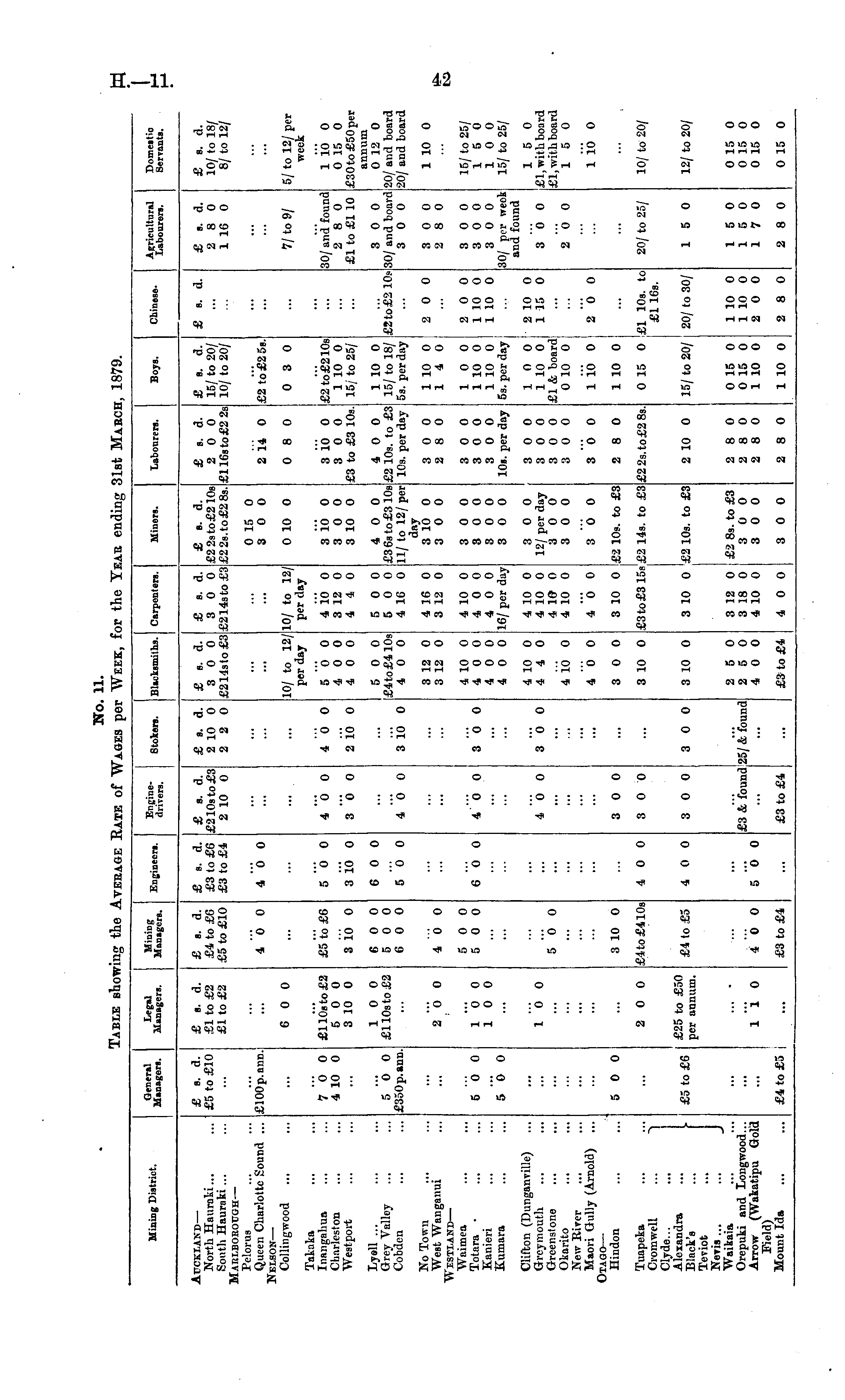 No. 11. Table showing the Average Rate of Wages per AVeek, for the Tear ending 31st March, 1879.