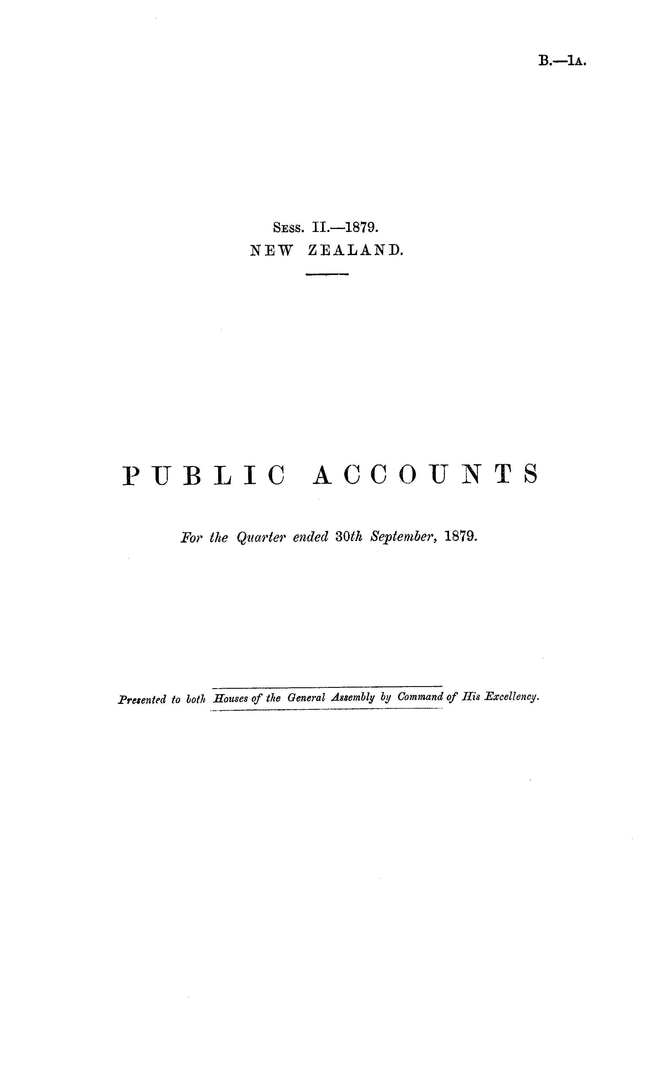 PUBLIC ACCOUNTS For the Quarter ended 30th September, 1879.