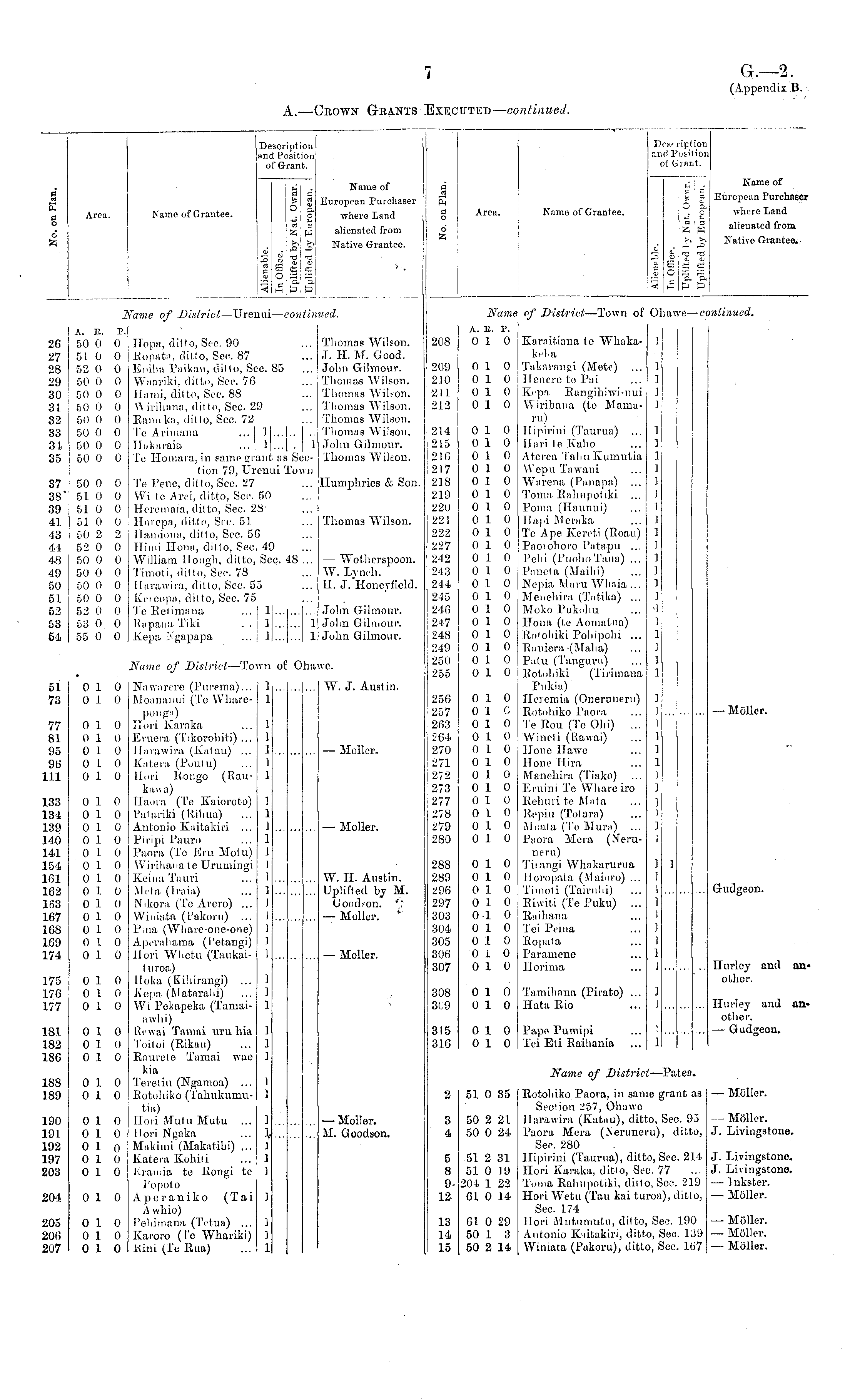 am »scr Ifr •iption ositioD ■rant. if £ I ■ a c te cj O. o. . i o — KI (3 Vl ro -a Or J _ 'a. 'a, Name of i E a o o K Area. Area. Name of Grantee. European Purchaser where Land alienated from KI _ . fi'. — or t; •S cS s 5 ed c I ° |! < £\S. Native Grantee. >- Name of District —Urenui — com •oniin med. 2G 27 28 29 30 31 32 33 31 35 37 38' 39 41 43 44 48 49 50 51 52 63 54 A. K. P. 50 0 0 51 0 0 52 0 0 50 0 0 no o o 50 0 0 50 0 0 50 0 0 50 0 0 50 0 0 50 0 0 51 0 0 51 0 0 51 0 0 50 2 2 52 0 0 50 0 0 50 0 0 50 0 0 50 0 0 52 0 0 63 0 0 55 0 0 Hopn, dilto, See. 90 Ropata, dillo, Sec. 87 Epiha Puiliau, ditto, Sec. 85 Waariki, ditto, Sec. 76 liami, dilto, Sec. 88 Wirihana, ditto, Seo, 29 Kanaka, ditto, Sec. 72 '!'e Arimana ... j 11...I.. [ Hakaraia, ... | 1|...| ■ | Te Honiara, in same grant as Se tion 79, Urenui Tom Te Pene, ditto, Sec. 27 Wi to Ani, ditto, Sec. 50 Hercniaia, ditto, Sec. 28 Harepa, ditto, Sec. 51 Hairiiona, ditto, Sec. 50 Ilimi Hona, ditto, Sec. 49 William Hough, ditto, See. 48 . Timoti, ditto, Sec. 78 Harawira, ditto, See. 55 Keieopa, dilto, Sec. 75 Te Eelimana ... 1 Rapana Tiki . . 1 Kepa I'.'gapapa ... 1 j 1 !CVII Thomas Wilson. J. H. M. Good. John Gilmour. Thomas Wilson. Thomas Wilson. Thomas Wilson. Thomas Wilson. Thomas Wilson. John Gilmour. I'hoinas Wilson. Humphries & Son. Thomas Wilson. — Wolherspoon. W. Lynch. LT. J. Honcylield. 1 1 1 1 John Gilmour. John Gilmour. John Gilmour. Name of District —Town of 0 ivn of O we. ha' 51 73 0 10 0 10 0 10 0 1 0 0 1 0 0 1 0 0 10 0 10 0 10 0 1 0 0 10 0 L 0 0 10 0 1 0 0 10 0 1 0 0 10 0 10 0 1 0 0 10 0 10 0 I 0 0 10 0 10 0 10 0 10 0 10 0 10 0 10 0 10 0 1 o 0 10 0 10 0 10 0 10 0 10 0 I 0 Nawarere (Purema)... 1 [ Monnanui (Te Whare- 1 pbngn) lion Karaka ... 1 Eruera (Tikorohiti) ... 1 Harawira (Kaian) ... 1 ... ... Kateru (Poufu) ... 1 llnri Kongo (Rau- 1 kaua) Haora (To Kaioroto) 1 Patariki (Rihua) ... 1 Antonio Knitakiri ... ) Piripi Paui'rr ... 1 Paora (To Eru Motu) 1 Wirihana le Uruiningi 1 Keina Tauri ... I Mela (Iraia) ... 1 Nikora (Te Arero) ... J Winiata (t'akoru) ... 1 Pina (Wliai'O-ono-one) 1 AprTuhama (I'etangi) ) Hori Whotu (Taukai- 1 turoa) Iloka (Kihirangi) ... 1 Kepa (Matarahi) ... 3 Wi Pekapeka (Tamai- 1 awhi) Rewai Tamai uru hia 1 Toitoi (Rikau) ... 1 Rnurele Tamai wae 1 kia Terciiii (Ngamoa) ... 1 Rotohiko (Tahukumu- 1 tia) Hori Mutu Mutu ... j 1 Hori Ngaka ... \ Mnkiini (Makatihi) ... j J Katei-a Kohiii ... 1 iLrainia te Kongi te; J l'opoto A p e r a n i k o (T a i 1 A whio) Pelriinana (Tetua) ... 1 Karoro (I'e Whariki) ] liini (To Kua) ... 1 W. J. Austin. 77 81 95 m .11 — Mollcr. L33 134 139 340 L41 .54 161 362 163 L67 368 fill L74 — Moller. W. H. Austin. Uplifted by M. Uoodron. — Moller. — Moller. 75 L.76 77 181 82 .86 188 89 .90 .91 02 .97 S03 — Moller. M. Goodson. !04 !05 S06 307