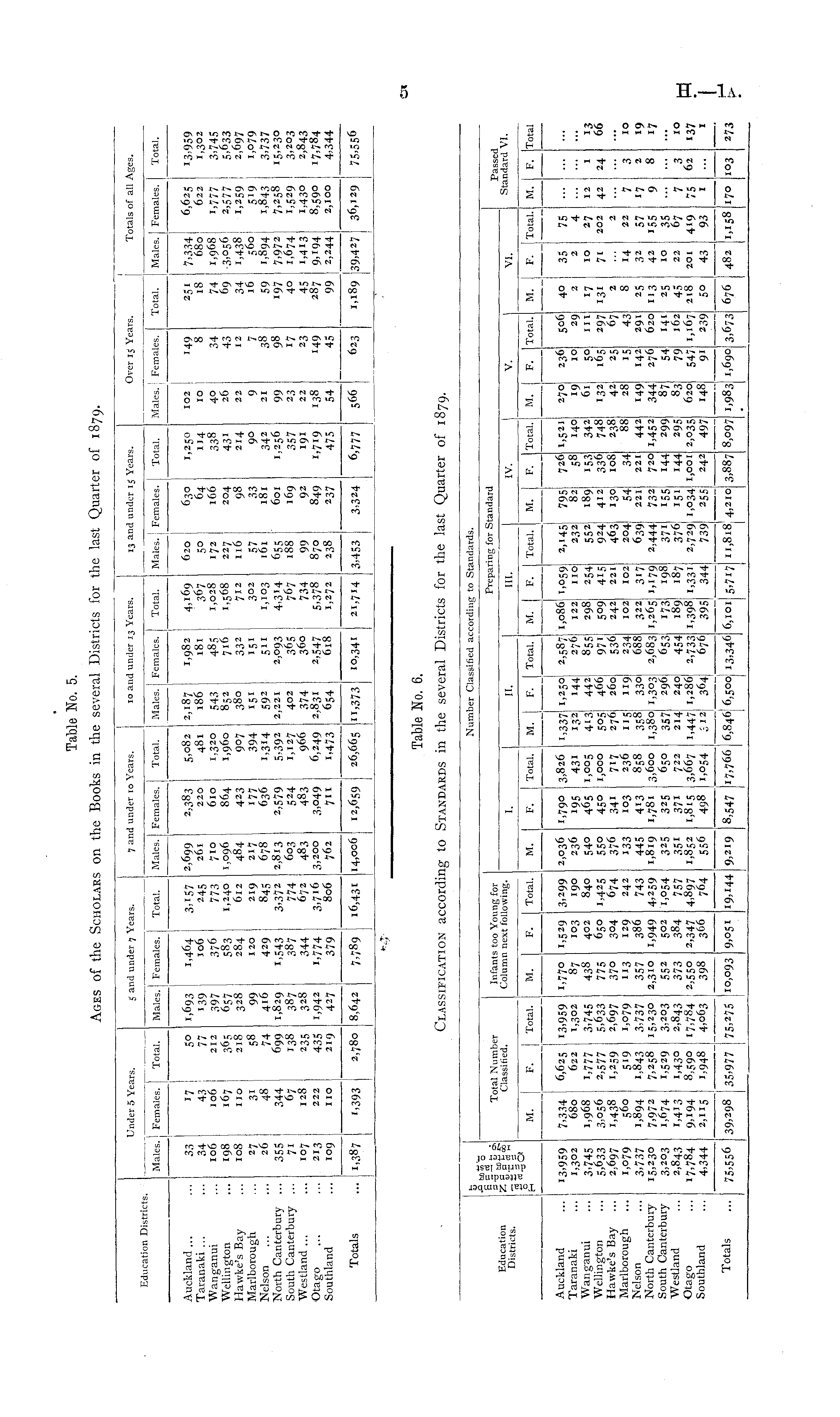 Table No. 5. Ages of the Scholars on the Books in the several Districts for the last Quarter of 1879.