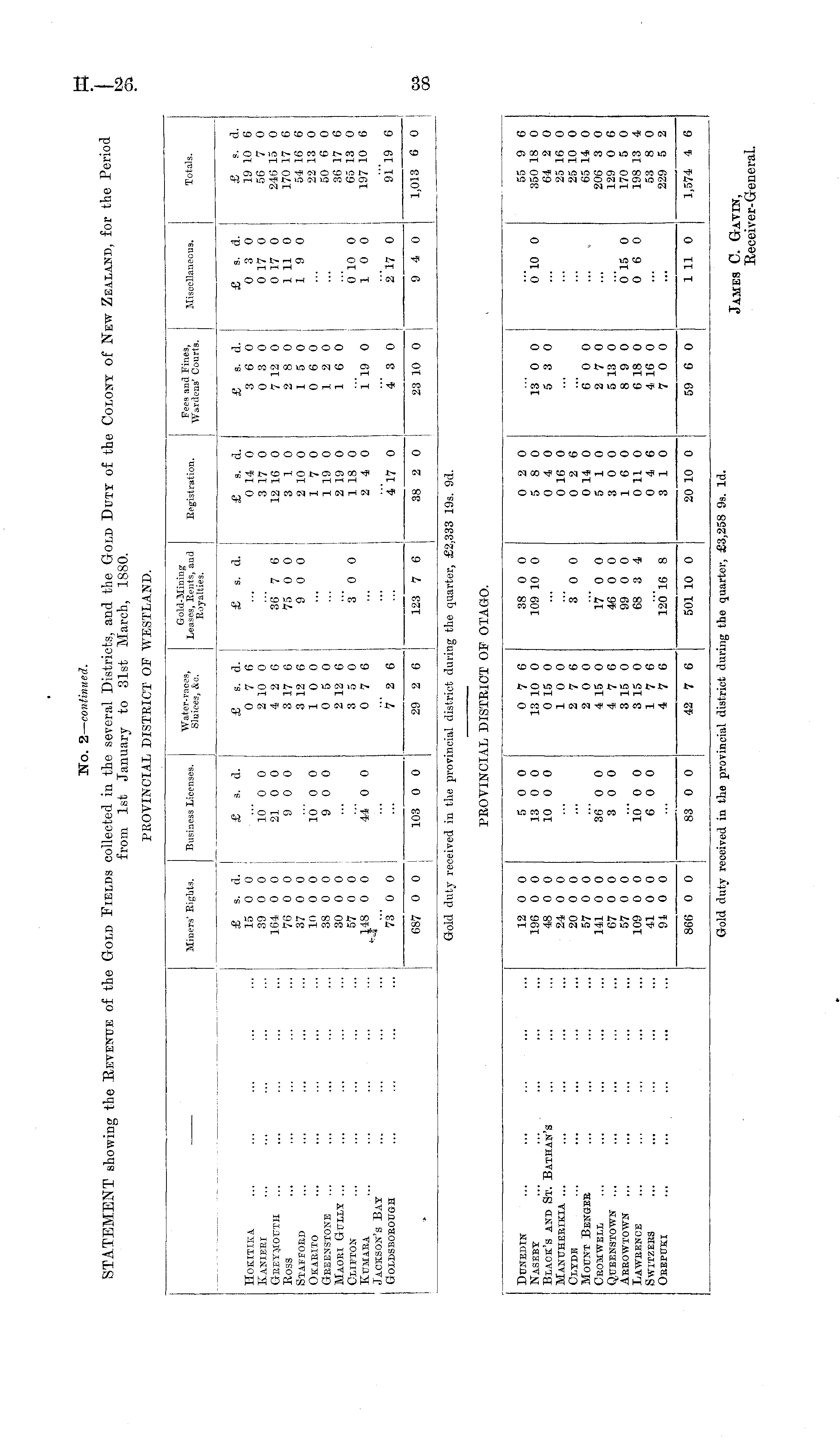 No. 2-continued. STATEMENT showing the Revenue of the Gold Fields collected in the several Districts, and the Gold Duty of the Colony of New Zealand, for the Period from 1st January to 31st March, 1880. PROVINCIAL DISTRICT OF WESTLAND.