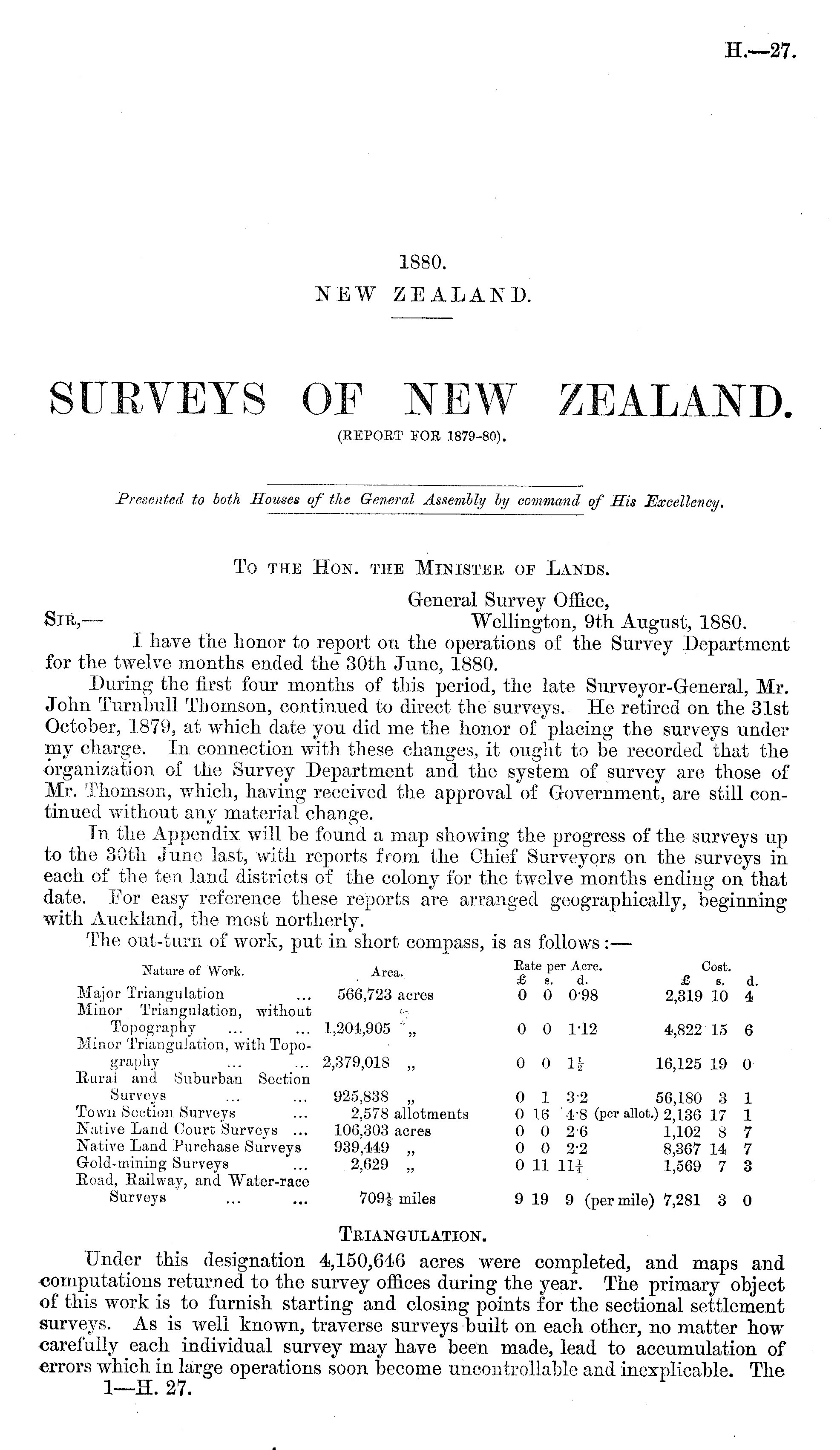 SURVEYS OF NEW ZEALAND. (REPORT FOR 1879-80).