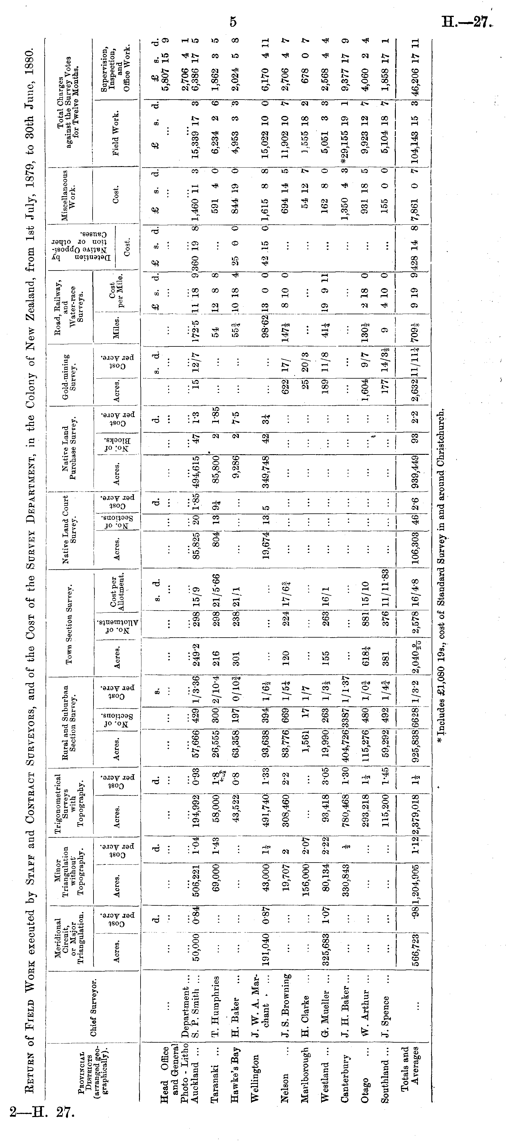 Return of Field Work executed by Staff and Contract Surveyors, and of the Cost of the Survey Department, in the Colony of New Zealand, from 1st July, 1879, to 30th June, 1880.