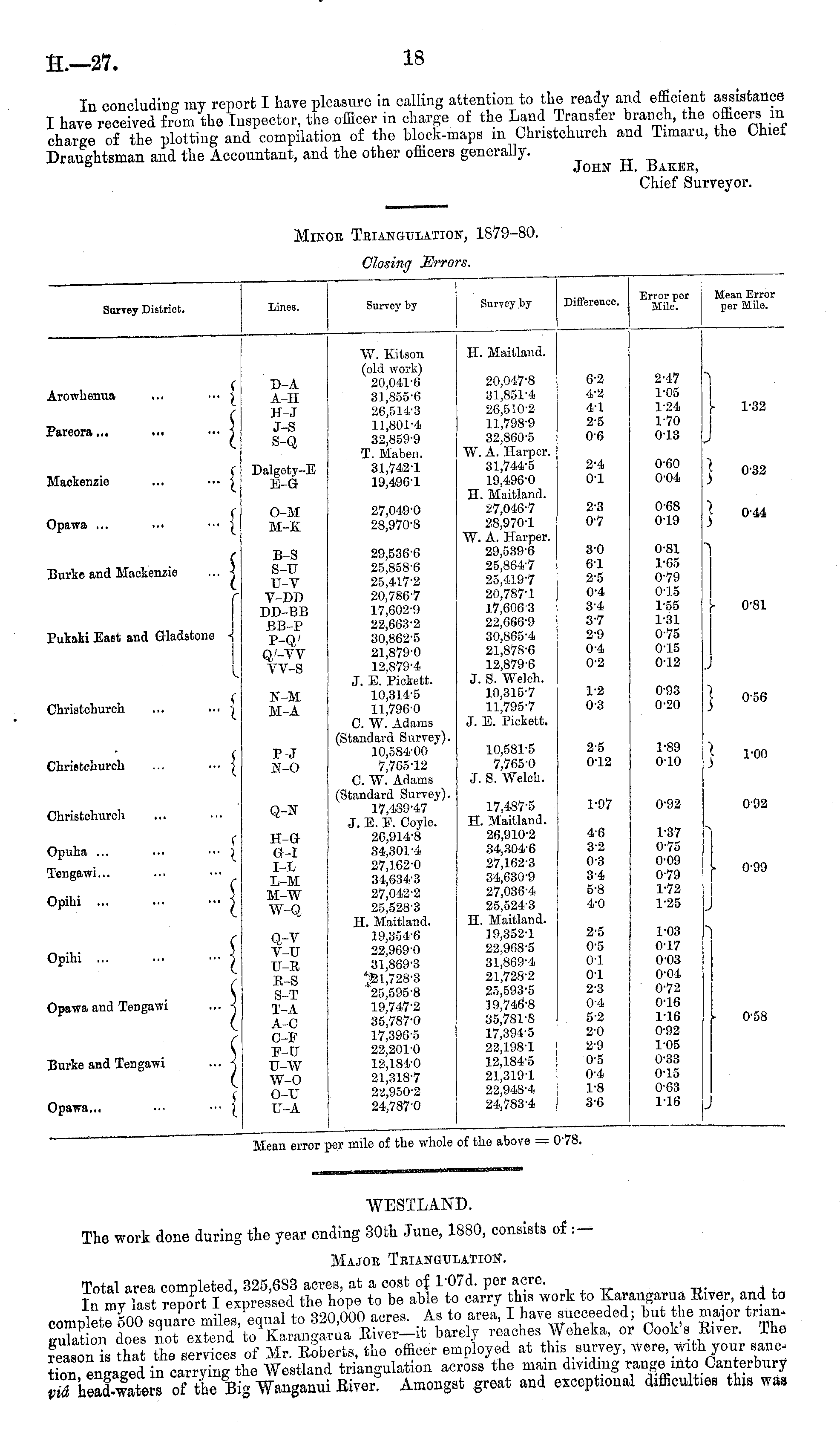 Survey by Survey by Difference. Error per Mile. Mean Error per Mile. Survey District. Lines. Lrowhenua ... ■•• ) 'areora... ... ■•• j D-A A~H H-J J-S S-Q W. Kilson (old work) 20,041-6 31,855-6 26,514-3 11,801-4 32,859-9 T. Maben. 31,742-1 19,496-1 H. Maitland. 20,047-8 31,851-4 26,510-2 11,798-9 32,860-5 W. A. Harper. 31,744-5 19,496-0 II. Maitland. 27,046-7 28,970-1 W. A. Harper. 29,539-6 25,864-7 25,419-7 20,787-1 17,6063 22,666-9 30,865-4 21,878-6 12,8796 J. S. Welch. 10,315-7 11,795-7 J. E. Pickett. 6-2 4-2 4-1 2-5 0-6 2-47 1-05 1-24 1-70 013 1 1-32 lackenzie ... '" (. Dalgety-E E-G 2-4 0-1 0-60 0-04 } 0-32 )pawa ... ... ■•• | O-M M-K 27,049-0 28,970-8 2-3 0-7 0-68 0-19 ) 3 0-44 Jurke and Mackenzie ... < r 'ukaki East and Gladstone -j I B-S S-TJ XJ-T V-DD DD-BB BB-P P-Q' Q'-VV YV-S 29,536-6 25,858-6 25,417-2 20,7867 17,602-9 22,663-2 30,862-5 21,879-0 12,879-4 J. E. Pickett. 10,314-5 11,796-0 C. W. Adams (Standard Survey). 10,584-00 7,765-12 C. W. Adams (Standard Survey). 17,489-47 J. E. P. Coyle. 26,914-8 34,301-4 27,162-0 34,634-3 27,042-2 25,528-3 H. Haitian d. 19,354-6 22,969-0 31,869-3 21,728-3 '25,595-8 19,747-2 35,787-0 17,396-5 22,201-0 12,184-0 21,318-7 22,950-2 24,787-0 3-0 61 25 0-4 3-4 3-7 2-9 0-4 0-2 0-81 1-65 0-79 0-15 1-55 1-31 0-75 015 0-12 1 J 0-81 Jhristchurch ... '" \ N-M M-A 1-2 0-3 0-93 0-20 1 0-56 ( P-J N-0 10,581-5 7,765-0 J". S. Welch. 2-5 0-12 1-89 0-10 1-00 !hristehurch ... '" \ 17,4.87-5 H. Maitland. 26,910-2 34,304-6 27,162-3 34,630-9 27,036-4 25,524-3 H. Maitland. 19,352-1 22,968-5 31,869-4 21,728-2 25,593-5 19,746-8 35,781-8 17,394-5 22,198-1 12,184-5 21,319-1 22,948-4 24,783-4 1-97 0-92 0-92 Jhristehurch } 0-99 )puba ... ... >•• ?engawi... )pihi ... ... ••• j H-G G-I I-L L-M M-W W-Q 4-6 3-2 0-3 3-4 5-8 4-0 1-37 0-75 0-09 0-79 1-72 1-25 )pihi ... ... ■■■ 1 r )pawa and Tengawi ... j S Q-T V-I7 tl-R E~S S-T T-A A-C O-E 1 F-U U-W W-0 O-TJ U-A 2-5 0-5 01 0-1 2-3 0-4 5-2 2-0 2-9 0-5 0-4 1-8 3-6 1-03 0-17 0 03 0-04 0-72 0-16 1-16 092 1-05 0-33 0-15 0-63 1-16 1 [ J 0-58 5urke and Tongawi ... j )pawa... ••• •■■ \