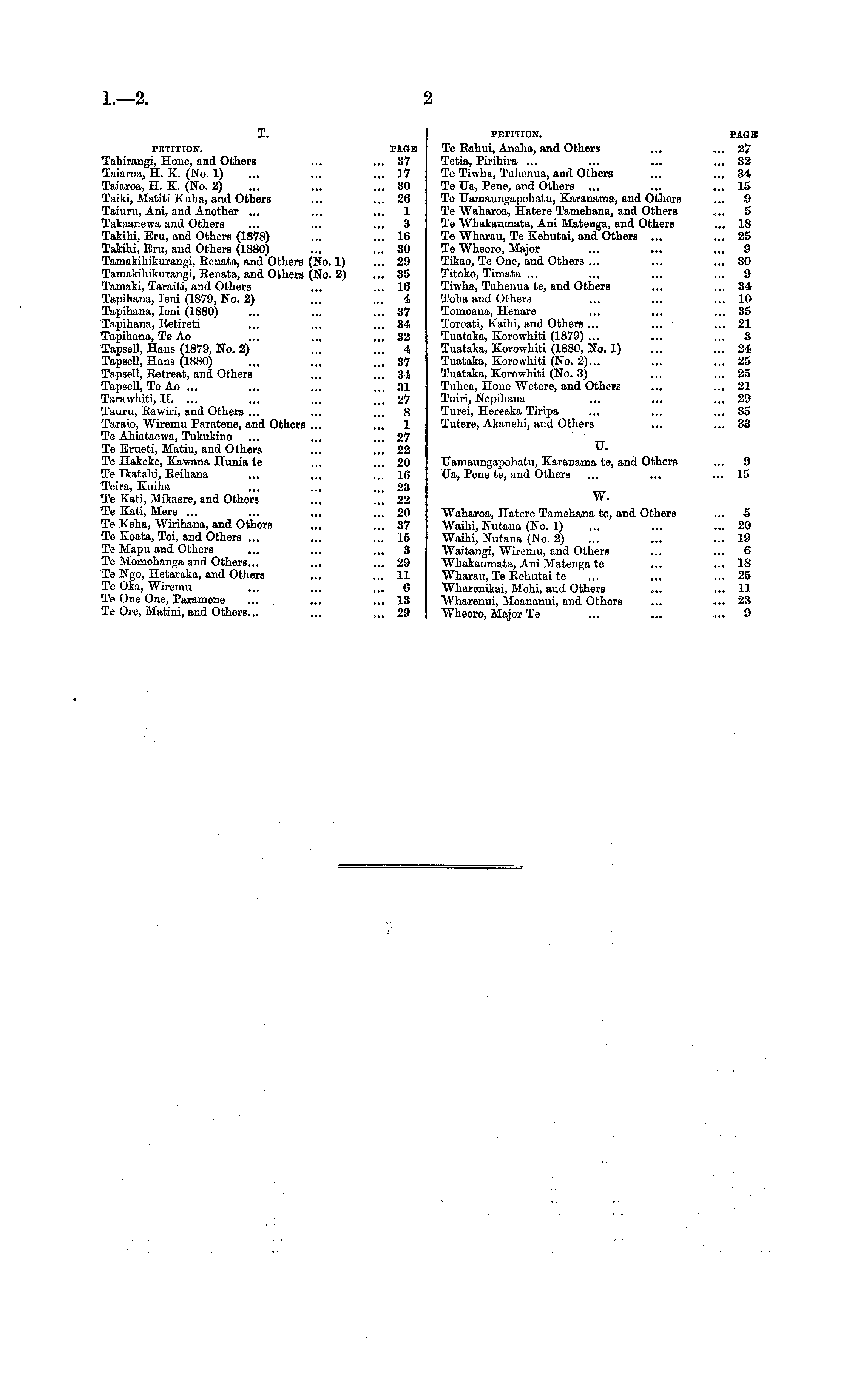 PETITION. PAGB Te Rahui, Analia, and Others ... ... 27 Tetia, Pirihira ... ... ... ... 32 Te Tiwha, Tuhenua, and Others ... ... 34 Te TJa, Pene, and Others ... ... ... 15 Te Uamaungapohatu, Karanama, and Others ... 9 Te Waharoa, Hatere Tamehana, and Others ... 5 Te Whakaumata, Ani Matenga, and Others ... 18 Te Wharau, Te Kehutai, and Others ... ... 25 Te Wheoro, Major ... ... ... 9 Tikao, Te One, and Others ... ... ... 30 Titoko, Timata ... ... ... ... 9 Tiwha, Tuhenua te, and Others ... ... 34 Toha and Others ... ... ... 10 Tomoana, Henare ... ... ... 35 Toroati, Kaihi, and Others ... ... ... 21 Tuataka, Korowhiti (1879) ... ... ... 3 Tuataka, Korowhiti (1880, No. 1) ... ... 24 Tuataka, Korowhiti (No. 2)... ... ... 25 Tuataka, Korowhiti (No. 3) ... ... 25 Tuhea, Hone Wetere, and Others ... ... 21 Tuiri, Nepihana ... ... ... 29 Turei, Hereaka Tiripa ... ... ... 35 Tutere, Akanehi, and Others ... ... 33 U. Uamaungapohatu, Karanama te, and Others ... 9 Ua, Pene te, and Others ... ... ... 15 W. Waharoa, Hatere Tamehana te, and Others ... 5 Waihi, Nutana (No. 1) ... ... ... 20 Waihi, Nutana (No. 2) ... ... ... 19 Waitangi, Wiremu, and Others ... ... 6 Whakaumata, Ani Matenga te ... ... 18 Wharau, Te Rehutai te ... ... ... 25 Wharenikai, Mohi, and Others ... ... 11 Wharenui, Moananui, and Others ... ... 23 Wheoro, Major Te ... ... ... 9