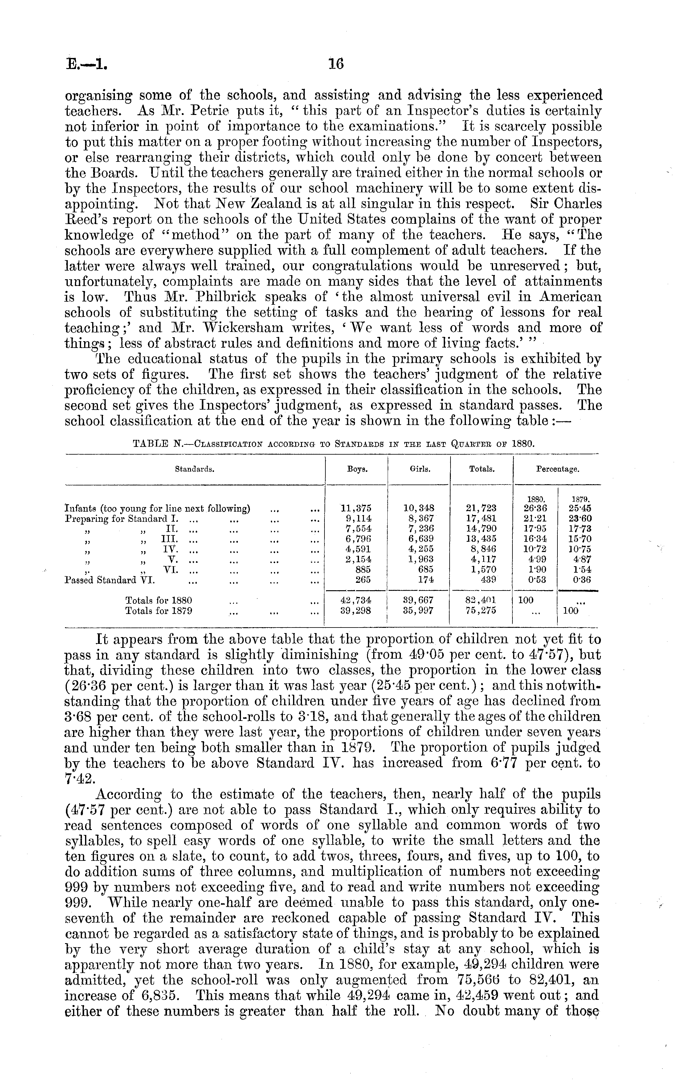 TABLE N. —Classification according to Standards in the last Quarter of 1880.