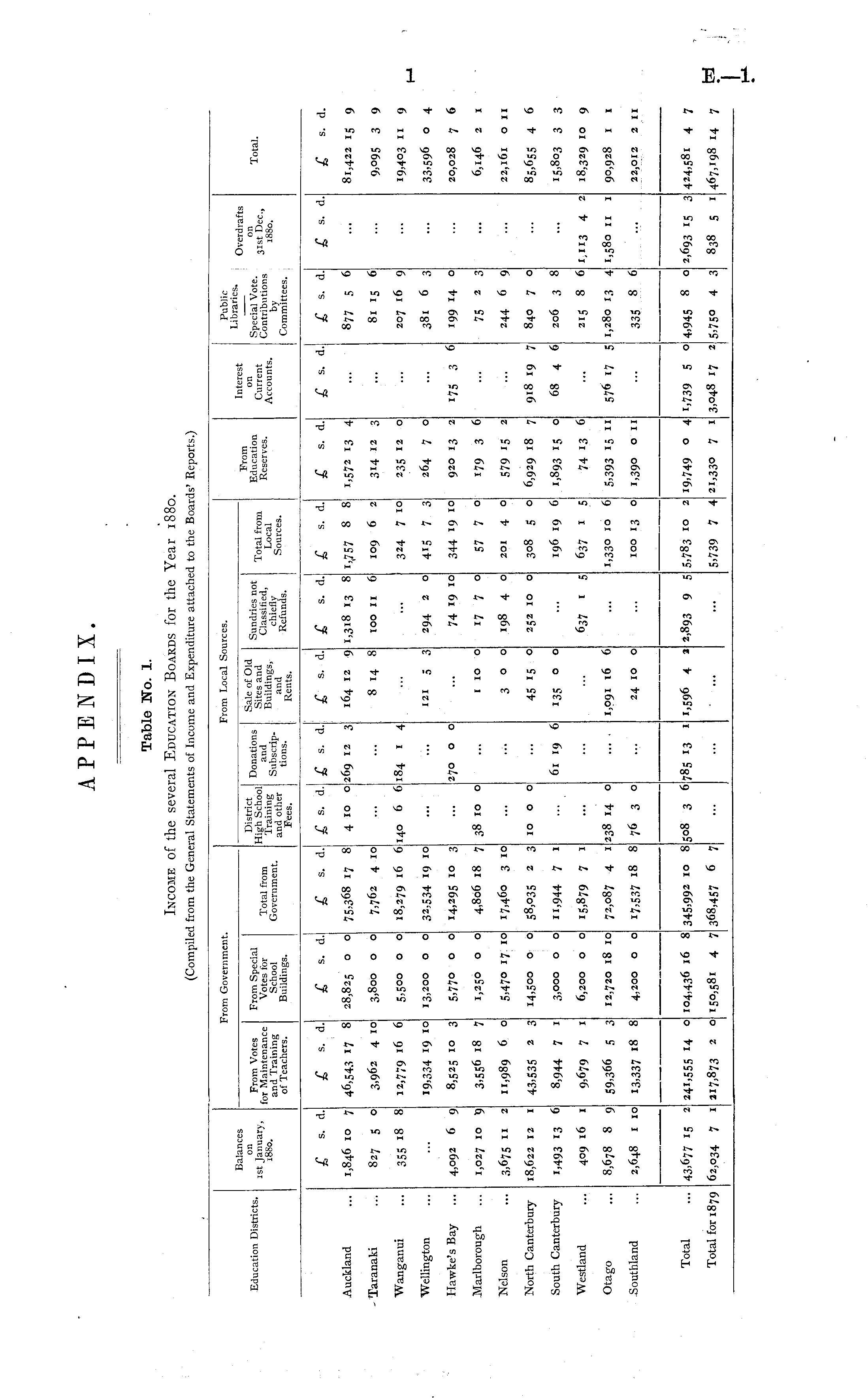 Table No. 1. Income of the several Education Boards for the Year 1880. (Compiled from the General Statements of Income and Expenditure attached to the Boards' Reports.)