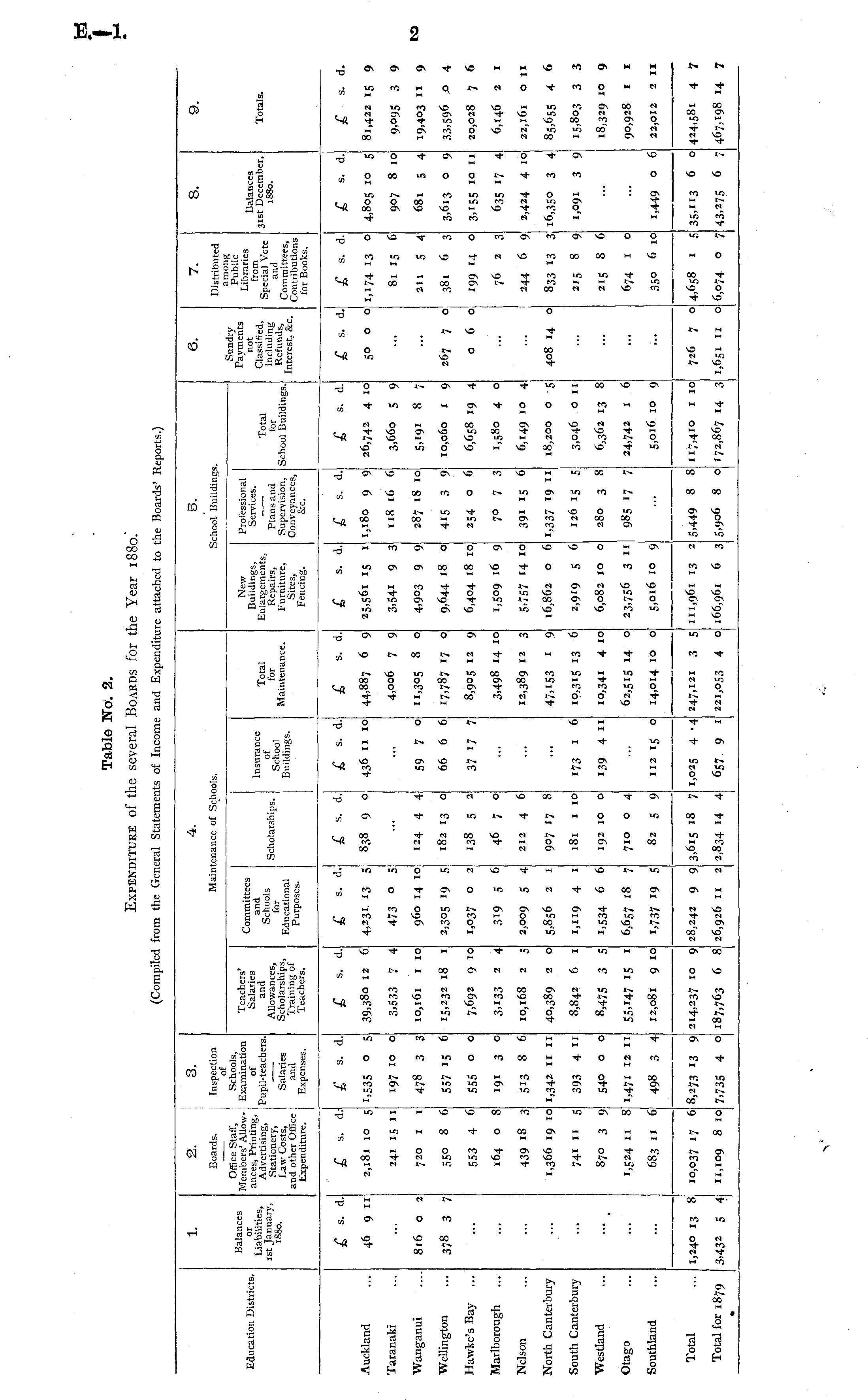 Table No. 2. Expenditure of the several Boards for the Year 1880. (Compiled from the General Statements of Income and Expenditure attached to the Boards' Reports.)