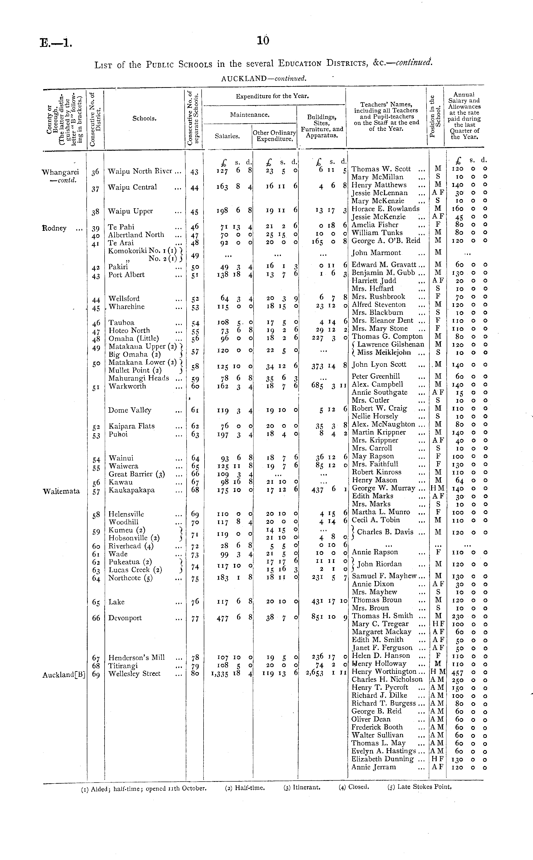 List of the Public Schools in the several Education Districts, &c. — continued. AU CKLAND— continued.
