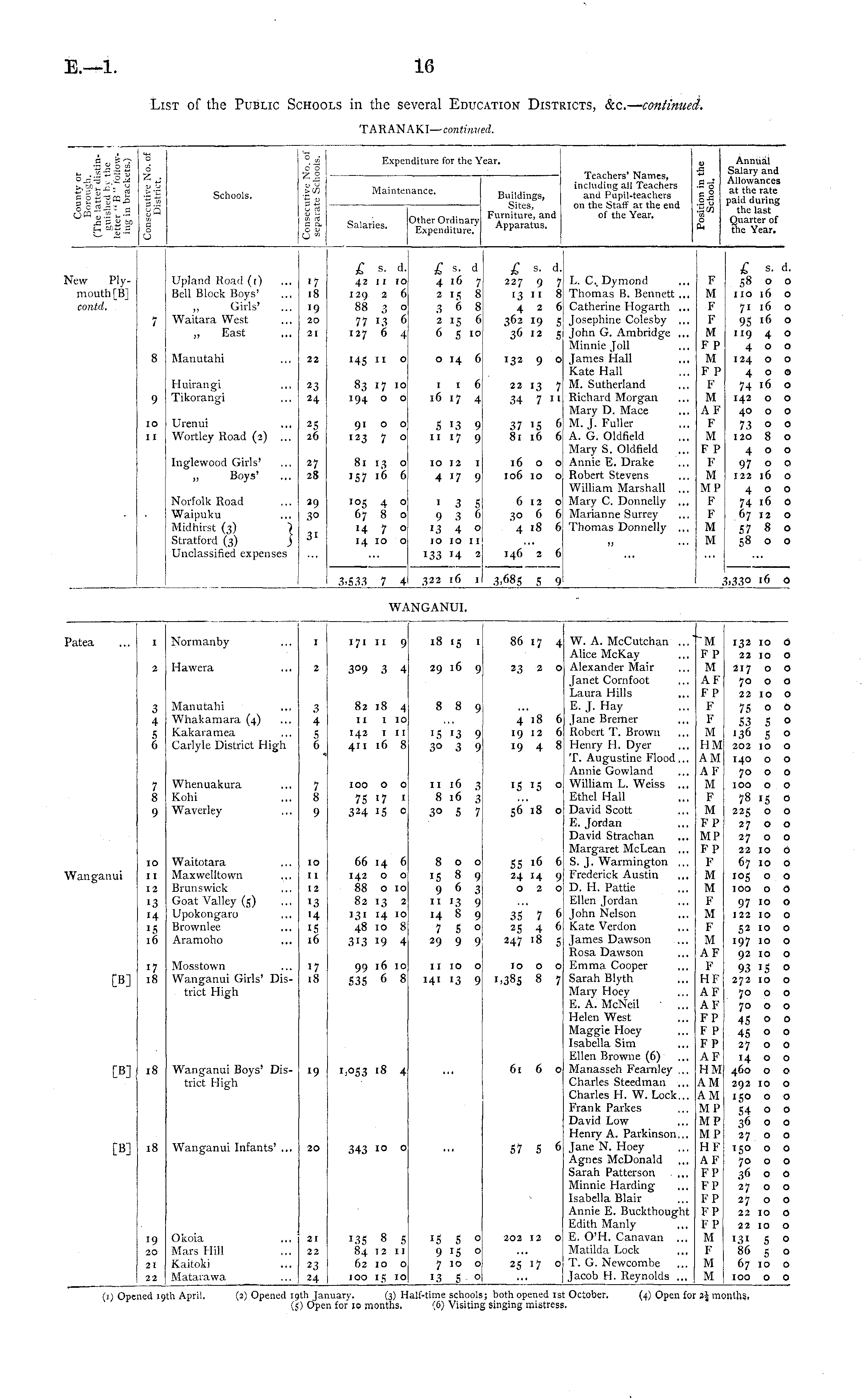List of the Public Schools in the several Education Districts, &c.— continued. TARANAKI— continued.