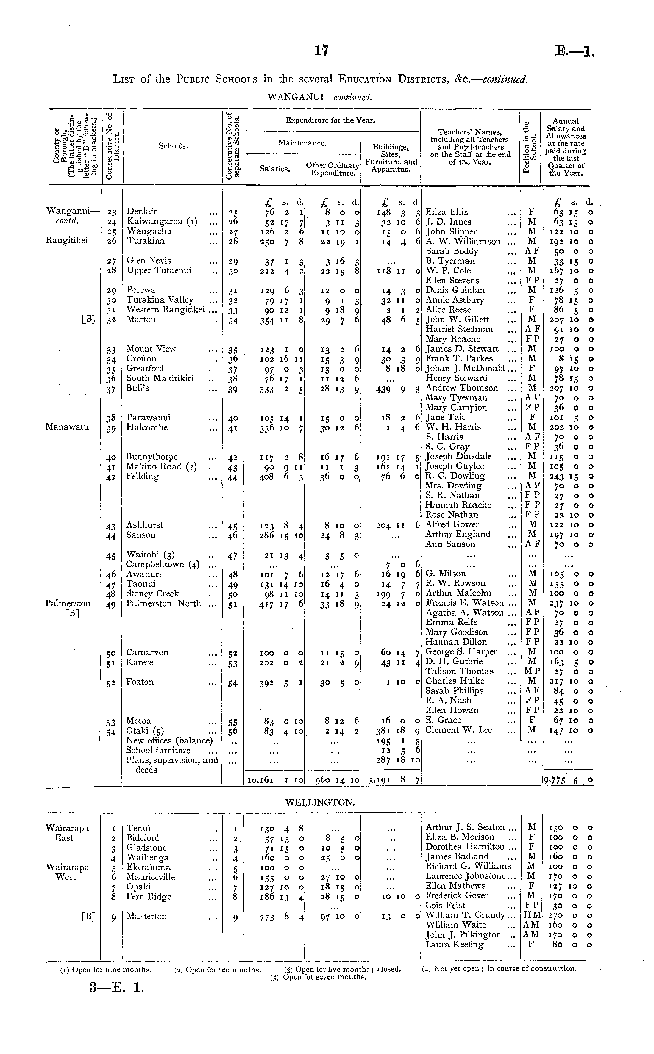 List of the Public Schools in the several Education Districts, &c.— continued. WANGANUI— continued.