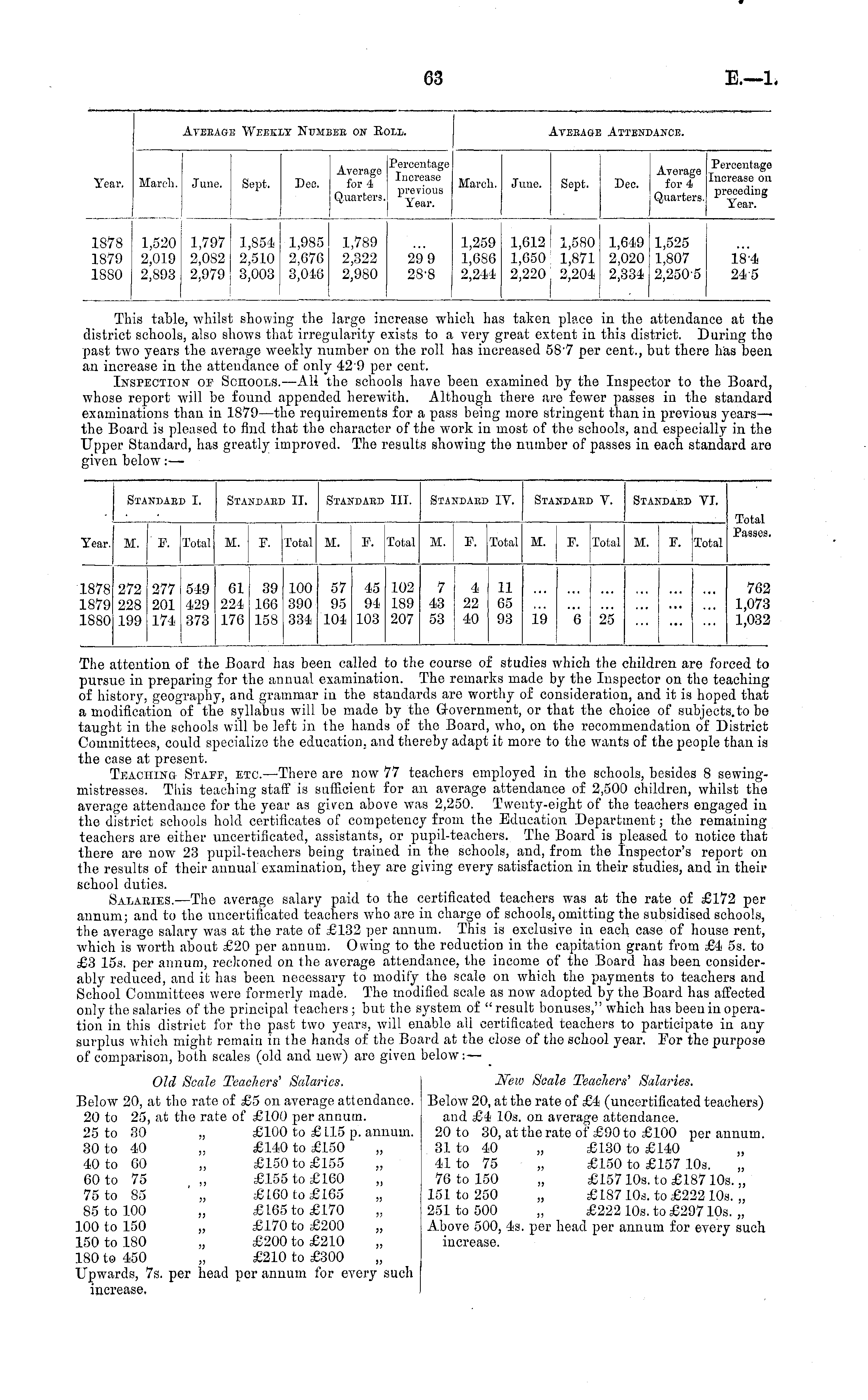 Averag: Week: ,y Nun: iek on Ron. Ayeeag: Attendance. Year. March. June. Sept, Dec. . Percentage Average T a for 4 Iucrease March. „ . previous Quarters. June. Sept. Average Dec. for 4 ' Quarters. Percentage Increase on preceding Year. 1878 1879 1880 1,520 2,019 2,893 1,797 2,082 2,979 1,854 2,510 3,003 1,985 2,676 3,016 1,789 2,322 2,980 29 9 28-8 1,259 1,686 2,244 1,612 ! 1,580 1,650 1,871 2,220 2,204 1,649 1,525 2,020 1,807 2,334 2,2505 18'4 245