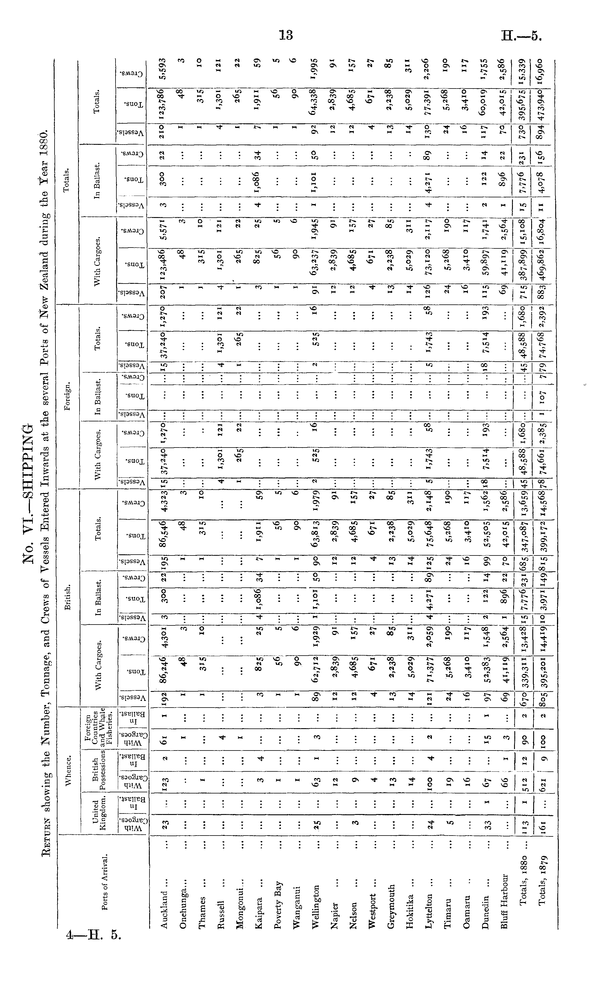 No. VI.—SHIPPING Return showing the Number, Tonnage, and Crews of Vessels Entered Inwards at the several Ports of New Zealand during the Year 1880.