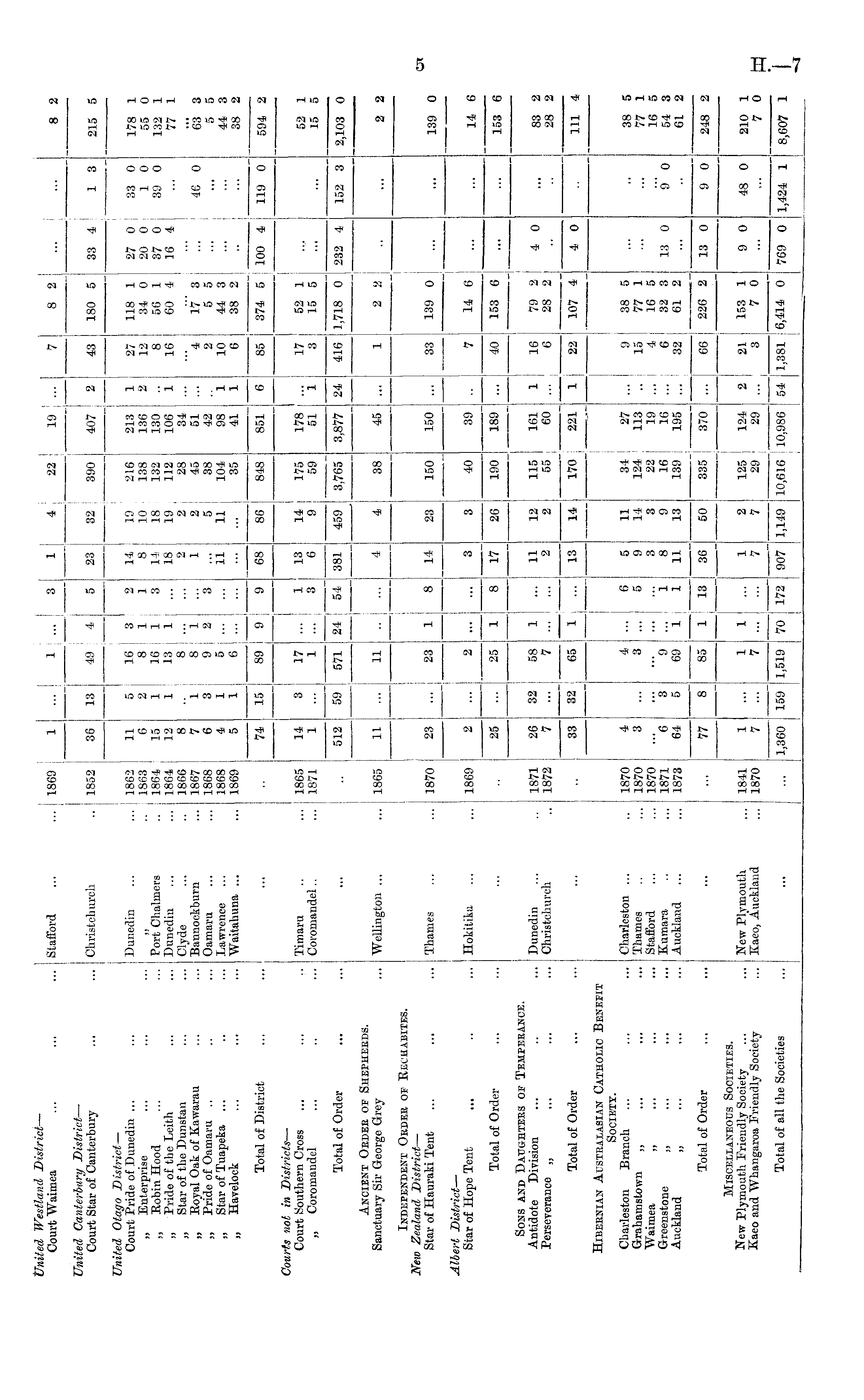 United Westland District — Court Waimea Stafford 1 1 ... 1869 1 ... J 3 1 4 , 22 19 ; 7 80 8 2 ... United Canterbury District — Court Star of Canterbury Clii'istcliurch Dunedin Port Chalmers Dunedin Clyde Bannockburn Oamara Lawrence Waitahuna ... . .. 1852 ... j 1862 .. j 1863 .. 1864 ... 1864 .. 1866 ... 1867 ... 1868 1868 ... 1869 36 13 49 : ! 4 5 4 1 i 23 32 390 407 2 43 180 5 i 33 4 1 3 215 5 United Otago District — Court Pride of Dunedin ... „ Enterprise ,, Robin Hood „ -Pride of the Leith „ Star of the Dunstan „ Royal Oak of Kawarau ,, Pride of Oaunaru .. „ Star of Tuapeka ... „ Havelock . I • i I i 11 6 15 12 8 7 6 4 5 5 2 1 1 16 8 16 13 8 9 5 6 I 3 1 2 1 1 1 3 1 ... 14 8 14 18 2 1 10 18 19 2 2 5 11 216 138 132 112 28 45 38 104 35 213 136 130 106 34 51 42 98 41 1 2 1 27 12 8 16 118 1 34 0 56 1 60 4 27 0 J 20 0 37 0 i 16 4 33 0 1 0 39 0 178 1 55 0 132 1 77 1 1 i 3 1 1 I 2 3 ii 1 1 4 2 10 6 17 3 5 5 44 3 38 2 ; i 46 0 63 3 5 5 44 3 38 2 1 1 ... 1 ... Total of District 74 I IB i ; I 7 89 i I 9 ! 9 1 68 ■ 86 848 j 851 6 374 5 I .. j 85 100 4 119 0 594 2 Courts iwt in Districts — Court Southern Cross „ Coromandel i I I Timaru Coromandel.. ... 1865 ... 1871 14 1 3 17 1 i 1 3 13 6 14 9 175 59 178 51 i 17 3 52 1 15 5 52 1 15 5 Total of Order 512 59 \ ' 571 24 54 381 459 3,765 3,877 i 24 416 1,718 0 232 4 152 3 2,103 0 Ancient Okdeb op Shepiieeds. Sanctuary Sir George Grey ■ I I 1 ! i ; Wellington ... ... 1865 11 11 4 4 38 45 1 2 2 2 2 Independent Obdeb or Kecuabites. New Zealand District —- Star of Hauraki Tent i Thames ... ]870 23 23 1 8 14 23 150 150 33 1870 139 0 139 0 Albert District — Star of Hope Tent Hokitika ... 1869 1869 2 2 3 3 i 40 39 j 14 6 14 6 Total of Order 25 25 I i 1 8 1 17 j 26 190 I 189 I " I 40 153 6 153 6 Sons and Dattghtees oe Tempebance. Antidote Division Perseverance „ Dunedin Christcliurch .. 1871 J .. 1872 j 1871 1872 26 7 32 58 7 11 2 12 2 115 55 ! 161 60 1 16 6 79 2 28 2 4 0 83 2 28 2 ... ! ... I Total of Order .. i 33 32 I 65 1 1 13 14 170 J 1 I 221 1 22 107 4 4 0 111 4 HiBEBNiAN Australasian Catholic Benefit Society. Charleston Branch G-rahamstown ,, Waimea „ Greenstone ,, Auckland „ 1 . Charleston ... Thames Stafford Kumara Auckland .. 1870 ... 1870 ... 1870 ... 1871 ... 1873 4 3 4 3 I 11 14 3 9 13 34 124 22 16 139 1870 1870 1870 1871 1873 6 5 5 9 3 8 11 27 113 19 16 195 9 15 4 6 32 38 5 77 1 16 5 32 3 61 2 38 5 77 1 16 5 54 3 61 2 ... "e 64 "3 5 "*9 69 1 1 1 13 0 9" 0 Total of Order 77 I 8 85 1 13 1 I 36 J 50 335 370 66 226 2 13 0 9 0 248 2 Miscellaneous Societies. New Plymouth Friendly Society Kaeo and Whangaroa Friendly Society New Plymouth Kaeo, Auckland ... 1841 ... 1870 1841 1870 1 7 1 7 1 ... I 1 7 2 7 125 124 29 29 2 j 21 3 153 1 7 0 9 0 48 0 210 1 7 0 Total of all the Societies 1 i 1,360 159 1,519 70 172 907 1,149 10,616 10,986 1 54 1,381 J 6,414 0 769 0 1,424 1 8,607 1