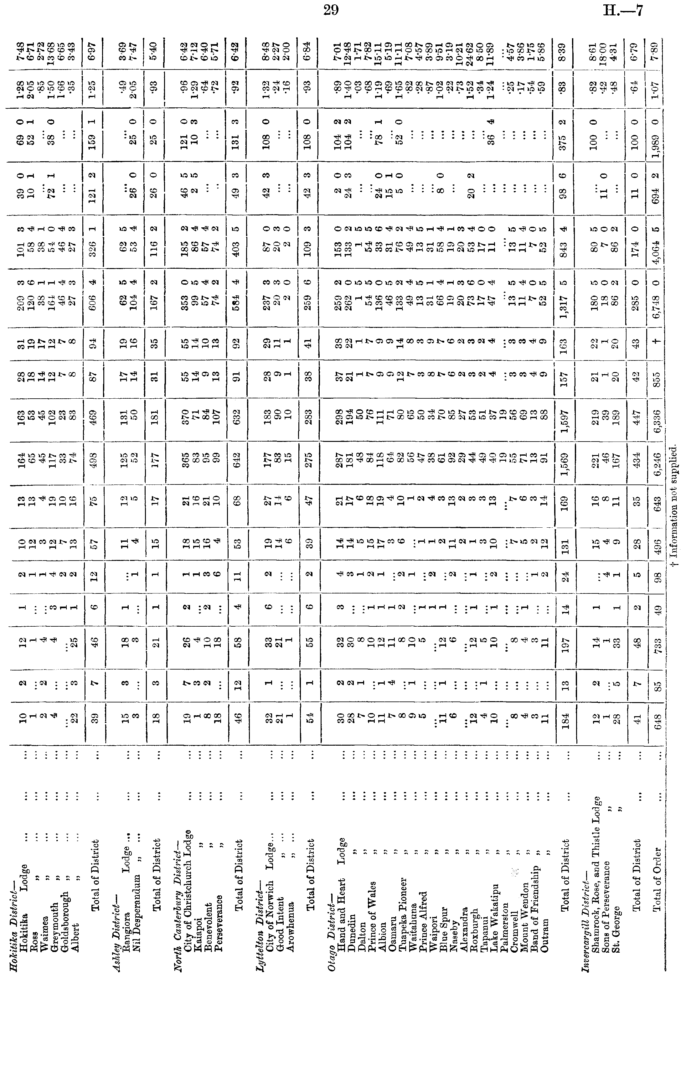 BoJcitika District — Hokitika Lodge Boss ,, Waimea „ Gfreymouth „ G-oldsborough „ Albert „ 10 1 2 4 2 "2 12 1 4 4 1 J I ». 2 1 1 4 2 2 10 12 3 12 7 13 13 13 4 16 164 65 45 117 33 74 163 53 45 102 23 83 28 18 14 12 7 8 31 19 17 12 7 8 209 3 120 6 38 1 164 1 40 4 27 3 101 3 58 4 38 1 54 0 46 4 27 3 39 0 10 1 69 0 52 1 1-28 2-05 •85 1-50 1-66 ■35 7'48 6-7.1 2-72 1368 665 3-43 3 1 1 72 1 38 0 "22 "3 1 "25 12 1 57 87 I i i i _j 606 4 I 326 1 121 2 ~ 6-97 Total of District 39 7 46 6 75 498 469 94 159 1 1-25 Ashley District — Kangiora Lodge ... Nil Desperandum „ i 15 3 3 18 3 • i 11 4 12 5 125 52 131 50 17 14 19 16 62 5 104 4 62 5 53 4 26" 0 25" 0 •49 2'05 3 69 7-47 ... 1 15 1 35 I 1 167 2 j 116 2 I 26 0 1 •93 540 Total of District 18 3 21 1 17 177 181 31 25 0 North Canterbury District — City of Christchureh Lodge Kaiapoi „ Benevolent ,, Perseverance „ i ! I 1 ! 1 1 I I 19 1 8 18 7 3 2 26 4 10 18 2 *2 1 1 3 6 18 15 16 4 21 16 21 10 365 83 95 99 370 71 84 107 55 14 9 13 55 14 10 13 353 0 99 5 57 4 74 2 185 2 86 4 57 4 74 2 46 5 2 5 121 0 10 3 •96 1-29 •64 •72 642 7-12 640 571 ... ! Total of District 46 j 12 J 58 1 [ 4 11 91 92 584 4 403 5 49 3 131 3 •92 6-42 53 6S 642 632 Zyttelton District — City of Norwich Lodge... Good Intent „ Arowhenua „ ... I I I I 32 21 1 1 33 21 1 6 2 19 14 6 27 11 6 177 83 15 183 90 10 28 9 1 29 11 1 237 3 20 3 2 0 I 87 0 20 3 2 0 42 3 108 0 1-32 •24 •16 8-48 2-27 2-00 ... Total of District I 6 2 39 38 41 259 6 109 3 42 3 108 0 •93 6-84 54 1 55 47 275 283 Otago District— Hand and Heart Lodge Dunedin „ ... Dalton ,, Prince of Wales „ ... Albion „ Oamaru ,, ... Tuapeka Pioneer „ Waitahuna „ Prince Alfred „ Waipori „ ... Blue Spur „ Naseby „ Alexandra „ Roxburgh ,, ... Tapanui „ Lake Wakatipu „ Palmerston ,, Cromwell ». „ Mount Wendon ,, ... Band of Friendship ,, Outram ,, 1 i \ ! i 1 i 30 28 7 10 11 7 8 9 5 2 2 1 32 30 8 10 12 11 8 10 5 8 4 3 1 2 1 14 14 5 15 17 3 6 21 17 6 18 19 4 10 1 2 4 3 13 2 3 3 13 287 181 48 84 118 64 82 56 47 38 61 92 29 44 49 40 19 55 71 13 91 298 194 50 76 111 71 80 65 50 34 70 85 27 53 51 37 19 56 69 13 88 37 21 1 7 9 9 12 7 3 8 7 6 2 3 2 4 38 22 1 7 9 9 14 8 3 9 7 6 2 3 2 4 259 2 262 0 1 5 54 5 136 0 46 5 133 2 49 4 13 5 31 1 66 4 19 1 20 3 73 6 17 0 47 4 153 0 133 2 1 5 54 5 33 6 31 4 76 2 49 4 13 5 31 1 58 4 19 1 20 3 53 4 17 0 11 0 2 0 24 3 104 2 104 2 ■89 1-40 •03 ■68 119 •69 1-65 •82 •28 •87 1-02 •22 •73 1-52 •34 1-24 701 12-48 1-71 7-82 1511 519 11-11 7-08 4-57 389 951 3-19 10-21 24 62 850 11-89 i 4 1 1 1 2 24 0 15 1 5 0 78" 1 2 1 52" 0 i 1 1 1 1 1 2 11 2 1 3 10 ... I "2 8" 0 "il 6 i 12 6 "2 12 4 10 12 5 10 "i 1 20 2 I 1 " I "i 2 36" 4 ... "i 8 4 3 11 ... ... 8 4 3 11 ... 1 "i 2 5 12 6 3 14 i 3 3 4 9 1 3 4 9 13 5 11 4 7 0 52 5 13 5 11 4 7 0 52 5 ... •25 ■17 •54 •59 4-57 386 1-75 5-86 ... Total of District 184 j 197 1 14 I 24 '1 131 I 169 1,569 1,597 157 163 1,317 5 843 4 I 98 6 1 375 2 1 i •83 839 13 , Invercargill District — Shamrock, Rose, and Thistle Lodge Sons of Perseverance ,, St. George „ I r I 12 1 28 2 "5 14 33 1 1 15 4 9 16 8 11 221 46 167 219 39 189 21 20 22 1 20 180 5 18 0 86 2 80 5 7 0 86 2 11 0 100 0 •82 ■42 ■48 8-61 1800 431 1 Total of District 41 7 48 5 1 28 42 43 285 0 174 0 6-79 2 35 434 447 11 0 100 0 ■64 Total of Order 648 85 733 49 1 98 I I 1 496 I t 6,748 0 4,064 5 694 2 1,989 0 1-07 7-89 643 6,246 6,336 855 t Information not supplied.