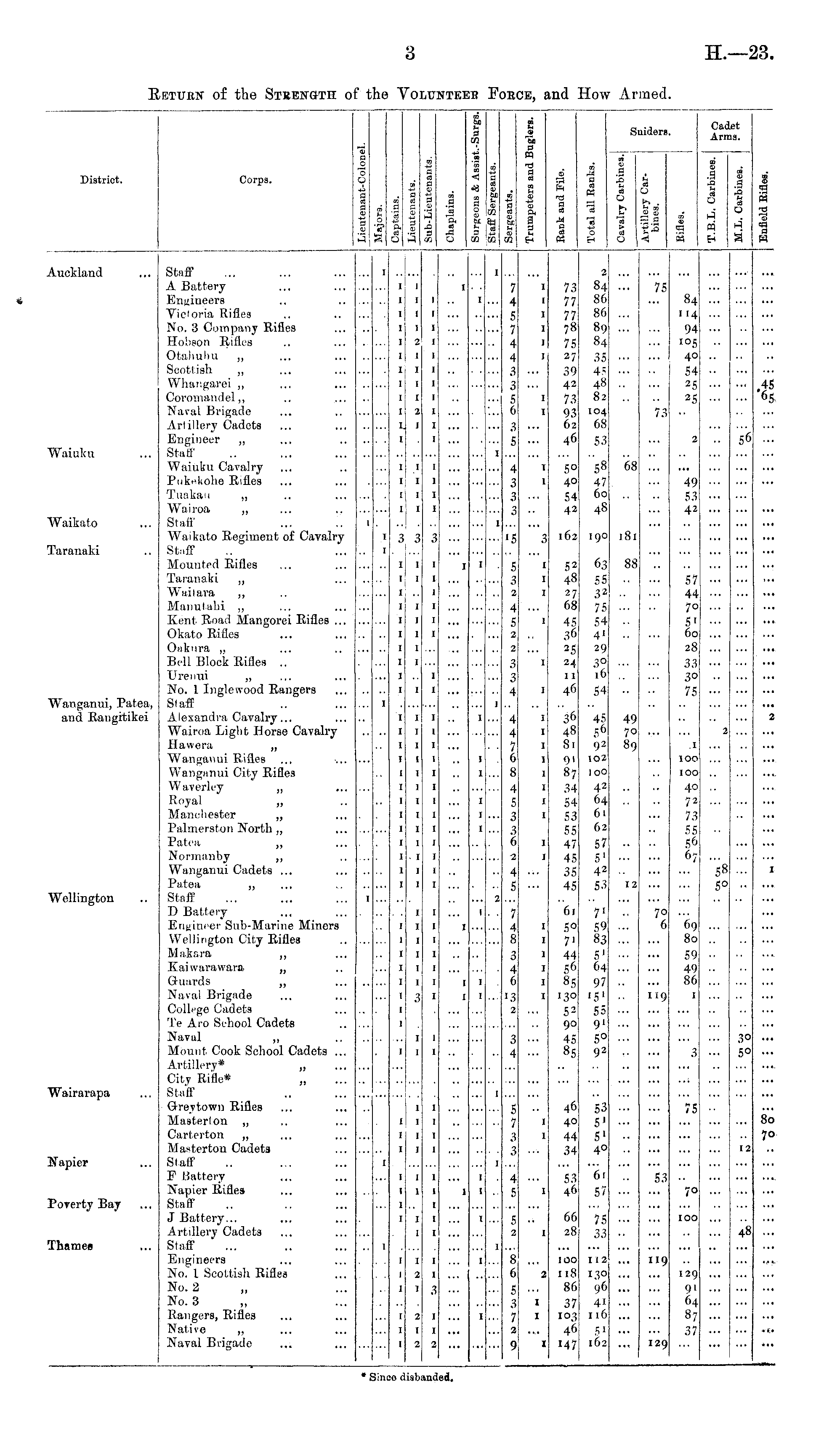 District. Corps. I O fl q § t 1 -I a x 6JD a tn so <! "c S g 6£ SB 3 1 CO CQ [ 3 0 m i ! h I ID IH IB H <s E g a 3 1 Is s is Suidera. Cadet Arms. 2 ■? pi O § 1 d "r, "o. si O 3 ,1 I K 8 uckland V"aiul<u Vaiiato ranganui, Patea, and Rangitikei Staff A Battery Engineers Victoria Rifles No. 3 Company Rifles Hobson Rifles Otahuhu ,, Scottish „ Whangarei ,, Coromandel,, Naval Brigade Artillery Cadets Engineer „ Stall' Waiultu Cavalry PukHkohe Rifles ... Tua&au Wairoa ,, Staff Waikato Regiment of Cavalry Stuff Mounted Rifles Taranaki „ Waitara ,, Manulahi ,, Kent Road Mangorei Rifles ... Okato Rifles Oakura ,, Bell Block Rifles .. Urenui „ No. I Ingle wood Rangers Staff Alexandra Cavalry... Wairoa Light Horse Cavalry Han era „ Wanganiii Rifles Wanganui City Rifles Waverley ,, Royal Manchester ,, Palmerston North „ Patea „ Norman by „ Wanganui Cadets ... Patea ,, Staff D Battery Engineer Sub-Marine Miners Wellington City Rifles Miiknra ,, Kaiwarawara „ Guards ,, Naval Brigade Collfge Cadets Te Aro School Cadets Naval „ Mount, Cook School Cadets ... Artillery* „ City Rifle* „ Staff Greytown Rifles Master! on „ Carterton „ Masterton Cadets Staff F Battery Napier Rifles Staff J Battery... Artillery Cadets Staff Engineers No. 1 Scottish Rifles No. 2 No. 3 Rangers, Rifles Native „ Naval Brigade 1 1 1 1 1 1 1 1 1 i 1 1 1 3 1 1 1 1 1 1 1 1 1 1 1 ' I I > I I 1 1 1 1 1 1 1 j 1 1 1 1 2 j 1 1 1 1 1 1 1 I I I I I 1 1 I I I I I I I 1 1 1 1 1 1 1 3 1 1 1 1 1 1 1 1 I 1 l 7 4 C 7 4 4 I 4 4 6 8 4 S 3 i E 4 1 5 4 2 4 1 1 1 1 1 1 I I I I I I 1 1 1 1 1 1 1 1 I 73 77 77 78 75 27 39 42 II 62 46 5° 40 54 42 162 5 2 48 27 68 45 36 25 24 11 46 J6 48 81 91 87 34 54 53 55 47 45 35 45 84 86 86 89 84 35 45 48 82 104 68 53 58 47 60 48 190 6.3 55 3 2 75 54 4 1 29 3° 16 54 45 56 9 2 102 100 42 64 61 62 5 7 5' 42 53 18 88 08 49 8i 75 73 84 I [4 94 IO5 40 54 2 5 25 "40 53 42 57 44 70 5' 60 28 33 3° 75 1 100 100 40 72 73 55 56 67 2 56 45 2 r 1 1 1 1 1 1 1 1 j -2 1 I 1 1 i 1 4 S 12 "58 5° 1 1 'ellington 1 2 7 4 8 "61 70 6 1 1 1 r 1 1 1 1 1 1 1 1 1 1 1 1 1 1 1 3 4 6 1 1 1 1 1 5° 7 1 44 56 8.5 130 52 90 45 85 7 1 59 83 5' 64 97 '5' 55 9 1 5° 92 119 "69 80 59 49 86 1 1 1 13 2 1 1 1 1 3 4 1 1 1 1 3 3° 5° Vairarapa I S 7 3 3 46 40 44 34 53 5 1 5' 40 75 1 1 1 1 1 I 1 80 70 fapier 1 1 I 1 12 1 1 I I I 4 5 53 46 61 57 53 1 1 7° 'overty Bay 1 I 1 1 1 1 I 5 2 66 28 75 33 100 48 'hamee 1 1 i I 1 '2 100 118 86 37 103 46! 147 112 130 96 41 116 119 129 9' 64 87 37 2 I 3 2 I s 3 7 2 9 I I r 2 2 1 1 1 I 51 162 129