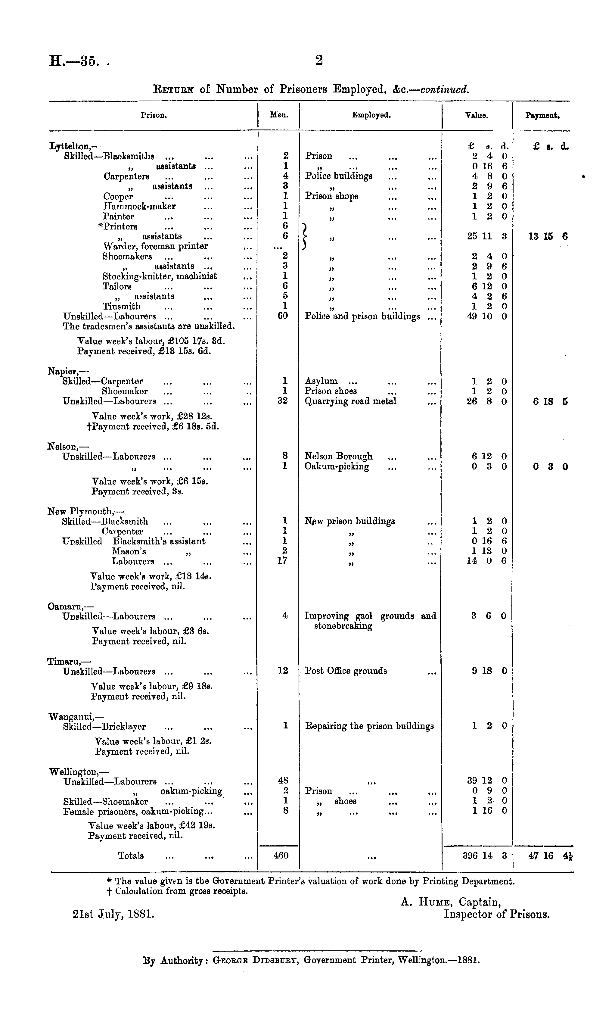 A. Hume, Captain, 21st July, 1881. Inspector of Prisons.