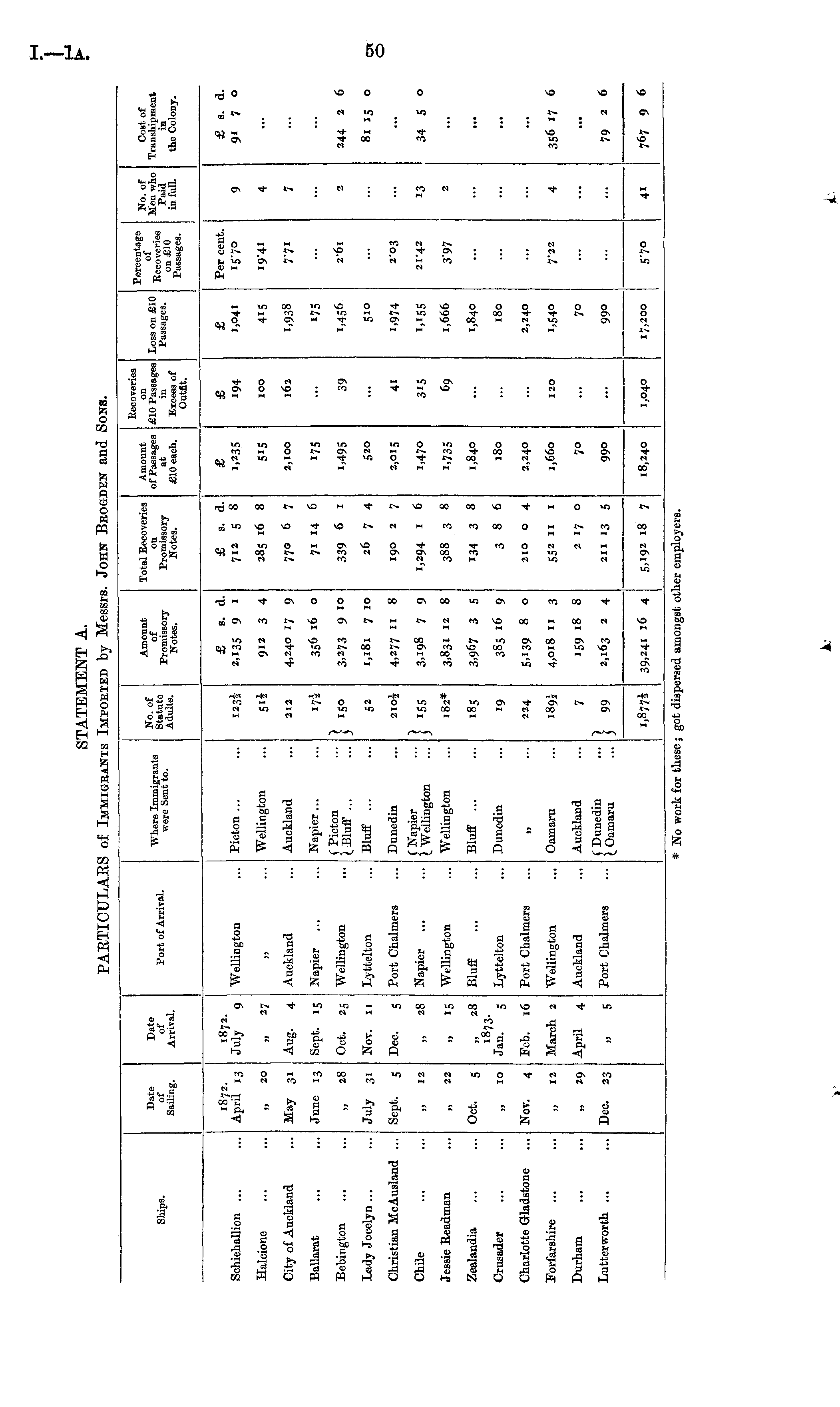 STATEMENT A. PARTICULARS of Immigrants Imported by Messrs. John Brogden and Sons.