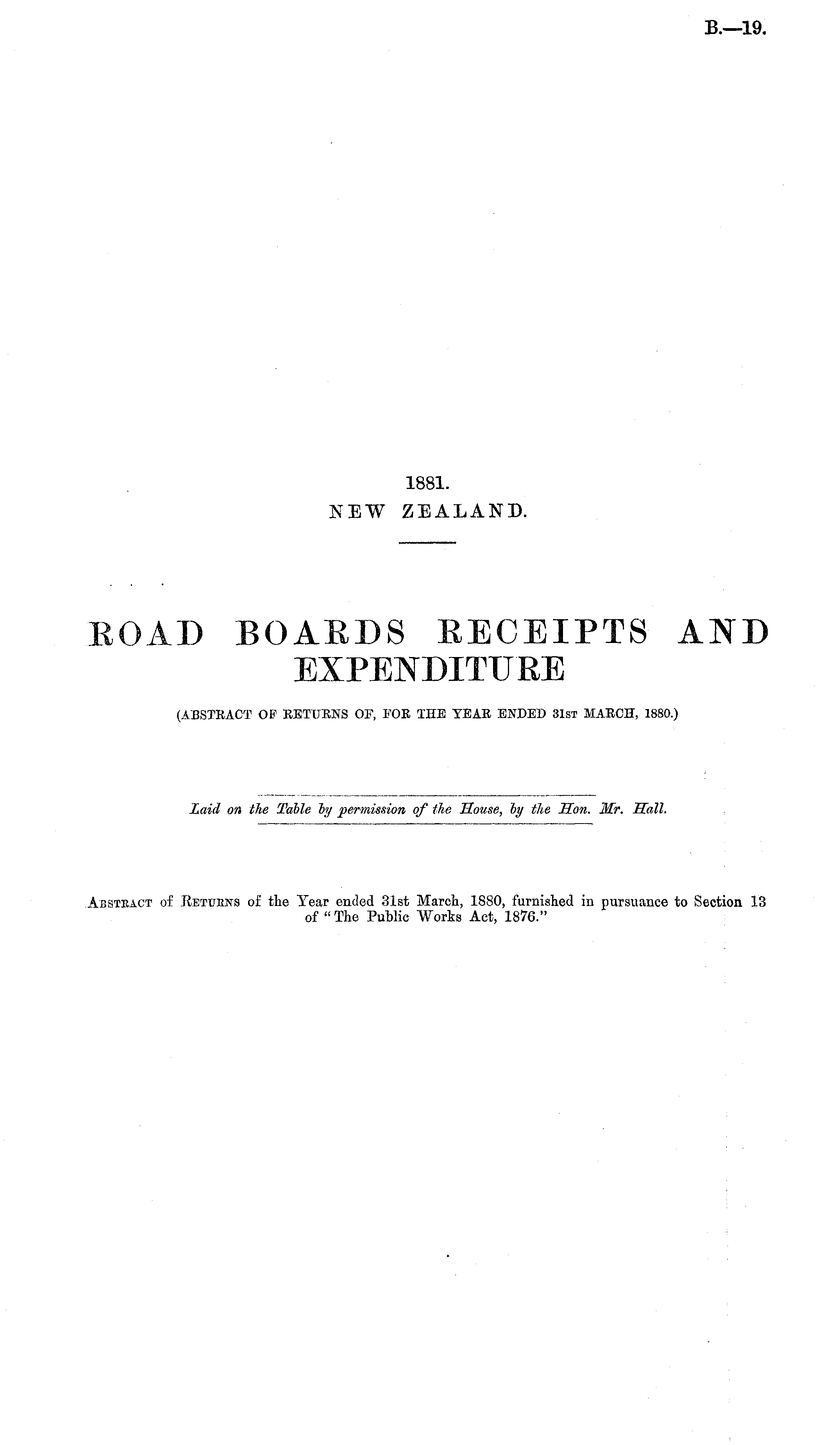 ROAD BOARDS RECEIPTS AND EXPENDITURE (ABSTRACT OF RETURNS OF, FOR THE YEAR ENDED 31st MARCH, 1880.)