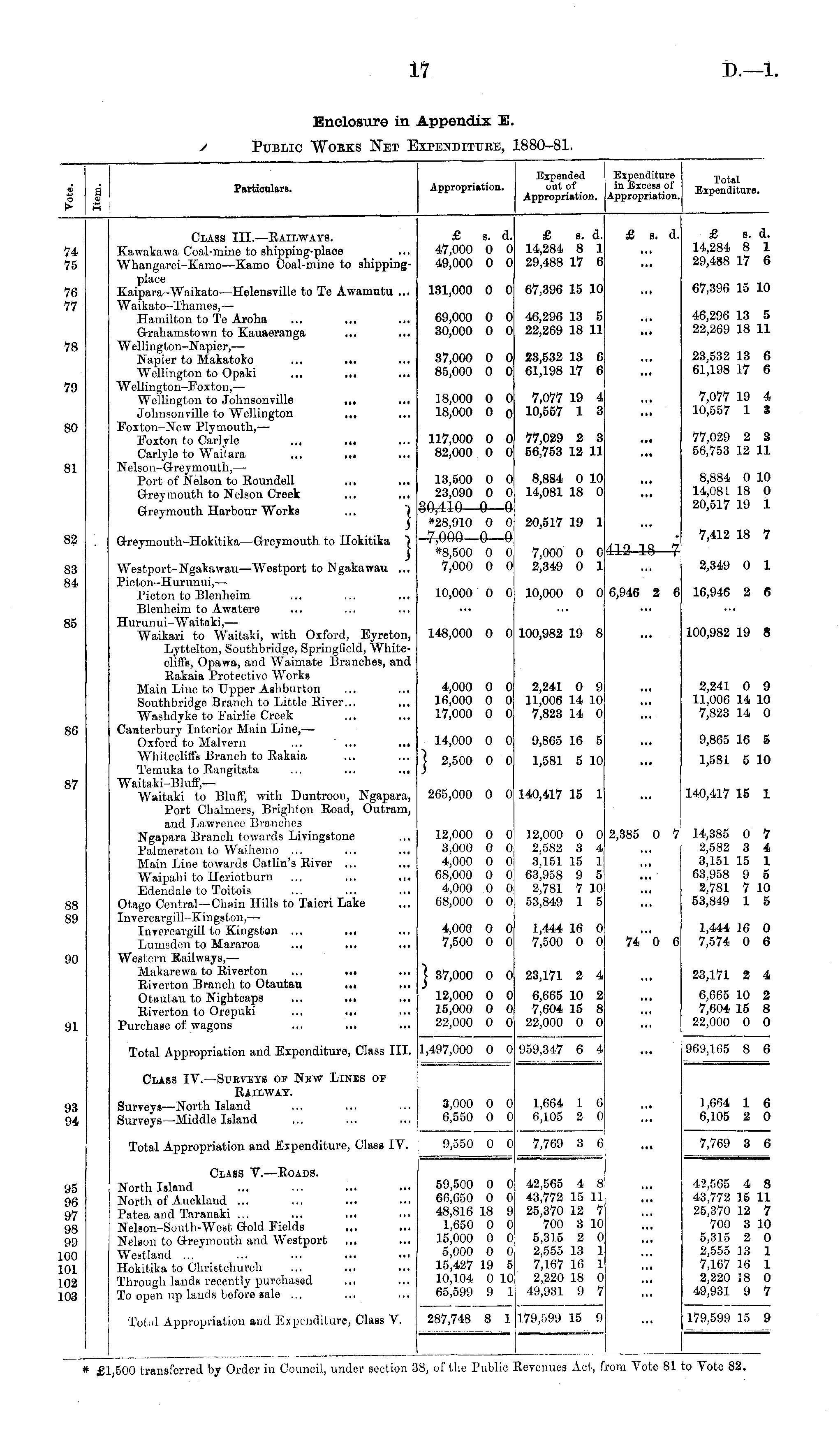 Enclosure in Appendix E. Public Works Net Expenditure, 1880-81.