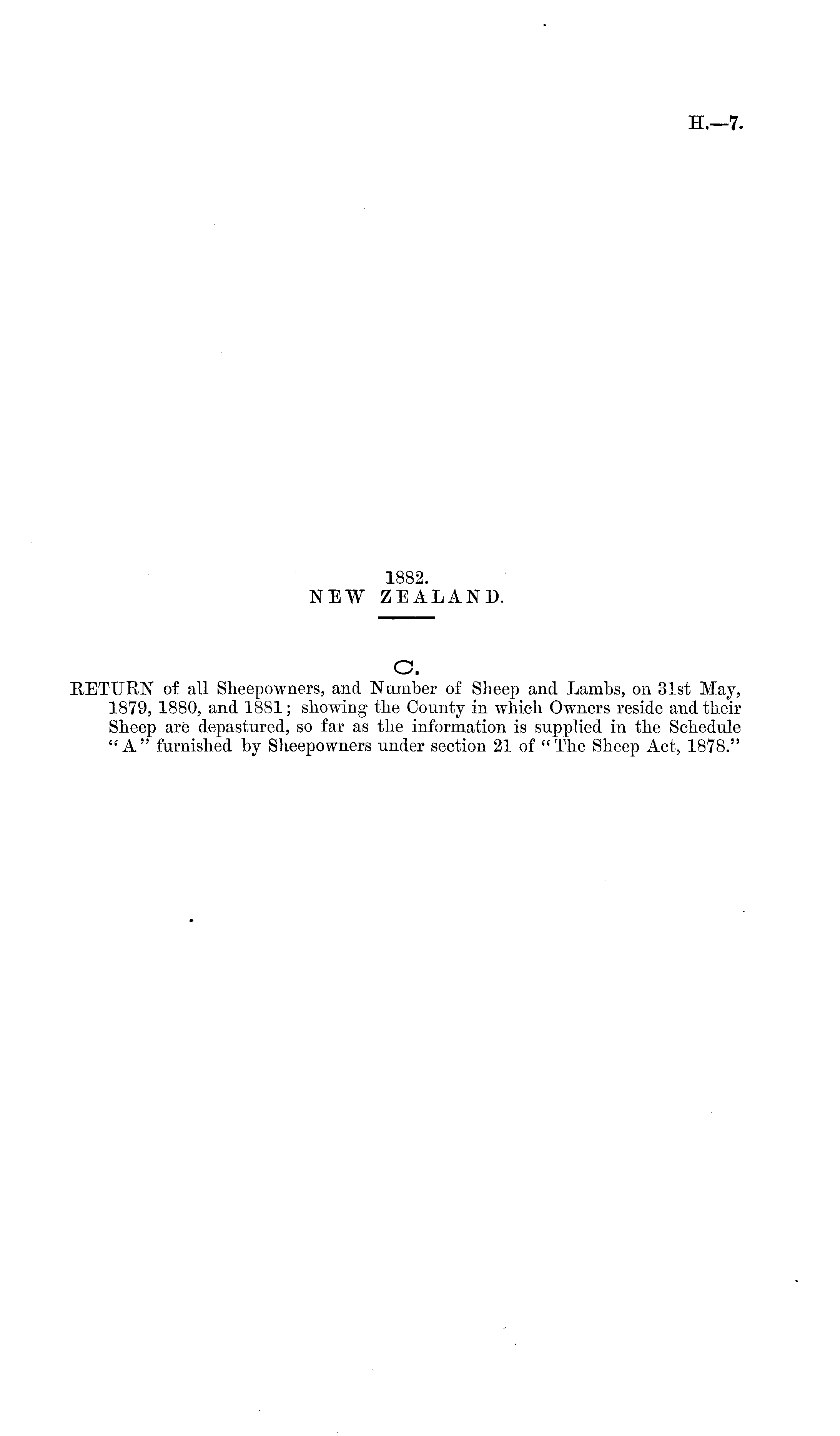 o. RETURN of all Sheepowners, and Number of Sheep and Lambs, on 81st May, 1879, 1880, and 1881; showing the County in which Owners reside and their Sheep are depastured, so far as the information is supplied in the Schedule "A" furnished by Sheepowners under section 21 of "The Sheep Act, 1878."