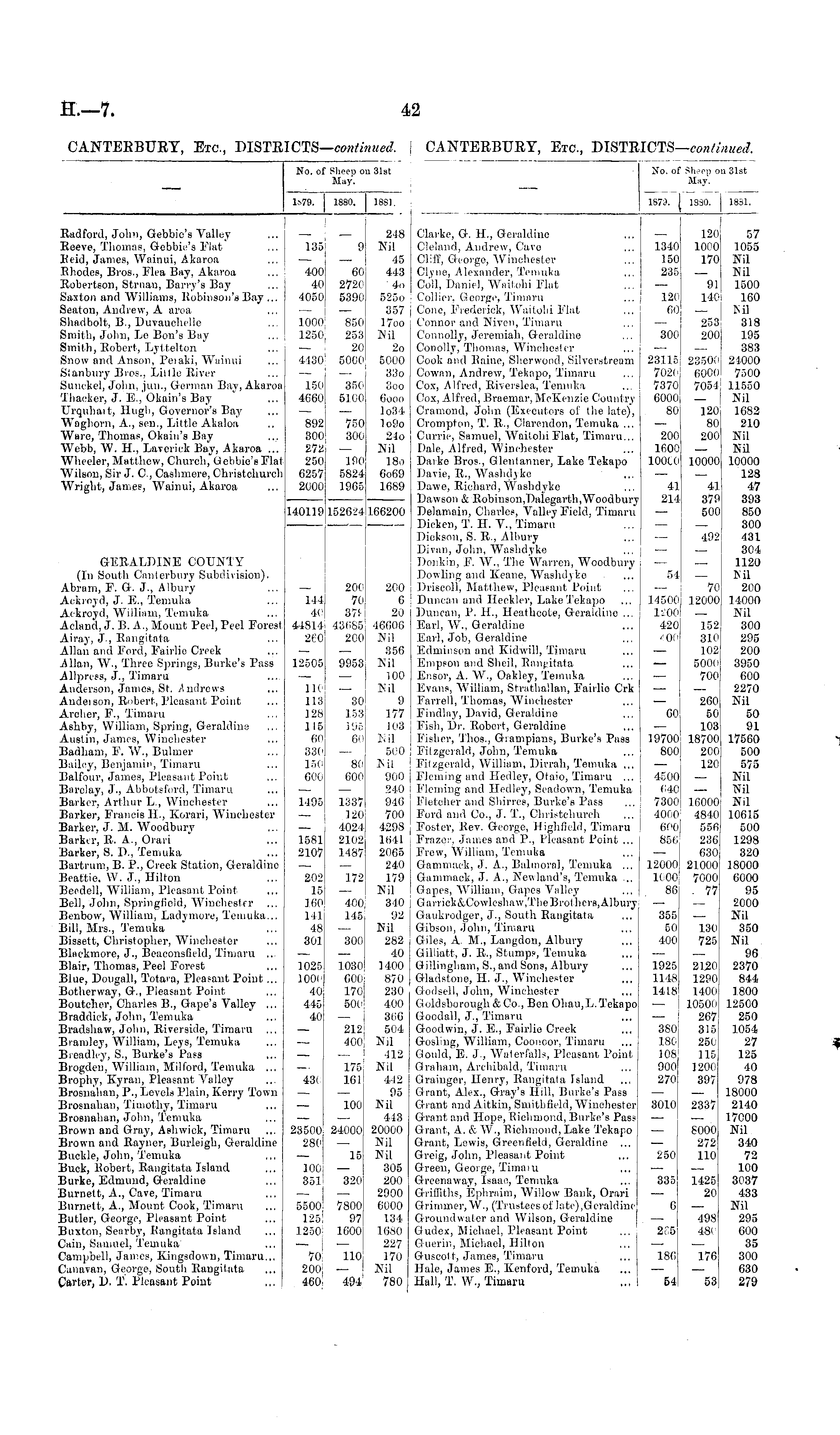 No. of Sh'>pp on 31st Mat1S7.». I 1330. I 1831. Clarke, G\ H., Geruldinc Cleland, Andrew, Cave Cliff, George, Winchester Clyne, Alexander, Temuka Coll, Daniel, Wailohi Flat Collier, George, Timnru Cone, Frederick, Wailohi Flat Connor and Niven, Timaru Connolly, Jeremiah, Geraldine Conolly, Thomas, Winchester Coot and linine, Sherwood, SjlYorstream Cowan, Andrew, Tekapo, Timaru ... i Cox, Alfred, Kherslea, Temukn Cox, Alfred, Braemar, Melvenzie Country Cramond, John (Exeoufcoi'8 of the late), Crompton, T. E., Clarendon, Temuka ... Currie, Samuel] AVailohi Flat, Timaru... Dale, Alfred, Winchester Darke Bros., Glenlanner, Lake Tekapo Davie, II., Washdyke Dawe, Richard, Wasbdrke Dawson & Kobinson,Dalegarth,Woodburv Dslamain, Charles, Valley Field, Timaru Dicken, T. H. V., Timaru Dickson, S. B, All.ury Divan, John, Washdyke Donkin, I1'. W., Tlie Warren, Woodbnry Dowling and ICeane, Waslnl\ke Drisooll, Matthew, Pleasant Point Duncan and Heckler, Lake Tekapo Duncan, P. H., Heathcole, Geraldino ... Earl, W., Geraldine Earl, Job, Geraldine Edmirison and Kidwill, Timaru Empfon and Shell, Eanpitata Ei:sor, A. W., Oakley, Temuka Evans, William, Str&tballan, Faitlie Crk Farrell, Thomas, Winchester Findliiy, David, Geraldine Fish, Dr. Robert, Geraldine Fisher, 'J'hos., G:ampians, Burke's Puss Fiizgerald, John, Temuka Fitzgerald, William, Dirrah, Temuka ... Fleming and Hcdley, Oraio, Timaru ... Fleming and Hedley, Scadown, Temuka Fletcher and Shirrcs, Burke's Pass Ford and Co., J. I., ClrVistchurch Foster, Eev. George, Highfield, Timaru Frazc:', James and P., Pleasant Point ... Frew, William, Temuka ... i Gamnuick, J. A., Balmoral, Temuka Gammack, J. A., jXewland's, Temuka .. Gapes, William, Gapes Valley Garrick&Cowleshaw.The Brothers, Albury Gaukrodger, J., South Eaugilata Gibson, John, Timaru ... I Giles, A. M., Langdon, Albury ... i Giliiatt, J. E., Stump?, Temuka ... j Gillingham, S., and Sons, Alhury Gladstone, 11. J., Winchester God sell, John, Winchester Goldeborough&Co., Ben Oliau,L.Tekapo Goodall, J., Timaru Goodwin, J. E., Fairlie Creek Gosling, William, Coonoor, Timnru Gould, E. J., Waterfalls, Pleasant Point Graham, Archibald, Timaru ... l Grainger, Henry, Eangitata Island Grant, Alex., Gray's 11 ill, Burko's Pass j Grant and Aitkin, Smithfield, Winchester| Grant and Hope, Riohmond, Burke's Pass Grant, A. & W., Eiohmond, Lake Tekapo Grant, Lewis, Greenfield, Geraldine ... Greig, John, Pleasant Point Green, George, Timaui Greenaway, Isaac, Temuka Griffiths, Ephrnim, Willow Bank, Orari Grimmer, W., (Trustees of late), Goraldine Groundwator and Wilson, Geraldine Gudex, Michael, Pleasant Point ... i Guerin, Michael, Hilton Guscolt, James, Timaru Hale, James E., Kenford, Temuka Hall, T. W., Timaru ,., i 1310 150 235 120 60 I 800 23115 7O2OJ 7370 6000 80 200 1600 10OC0 41 214 54 14500 1200 420 '00 co! 10700 800 120 1000 170 91 140 253 1 2001 235O0J 6000 1 7054 120 80 200 10000 41 379 500 492, 70 12000! 152 8.W 102; 5000 700: 260 50 103 18700 1 200. 12C 1 57 1055 Nil Nil 1500 160 Ml 318 195 383 21000 7500 11550 Nil 1682 210 Nil Nil 10000 128 47 393 850 300 431 304 1120 Ml 200 14000 Nil 300 295 200 3950 600 2270 Nil 50 91 17560 500 575 Nil Nil Nil 10(515 500 1298 320 18000 (5000 95 2000 Nil 350 Nil . 9G 2370 844 1800 12500 250 1054 27 125 40 978 18000 2140 17000 Nil 340 72 100 3037 433 Nil 295 600 35 300 630 270 4500 B40 7300 4000' 600J 886 16000; 4840 556j 236[ 630| 21000 7000 77' 12000! 1C00; 861 355 50 400 130 725 1925 1118' 1418 1 2120 1290 1400i 1050(i 267 315 250 115 ] 200 397 380 1 180 108: 900 270 3010 _ j 2337 8000 272 110 250 335 1425 20 6 498 48i ; 265 18C ~176 ! 53 54