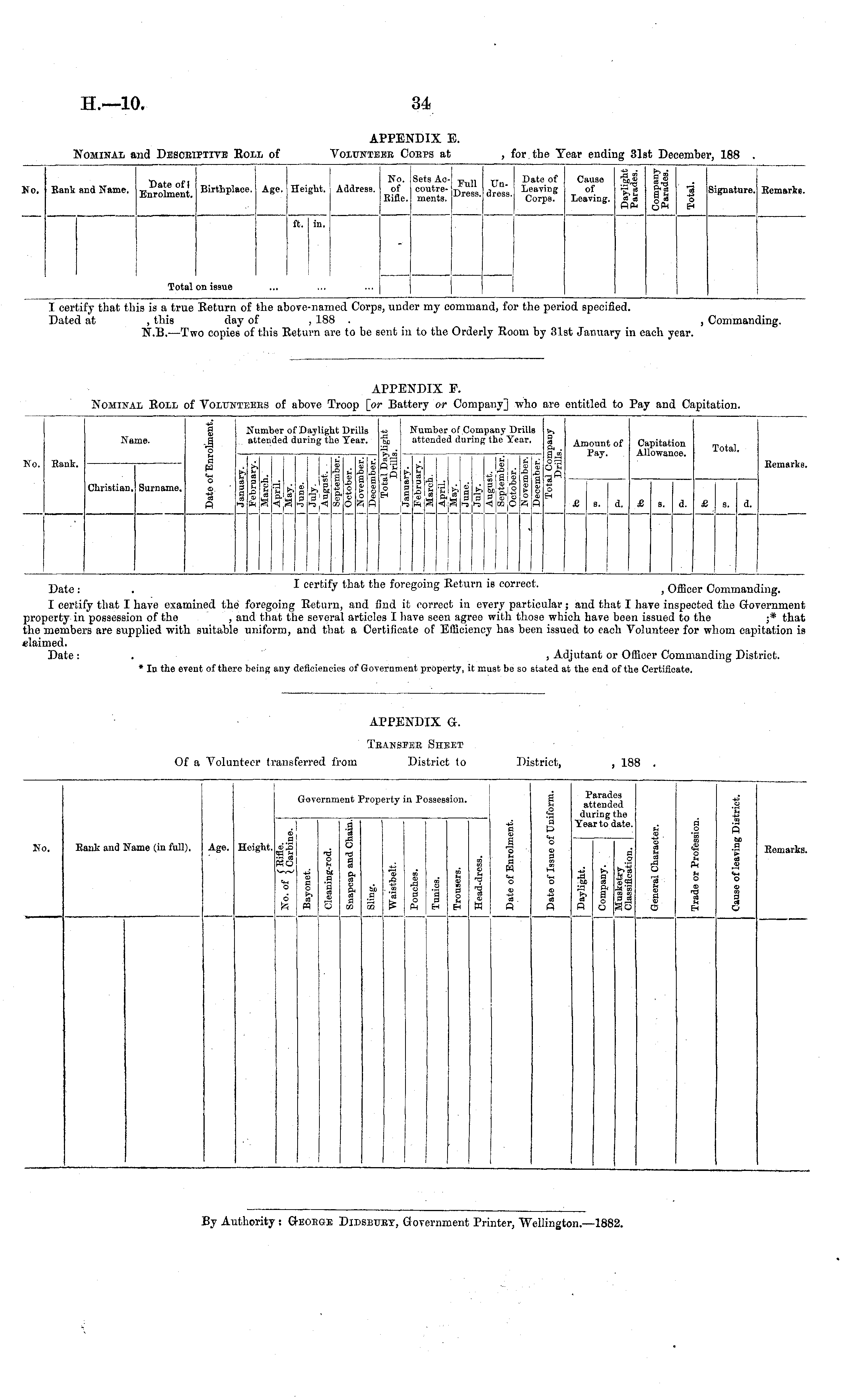 APPENDIX F. Nominal Roll of Volunteers of above Troop [or Battery or Company] who are entitled to Pay and Capitation.