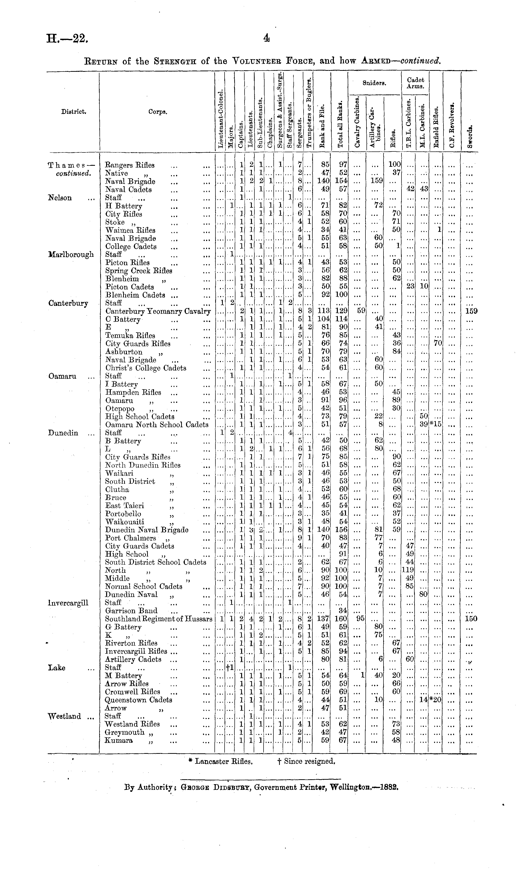 District, Corps. a o _ o p (S a p - 3 p a _ H^> P _ r% rO 0 □O it. r> d p o _ be u a m P « 9 CO bl «a CO (h Id CP o rH a> >^- rH fl rH E-l 4) •_ ft p Ph _ o H a _ D h. O Iniders. _ u r-> . „ S Q to < rA Cadet Arms. p _ * .3 3 -0 o _ 3 °. EH a _ m ■__) d > CU M ft Q U o '5* a '3 p «S a - r-H .9 '7* 'pice -_ o a <3 Ol be Lh _ <n U \ CO Thames — continued. Rangers Rifles Native „ Naval Brigade Naval Cadets Staff H Battery City Rifles Stoke ,, Waimea Rifles Naval Brigade College Cadets Staff Picton Rifles Spring Creek Rifles Blenheim ,, Picton Cadets Blenheim Cadets ... Staff Canterbury Yeomanry Cavalry C Battery E Temuka Rifles City Guards Riiles Ashburton ,, Naval Brigade Christ's College Cadets Staff I Battery Hampden Rifles Oamaru ,, Otepopo ,, High School Cadets Oamaru North School Cadets Staff B Battery L „ ' City Guards Rifles North Dunedin Rifles Waikari ,, South District ,, Clutha ,, Bruce ,, East Taieri ,, Portobello ,, Waikouaiti ,, Dunedin Naval Brigade Port Chalmers ,, City Guards Cadets High School ,, South District School Cadets North „ „ Middle „ „ Normal School Cadets Dunedin Naval „ Staff Garrison Band Southland Regiment of Hussars G Battery K „ ■ Riverton Rifles Invercargill Rifles ... Artillery Cadets Staff M Battery Arrow Rifles Cromwell Rifles Queonstown Cadets Arrow ,, Staff Westland Riiles Greymouth „ Kumara „ l l l l l 2 1 2 1 1 l 1 7 2 8 6 85 47 140 49 97 52 154 57 159 100 37 42 -1-3 Nelson 1 i i 1 1 1 1 1 1 1 1 1 1 i l i l 6 6 4 71 58 52 34 55 51 82 70 60 41 63 58 "72 70 71 50 Marlborough l l i l l i i i 60 50 "i i 5 4 1 :i i 43 56 82 50 92 l l l i i 1 1 1 1 1 l i i i 1 4 3 3 3 5 53 62 88 55 100 50 50 62 Canterbury 23 10 i i 2 1 1 1 1 1 2 59 2 1 1 1 1 1 1 1 1 1 l l l l 8 5 4 5 5 5 6 4 3 I 2 113 104 81 76 66 70 53 54 129 114 90 85 74 79 63 61 40 41 ... 159 1 1 1 1 1 1 43 36 84 70 l i :i "i 60 60 i i Oamaru i i i 58 46 91 42 73 51 67 53 96 51 79 57 50 i i i i i i 1 1 1 1 1 1 1 1 5 4 3 5 4 3 45 89 30 i 22 8 50 39 "i 1 ■i *15 Dunedin 2 i i 1 2 1 1 1 1 1 1 1 1 1 3 1 1 "i 42 56 75 51 46 46 52 46 45 35 48 140 70 40 50 68 85 58 55 53 60 55 54 41 54 156 83 47 91 67 100 100 100 54 62 80 1 1 1 1 1 1 1 1 1 1 1 l l l l l l l "i i i i l l l 5 6 7 5 3 3 4 4 4 3 3 8 9 4 i i i l i 90 62 67 50 68 60 02 37 52 59 "i i ... . .. _■ 1 1 i i i i 81 77 7 6 6 10 7 7 7 1 1 1 1 1 1 1 1 1 1 i 2 1 1 1 2 6 5 7 5 62 90 92 90 46 47 49 44 119 49 85 ... 80 Invercargill i i 1 l 2 1 1 1 1 1 4 1 1 1 2 2 1 1 l 2 1 8 6 5 4 5 2 1 1 2 1 137 49 51 52 85 80 34 160 59 61 62 94 81 95 80 75 "67 67 150 1 1 Lake 6 60 t'i 1 1 1 1 1 i i i l l i 1 1 1 54 50 59 44 47 64 59 69 51 51 1 40 20 66 60 "i l l i i i 5 5 5 4 2 Westland ... "io hi *20 1 1 1 1 1 1 1 i i l "_ 2 5 i 53 42 59 62 47 67 73 58 48 i * Lam LStl >r Rifli >S, t Sh re; signed.