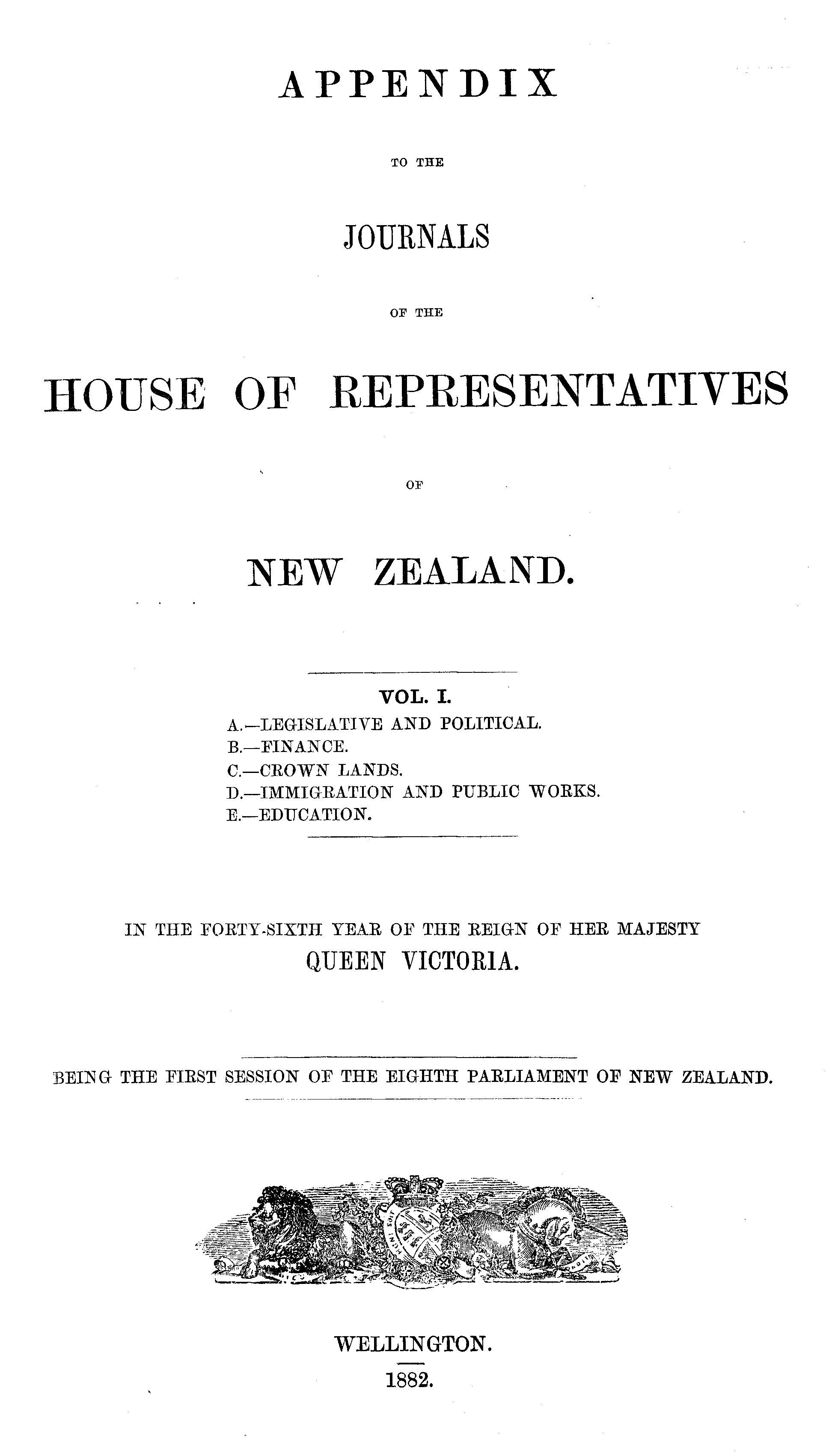 APPENDIX TO THE JOURNALS OF THE HOUSE OF REPRESENTATIVES OF NEW ZEALAND.
