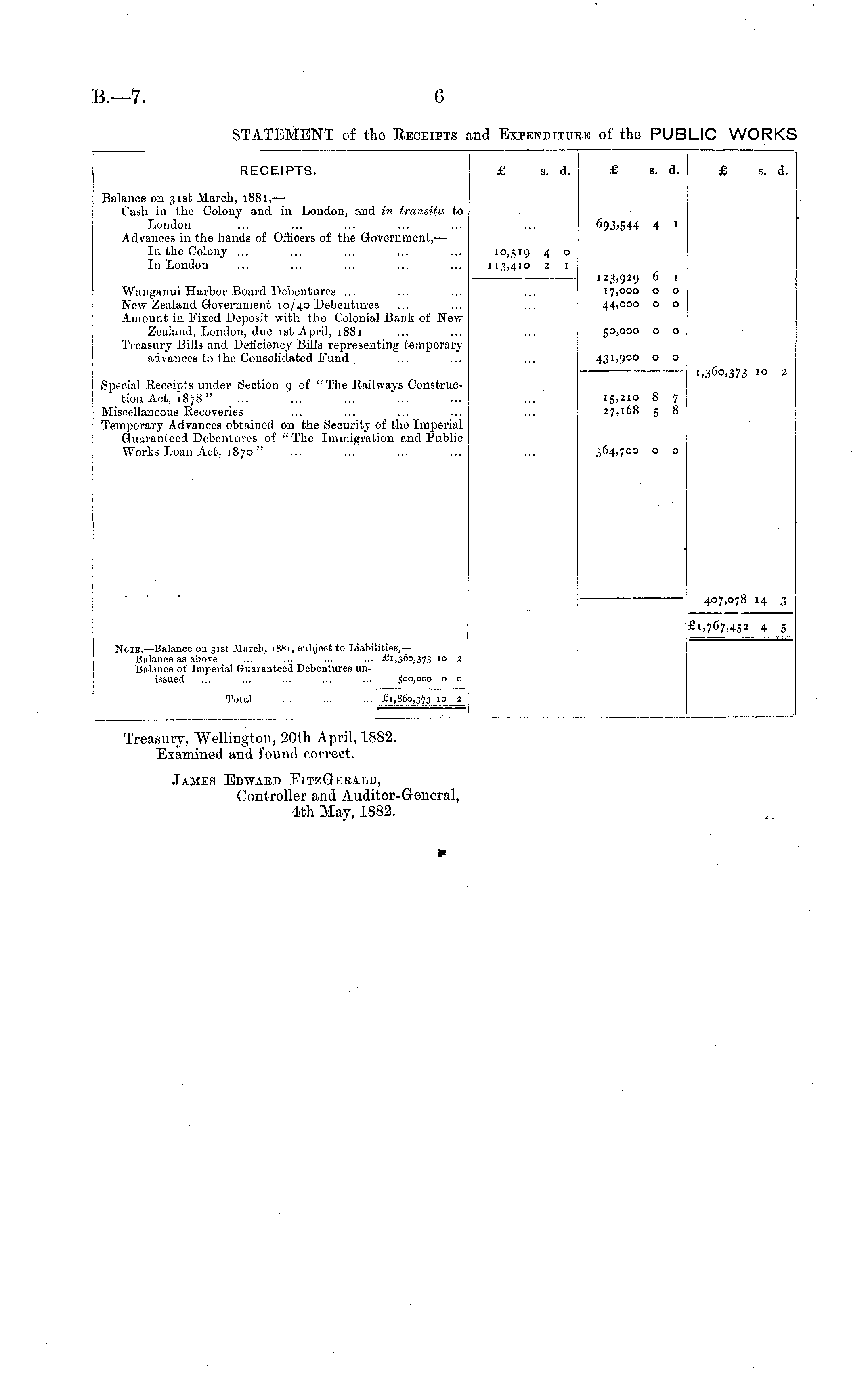 Treasury, Wellington, 20th April, 1882. Examined and found correct. James Edwaed FitzQ-ebald, Controller and Auditor-General, 4th May, 1882.