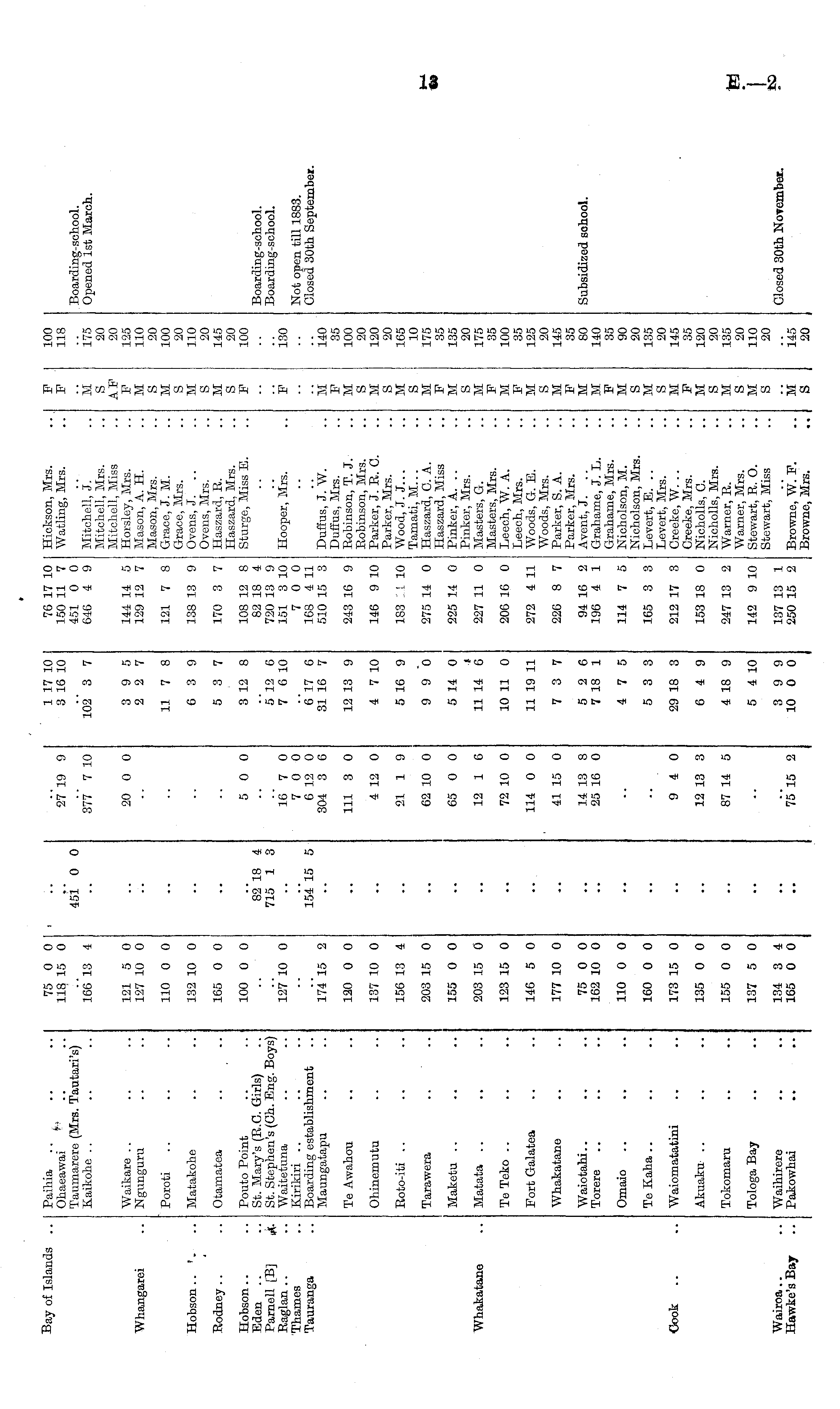 Bay of Islands .. Pailiia .. Ohaeawai Taumarere (Mrs. Tautari's) Kaikohe 75 0 0 118, 15 0 45l" 0 0 27' 19 9 1 17 10 3 16 10 76 17 10 150 11 7 451 0 0 646 4 9 Hiokson, Mrs. Watling, Mrs. F 100 118 Whangarei Waikare Ngunguru Poroti 166 13 4 121 5 0 127 10 0 110 0 0 377' 7 10 20 0 0 102 3 7 3 9 5 2 2 7 11 7 8 144 14 5 129 12 7 121 7 8 Mitchell, J. Mitchell, Mrs. Mitchell, Miss Horsley, Mrs. Mason, A. H. Mason, Mrs. Grace, J. M. Grace, Mrs. Ovens, J. Ovens, Mrs. Haszard, R. Haszard, Mrs. Sturge, Miss E. M S AP P M S M M M S P 175 20 20 125 110 20 100 20 110 20 145 20 100 Boarding-school. Opened 1st March. Hobson .. '. Matakohe 132 10 0 6 3 9 138 13 9 Rodney Otamatea 165 0 0 5 3 7 170 3 7 Hobson Eden Parnell [B] tf. Raglan Thames Tauranga Pouto Point St. Mary's (R.C. Girls) St. Stephen's (Ch. Eng. Boys) Waitetuna Kirikiri Boarding establishment Maungatapu 100 0 0 127 10 0 82 18 4 715 1 3 5 0 0 16 7 0 7 0 0 6 12 0 304 3 6 3 12 8 5 12 6 7 6 10 108 12 8 82 18 4 720 13 9 151 3 10 7 0 0 108 4 11 510 15 3 Hooper, Mrs. P 130 Boarding-school. Boarding-school. Not open till 1883. Closed 30th Septembei 174 15 2 154 15 5 6 17 6 31 16 7 Whakatano Te Awahou Ohinemutu Boto-iti Tarawera Maketu Matata Te Teko Fort Galatea 120 0 0 137 10 0 156 13 4 203 15 0 155 0 0 203 15 0 123 15 0 146 5 0 111 3 0 4 12 0 21 1 9 62 10 0 65 0 0 12 1 6 72 10 0 114 0 0 12 13 9 4 7 10 5 16 9 9 9 *0 5 14 0 11 14 6 10 11 0 11 19 11 243 16 9 146 9 10 183 : 1 10 275 14 0 225 14 0 227 11 0 206 16 0 272 4 11 Dufius, J. W. Dufms, Mrs. Robinson, T. J. Robinson, Mrs. Parker, J. R. G. Parker, Mrs. Wood, J. J... Tamati, M... Haszard, G. A. Haszard, Miss Pinker, A. .. Pinker, Mrs. Masters, G. Masters, Mrs. Leech, W. A. Leech, Mrs. Woods, G. E. Woods, Mrs. Parker, S. A. Parker, Mrs. Avent, J. Grahame, J. L. Grahame, Mrs. Nicholson, M. Nicholson, Mrs. Levert, E. .. Levert, Mrs. Creeke, W. .. Creeke, Mrs. Nicholls, G. Nicholls, Mrs. Warner, R. Warner, Mrs. Stewart, R. O. Stewart, Miss M P M S M M M P M S M P M P M S M P M M P M S M S M P M M M S 140 35 100 20 120 20 165 10 175 35 135 20 175 35 100 35 125 20 145 35 80 140 35 90 20 135 20 145 35 120 20 135 20 110 20 Whakatane 177 10 0 41 15 0 7 3 7 226 8 7 Cook .. Waiotahi Torere 75 0 0 162 10 0 14 13 8 25 16 0 5 2 6 7 18 1 94 16 2 196 4 1 Subsidized school. Omaio 110 0 0 4 7 5 114 7 5 Te Kaha .. 160 0 0 5 3 3 165 3 3 Waiomatatini 173 15 0 9 4 0 29 18 3 212 17 3 Akuaku 135 0 0 12 13 3 6 4 9 153 18 0 Tokomaru 155 0 0 87 14 5 4 18 9 247 13 2 Wairoa.. Hawke's Bay Tologa Bay 137 5 0 5 4 10 142 9 10 Waihirere Pakowhai 134 3 4 165 0 0 75*15 2 3 9 9 10 0 0 137 13 1 250 15 2 Browne, W. F. Browne, Mrs. M S 145 20 Closed 30th November.