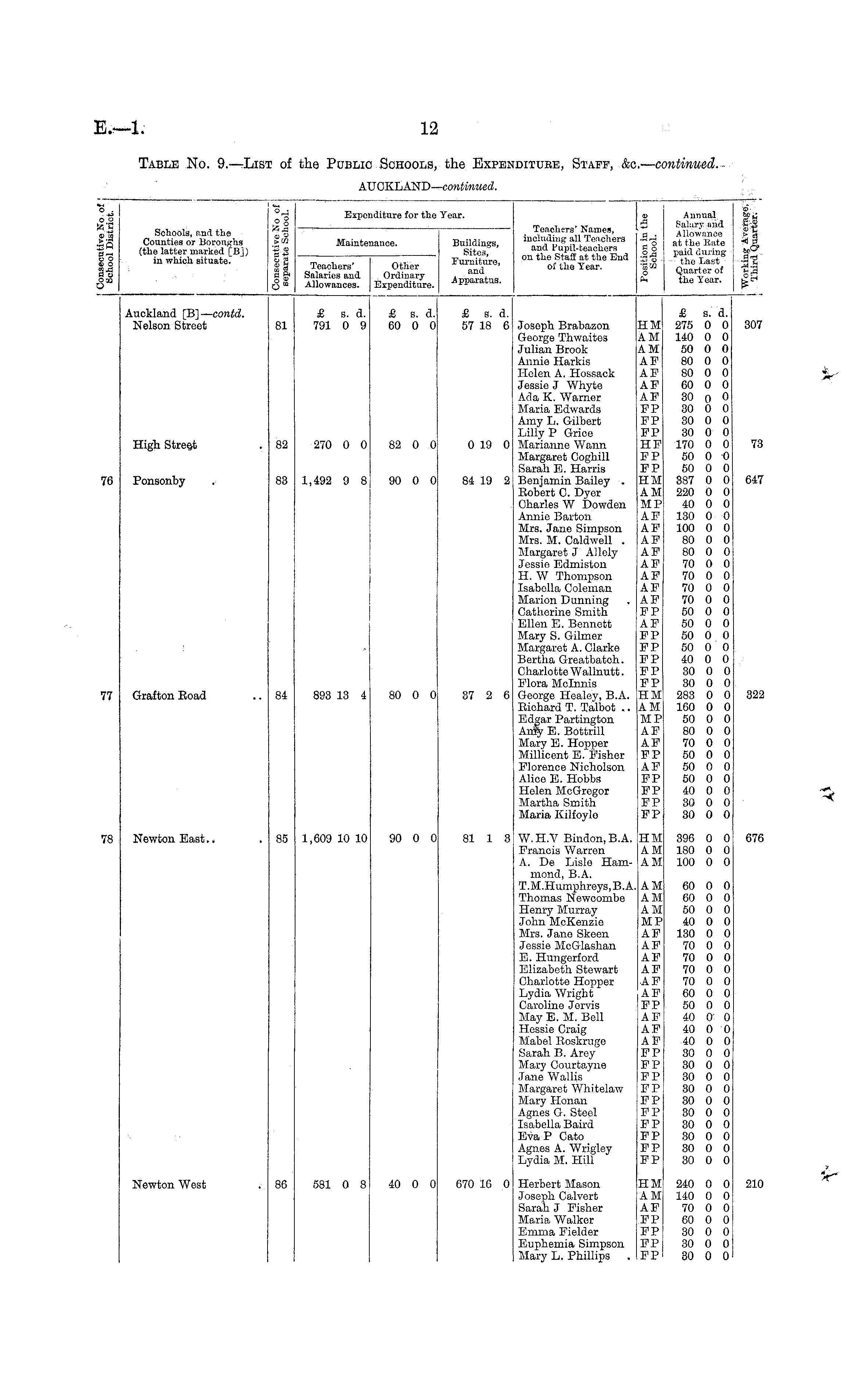 Table No. 9. —List of the Public Schools, the Expenditure, Staff, &c. — continued. AUCKLAND — continued.