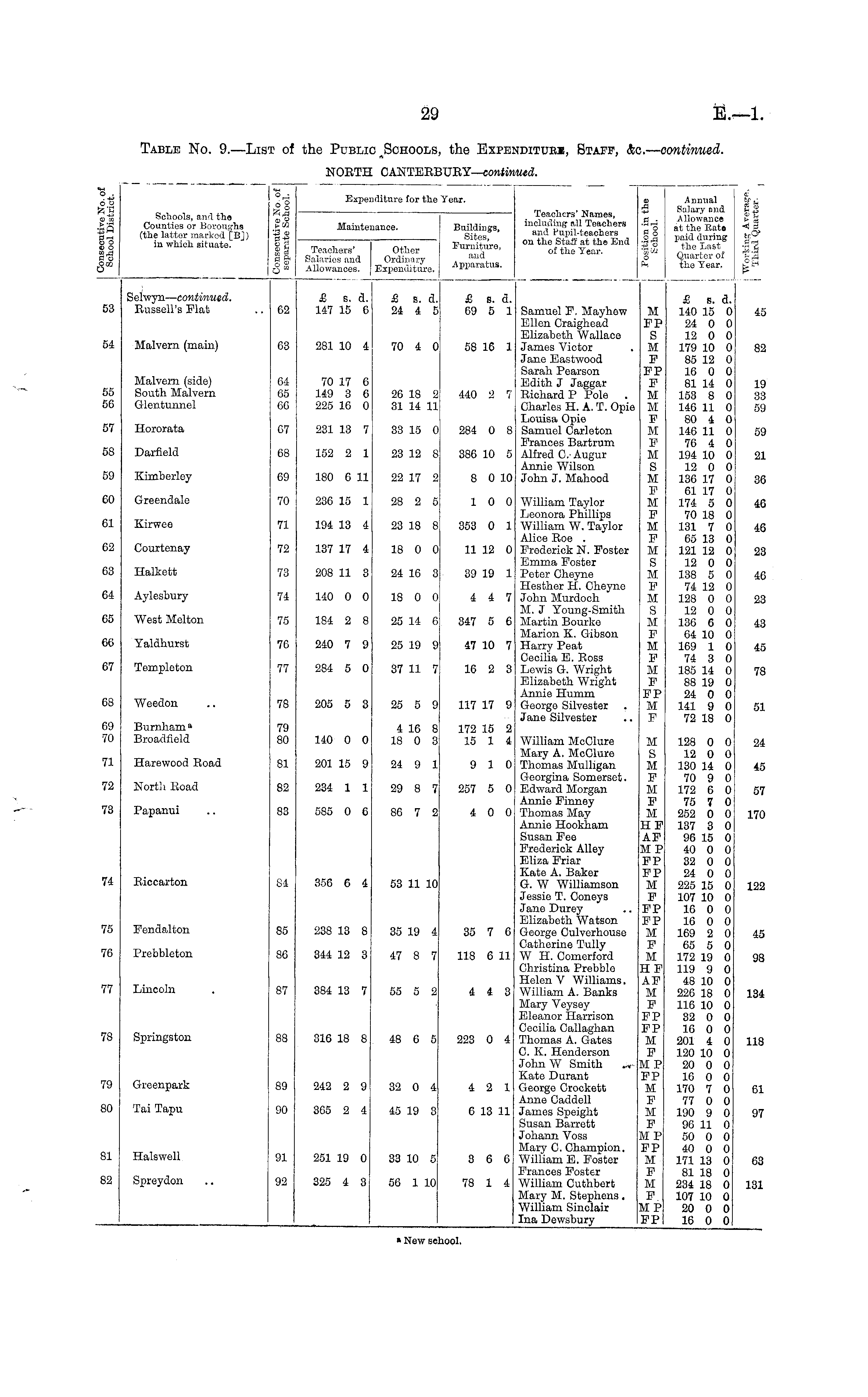 Table No. 9.—List of the Public Schools, the Expenditure, Staff, &c. — continued. NORTH CANTERBURY— continued.