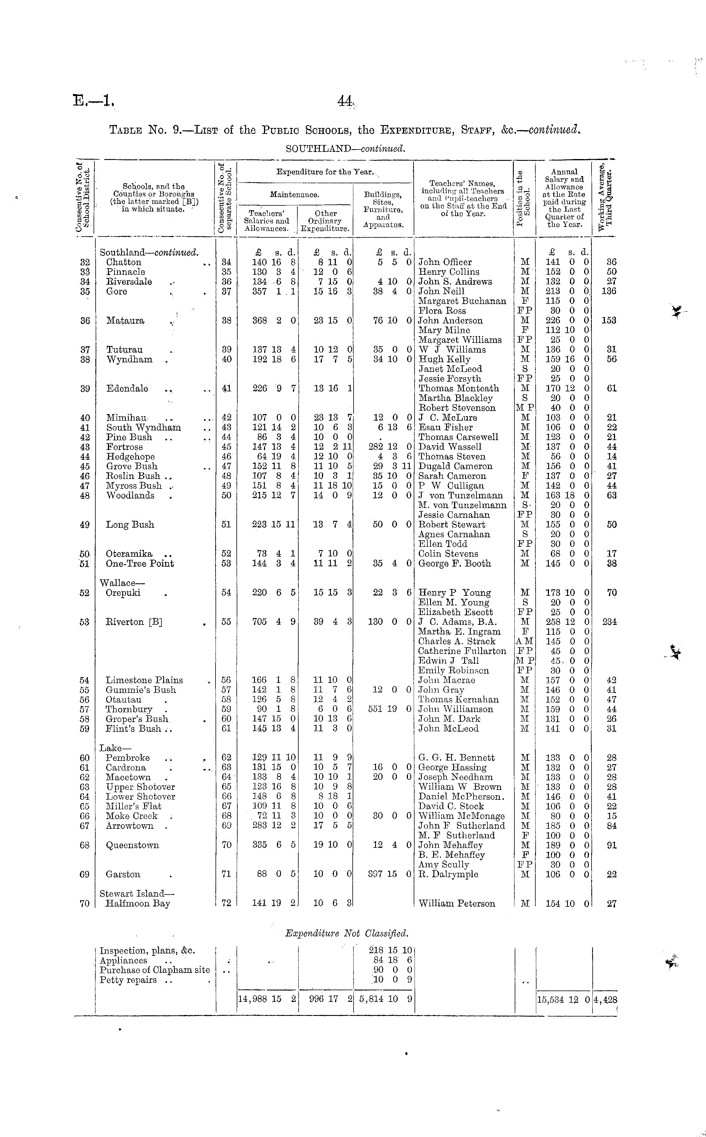 Table No. 9.—List of the Public Schools, the Expenditure, Staff, &c.— continued. SOUTHLAND— continued.