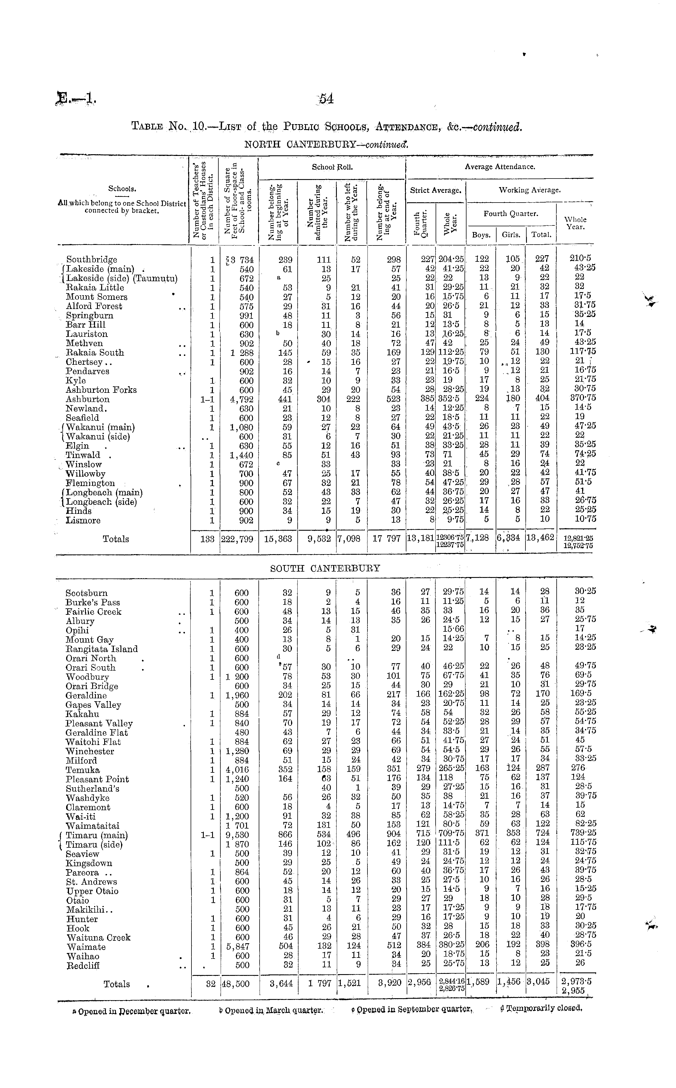 Table No. 10. —List of the Public Schools, Attendance, &c.— continued. NORTH CANTERBURY— continued.