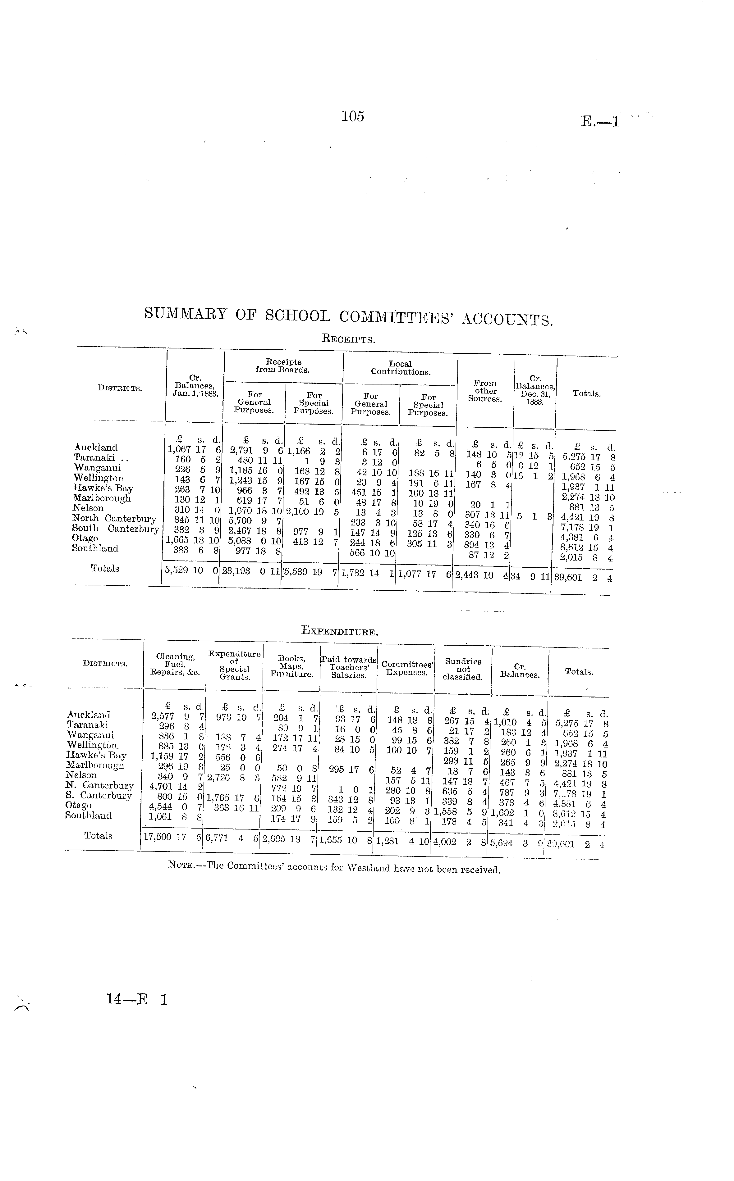Note.—The Committees' accounts for Westland have not boon received.