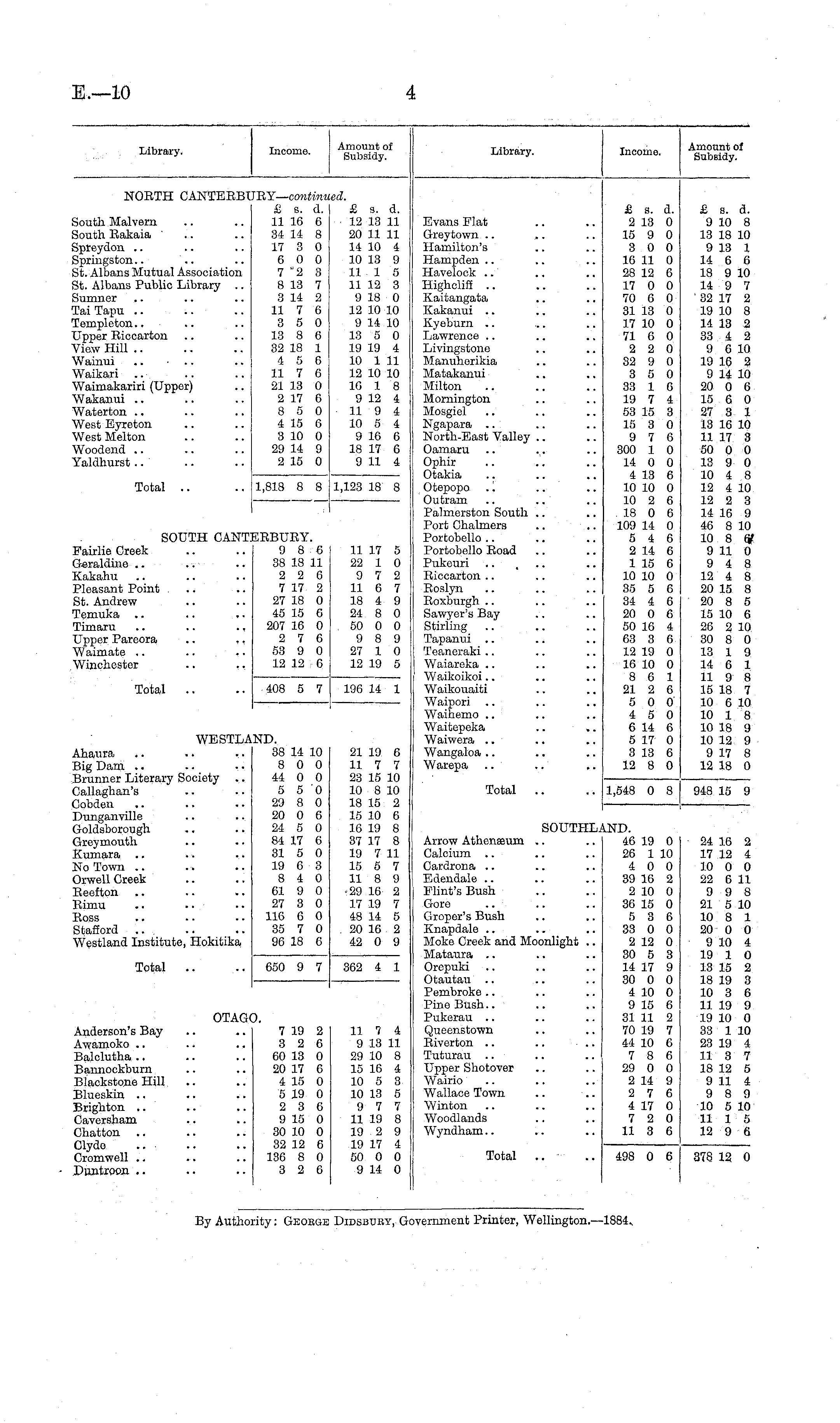 Library. Income. Lmount o: Subsidy. Library. Income. Amount ol Subsidy. NOBTH CANTEBBI RY— continu £ s. d. 11 16 6 34 14 8 17 3 0 6 0 0 7 "2 3 8 13 7 3 14 2 11 7 6 3 5 0 13 8 6 32 18 1 4 5 6 11 7 6 21 13 0 2 17 6 8 5 0 4 15 6 3 10 0 29 14 9 2 15 0 led. South Malvern South Bakaia Spreydon Springston St. Albans Mutual Association St. Albans Public Library .. Sumner Tai Tapu Temple ton Upper Biccarton View Hill.. Wainui .. - .. Waikari Waimakariri (Upper) Wakanui Waterton West Eyreton West Melton Woodend Yaldhurst £ s. d. 12 13 11 20 11 11 14 10 4 10 13 9 11 1 5 11 12 3 9 18 0 12 10 10 9 14 10 13 5 0 19 19 4 10 1 11 12 10 10 16 1 8 9 12 4 11 9 4 10 5 4 9 16 6 18 17 6 9 11 4 Evans Flat Greytown Hamilton's Hampden Haveloek Higholifi .. Kaitangata Kakanui Kyeburn .. ... Lawrence Livingstone Manuherikia Matakanui Milton Mornington Mosgiel Ngapara North-East Valley Oamaru Ophir Otakia Otepopo .. Outram Palmerston South Port Chalmers .. Portobello Portobello Boad Pukeuri .. t .. Biccarton Boslyn Boxburgh .. .. Sawyer's Bay Stirling Tapanui Teaneraki Waiareka Waikoikoi Waikouaiti Waipori Waihemo Waitepeka .. Waiwera Wangaloa Warepa £ s. d. 2 13 0 15 9 0 3 0 0 16 11 0 28 12 6 17 0 0 70 0 0 31 13 0 17 10 0 71 6 0 2 2 0 32 9 0 3 5 0 33 1 6 19 7 4 53 15 3 15 3 0 9 7 6 300 1 0 14 0 0 4 13 6 10 10 0 10 2 6 18 O 6 109 14 0 5 4 6 2 14 6 1 15 6 10 10 0 35 5 6 34 4 6 20 0 6 50 16 4 63 3 6 12 19 0 16 10 0 8 6 1 21 2 6 5 0 0 4 5 0 6 14 6 5 17 0 3 13 6 12 8 0 £ s. d. 9 10 8 13 18 10 9 13 1 14 6 6 18 9 10 14 9 7 '32 17 2 19 10 8 14 13 2 33 4 2 9 6 10 19 16 2 9 14 10 20 0 6 15 6 0 27 3 1 13 16 10 11 17 3 50 0 0 13 9 0 10 4 8 12 4 10 12 2 3 14 16 9 46 8 10 10 8 W 9 11 0 9 4 8 12 4 8 20 15 8 20 8 5 15 10 6 26 2 10 30 8 0 13 1 9 14 6 1 11 9 8 15 18 7 10 6 10 10 1 8 10 18 9 10 12 9 9 17 8 12 18 0 Total 1,818 8 8 1,123 18 8 south cant: Fairlie Creek Geraldine .. ■.-.-- Kakahu Pleasant Point St. Andrew Temuka Timaru Upper Pareora .. ,. Waimate Winchester RBUEY. 9 8 6 38 18 11 2 2 6 7 17 2 27 18 0 45 15 6 207 16 0 2 7 6 53 9 0 12 12 6 11 17 5 22 1 0 9 7 2 11 6 7 18 4 9 24 8 0 50 0 0 9 8 9 27 1 0 12 19 5 Total 408 5 7 196 14 1 WE STL A Ahaura Big Dam Brunner Literary Society .. Callaghan's Cobden Dunganville Goldsborough Greymouth Kumara No Town Orwell Creek Beefton Bimu .. Boss Stafford .. Westland Institute, Hokitika .ND. 38 14 10 8 0 0 44 0 0 5 5 0 29 8 0 20 0 6 24 5 0 84 17 6 31 5 0 19 6 3 8 4 0 61 9 0 27 3 0 116 6 0 35 7 0 90 18 6 21 19 6 11 7 7 23 15 10 10 8 10 18 15 2 15 10 6 16 19 8 37 17 8 19 7 11 15 5 7 11 8 9 29 16 2 17 19 7 48 14 5 . 20 16 2 42 0 9 Total SOUTHL. Arrow Athenseum Calcium Cardrona Edendale Flint's Bush Goro G roper's Bush Knapdale Moke Creek and Moonlight .. Mataura Orepuki Otautau Pembroke Pine Bush Pukerau Queenstown Biverton .. .. Tuturau Upper Shotover Wairio Wallace Town Winton Woodlands Wyndham 1,548 0 8 .ND. 46 19 0 26 1 10 4 0 0 39 16 2 2 10 0 36 15 0 5 3 6 33 0 0 2 12 0 30 5 3 14 17 9 30 0 0 4 10 0 9 15 6 31 11 2 70 19 7 44 10 6 7 8 6 29 0 0 2 14 9 2 7 6 4 17 0 7 2 0 11 3 6 24 16 2 17 12 4 10 0 0 22 6 11 9 9 8 21 5 10 10 8 1 20 0 0 9 10 4 19 1 0 13 15 2 18 19 3 10 3 6 11 19 9 19 10 0 33 1 10 23 19 4 11 3 7 18 12 5 9 11 4 9 8 9 10 5 10 11 1 5 12 9 6 948 15 9 Total .. 650 9 7 362 4 1 OTAG< Anderson's Bay Awamoko Balelutha Bannockburn Blackstone Hill Blueskin Brighton Caversham Chatton Clyde Cromwell .. Duntroon .. 7 19 2 3 2 6 60 13 0 20 17 6 4 15 0 5 19 0 2 3 6 9 15 0 30 10 0 32 12 6 136 8 0 3 2 6 11 7 4 9 13 11 29 10 8 15 16 4 10 5 3 10 13 5 9 7 7 11 19 8 19 2 9 19 17 4 50 0 0 9 14 0 Total .. ■ 498 0 6 378 12 0